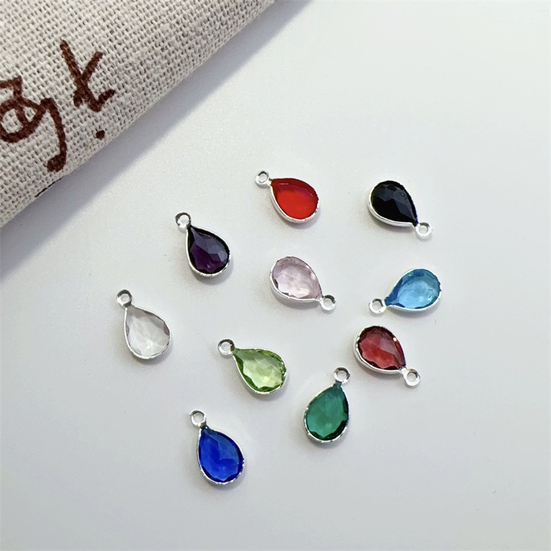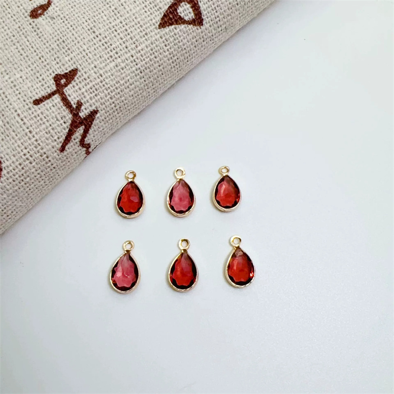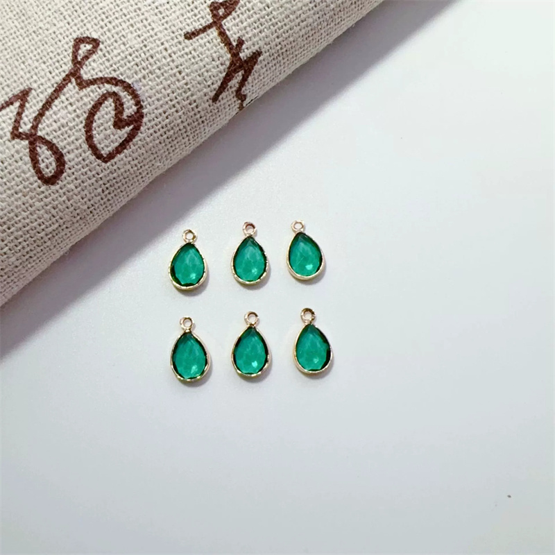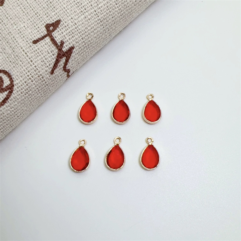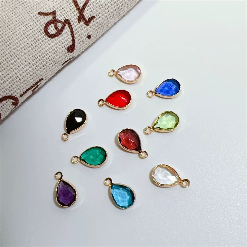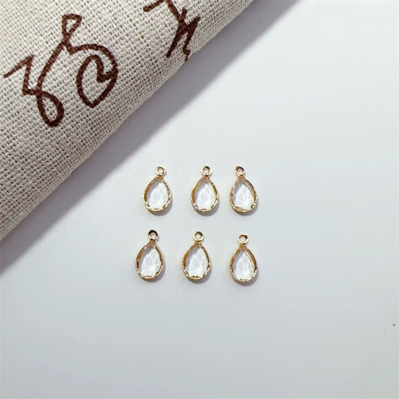 DIY饰品配件铜包边水滴玻璃吊坠7x11mm双面水滴宝石古风发簪材料