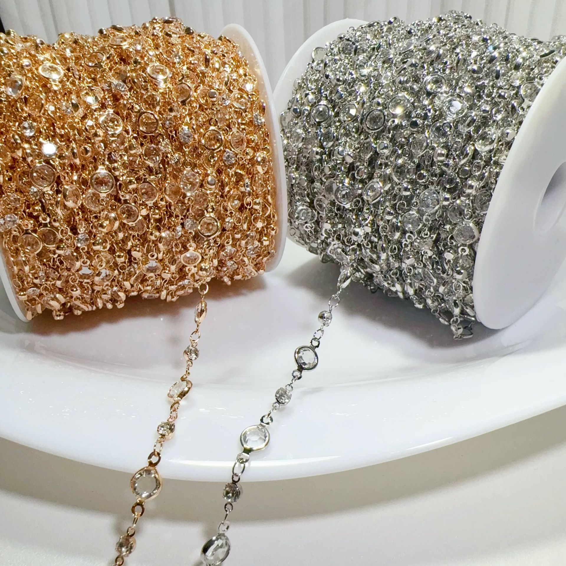 DIY 珠宝链 纯铜 高色固定 手工制作 6毫米 玻璃封闭水钻项链 服装配饰 热销