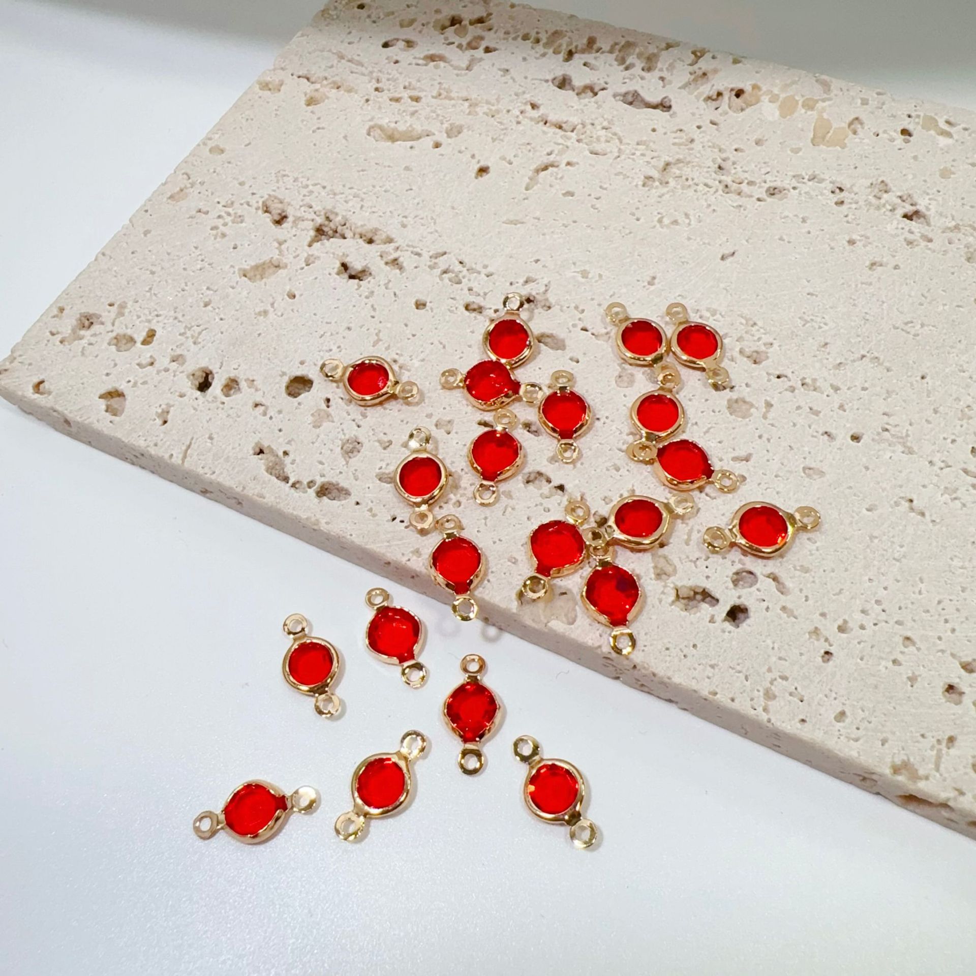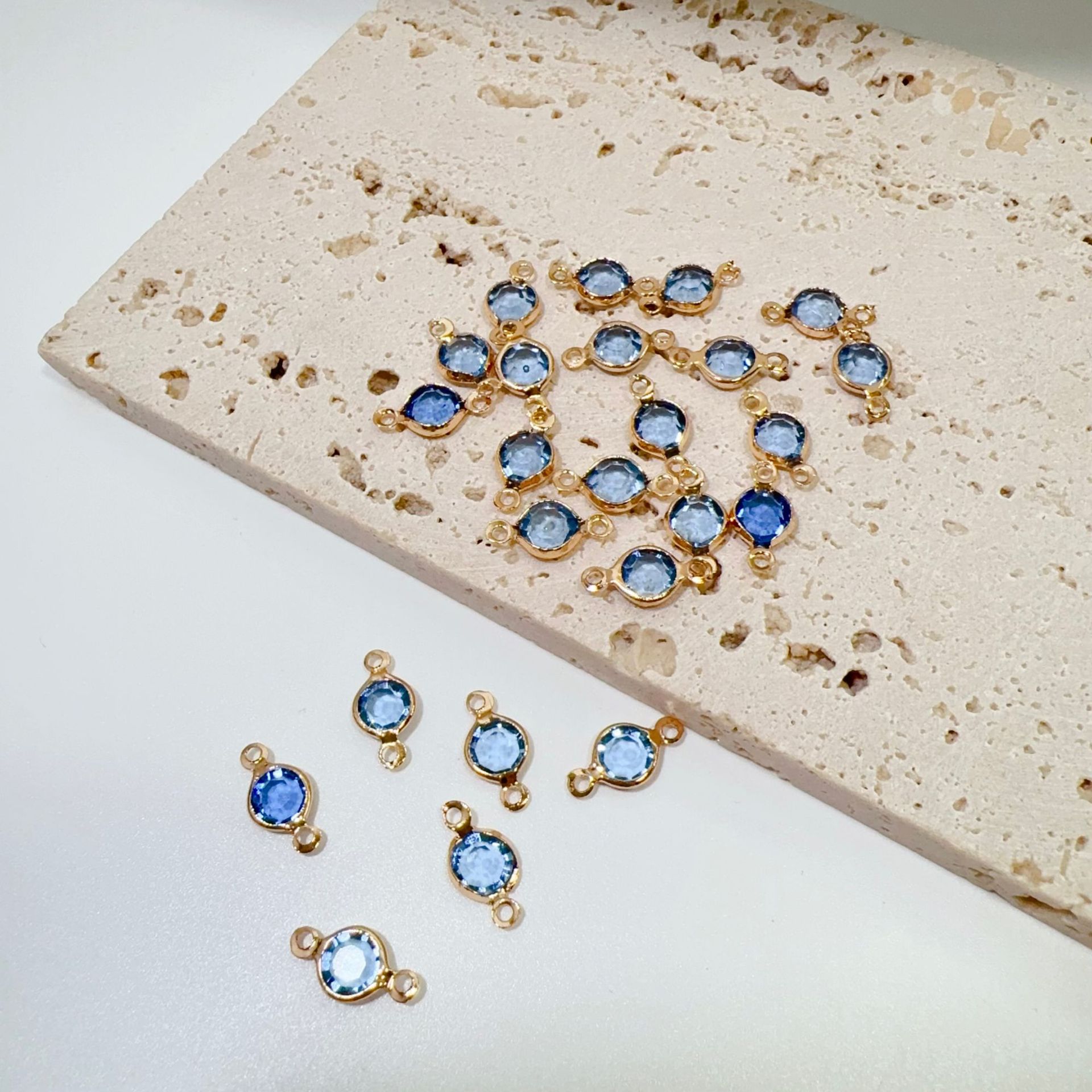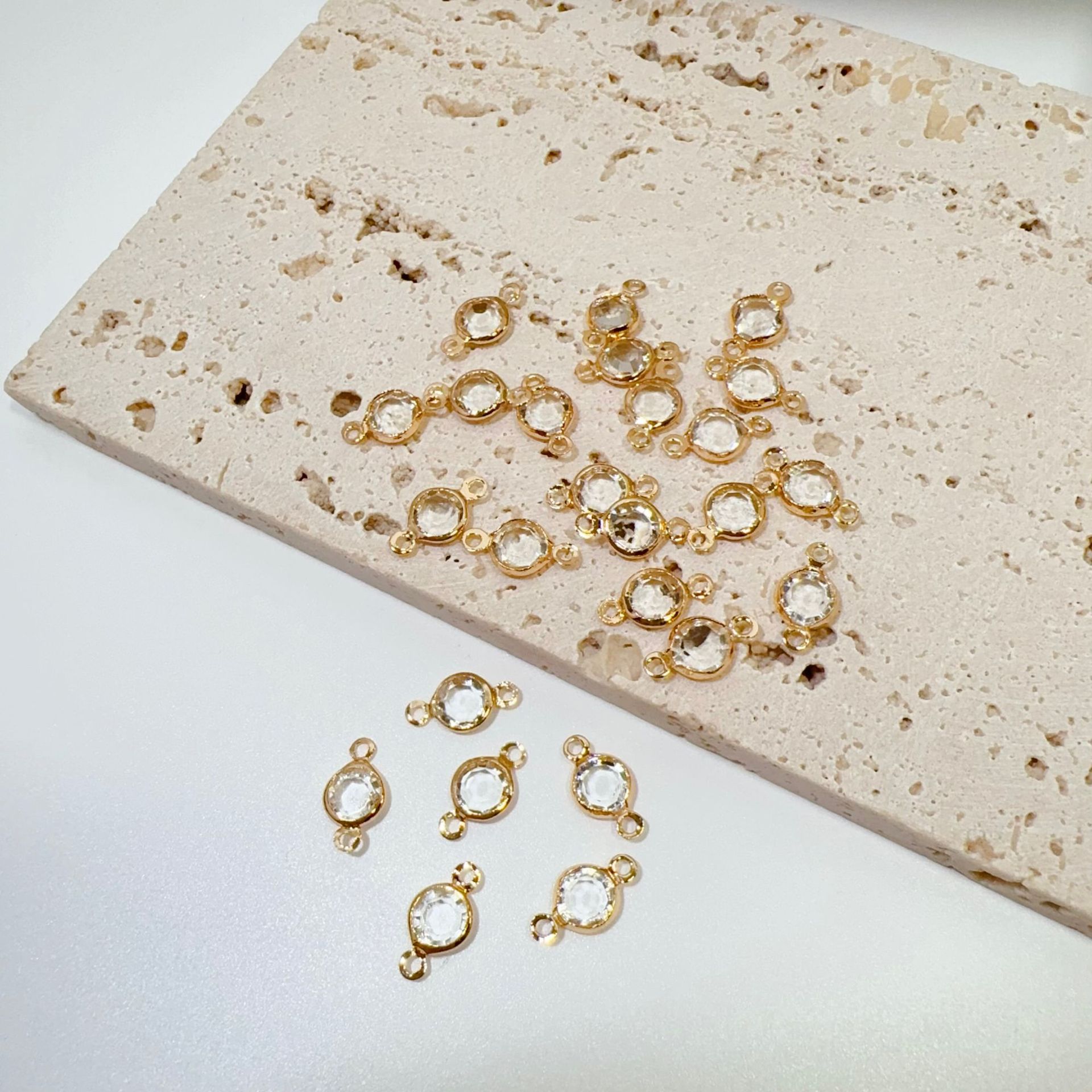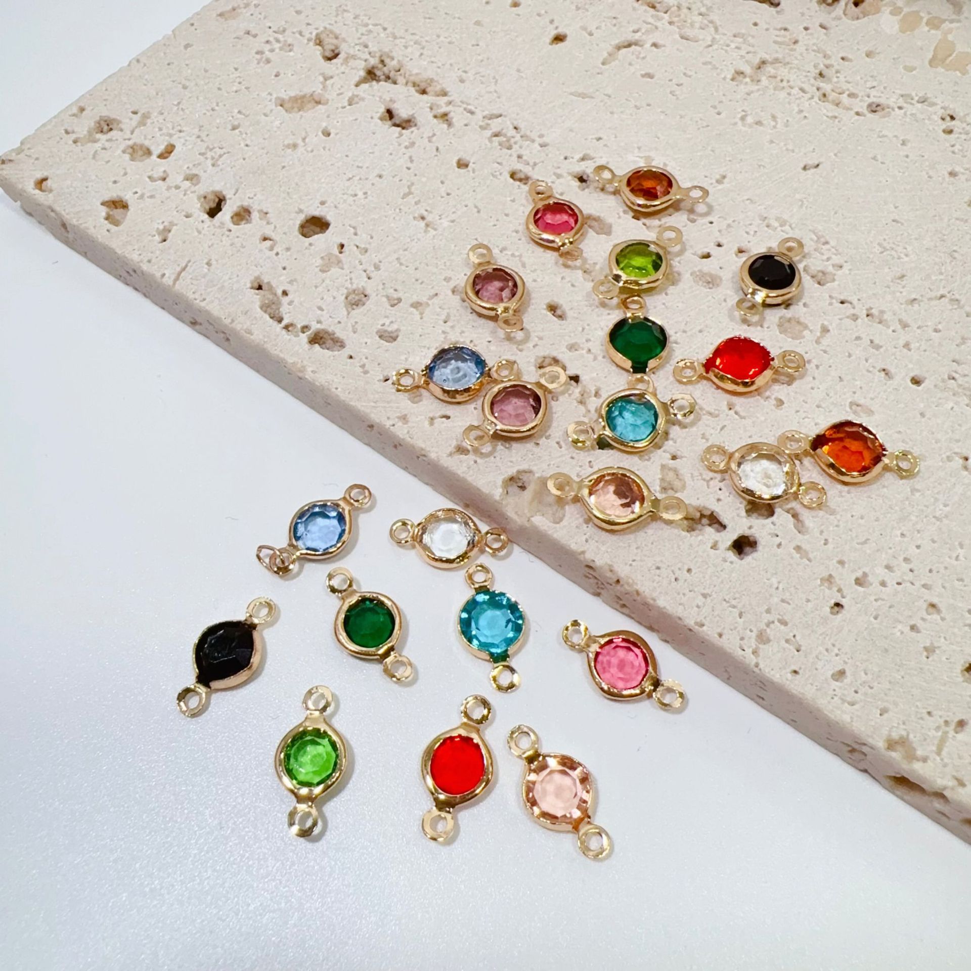 DIY6毫米边框玻璃刻面圆形双吊坠宝石保色铜配件用于耳环手链