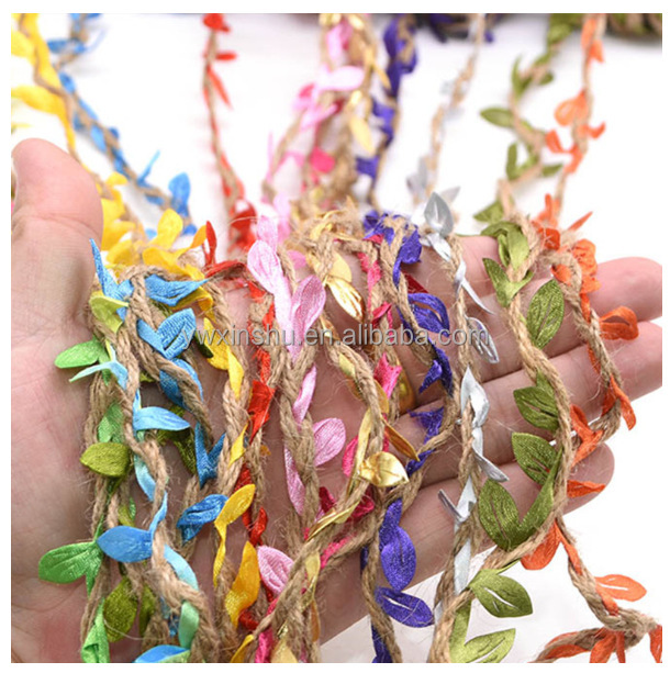 Hot Sale Natural Jute Twine Leaf Ribbon with Artificial Vine Green Leaves