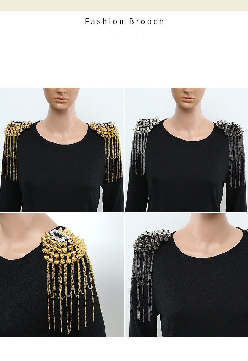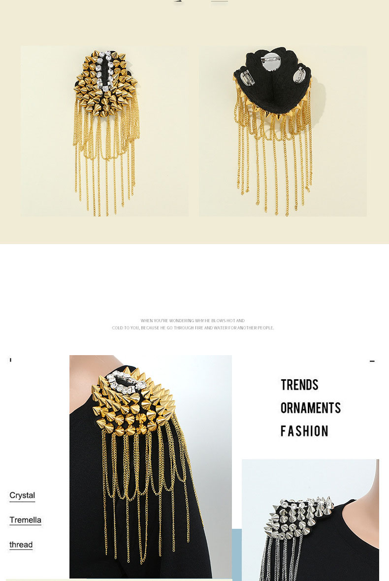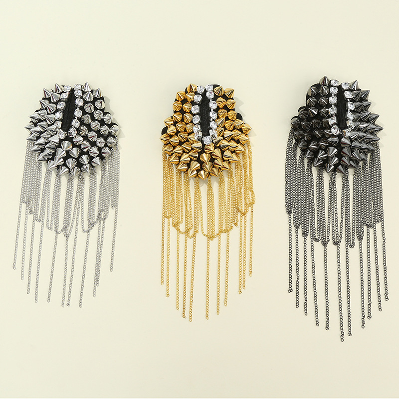 Hot-selling metal inset rhinestones tassel shoulder badge clothing accessories