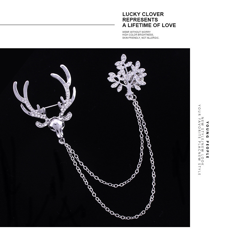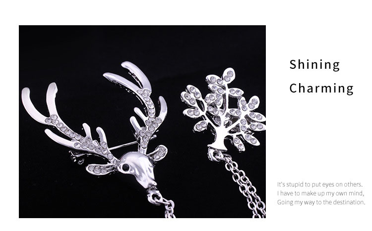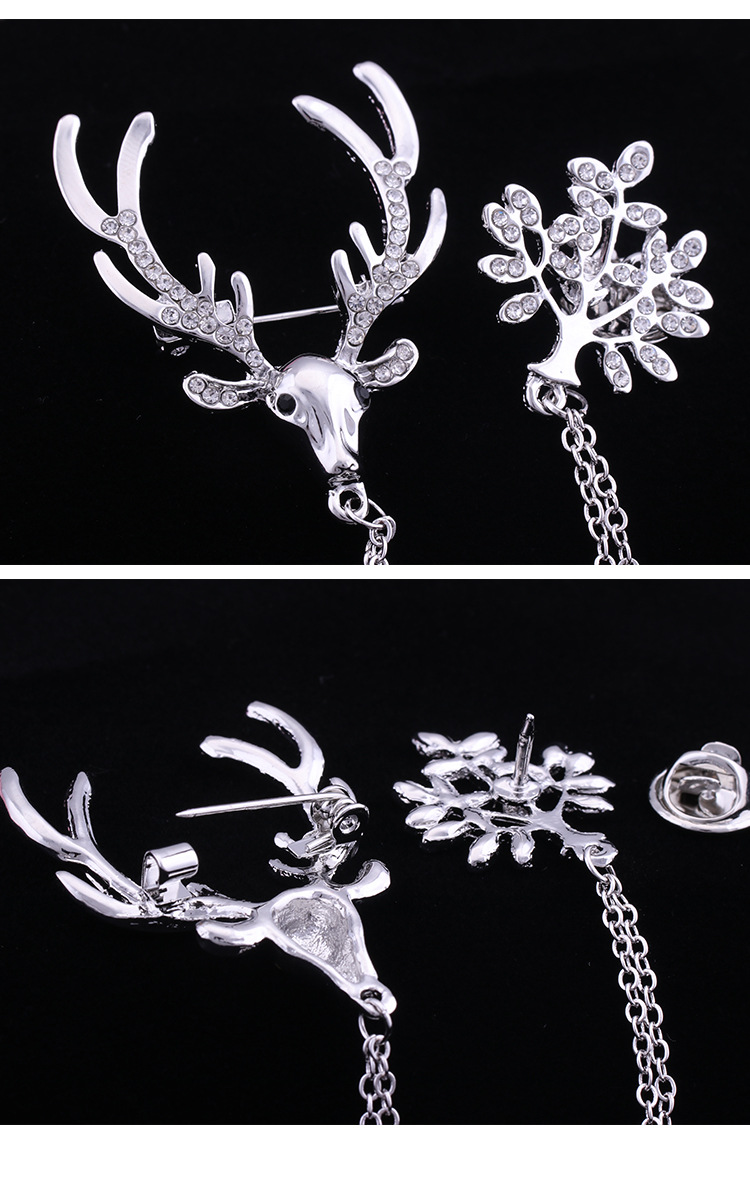 New Chain Brooch Deer Head Alloy Rhinestone Enamel Brooch Corsage Accessories