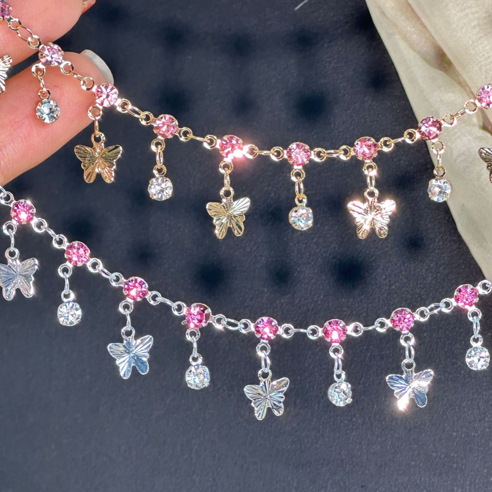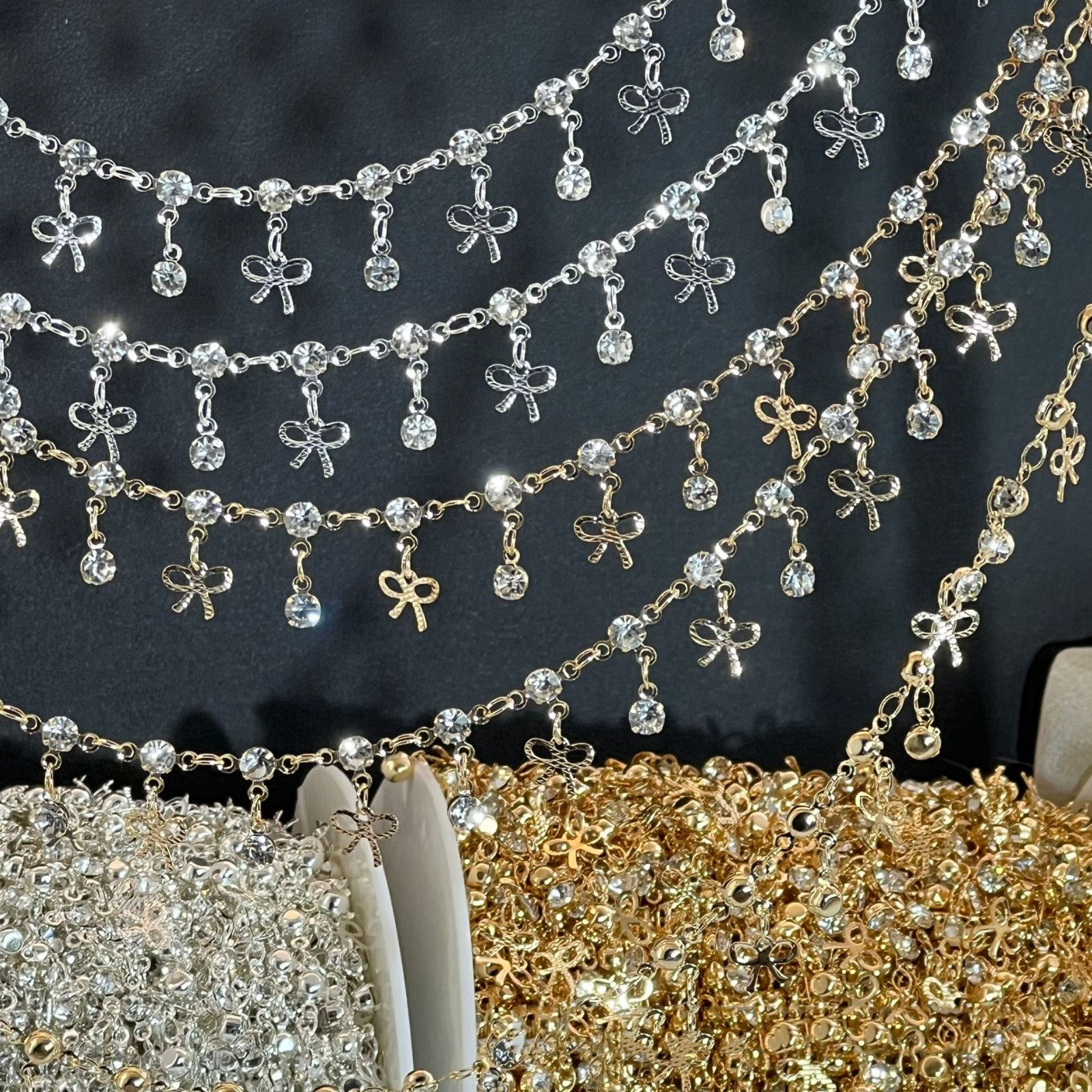 Promotional High Quality Beautiful Butterfly Decorative Chain for Jewelry Making Mixed Color Rhinestone Bead Chain