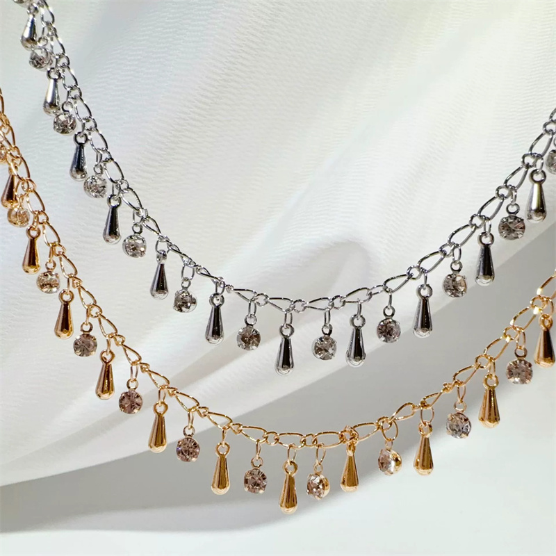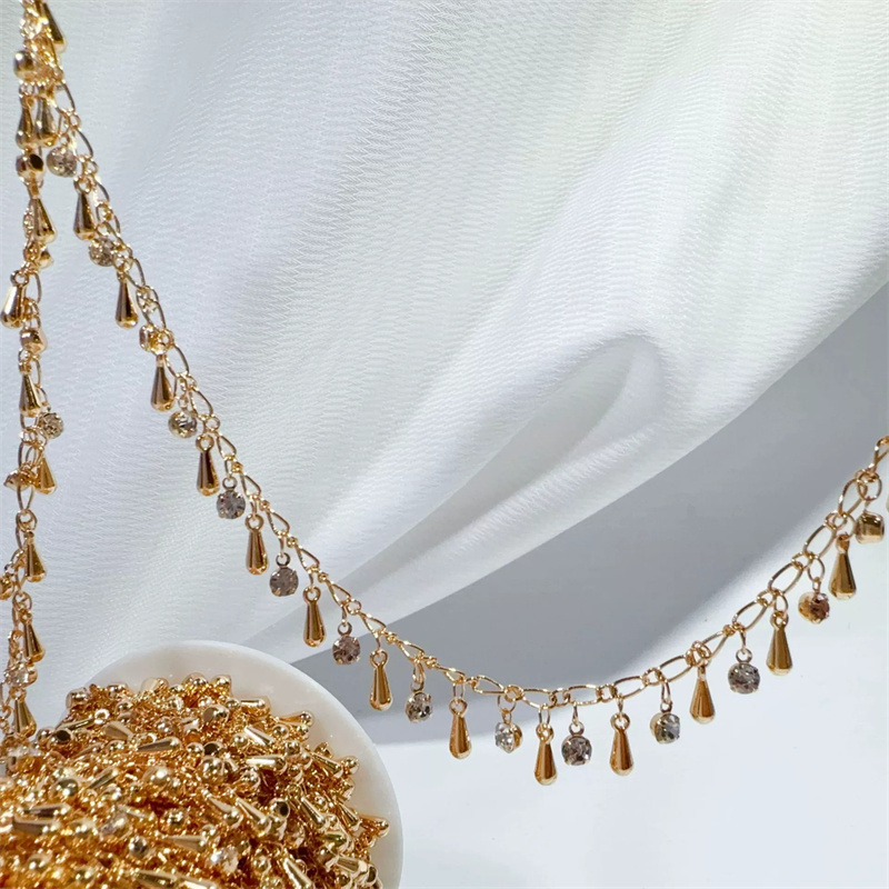 diy手工链子 古风发饰水滴锆石钻链 高保色异域服饰额链饰品配件