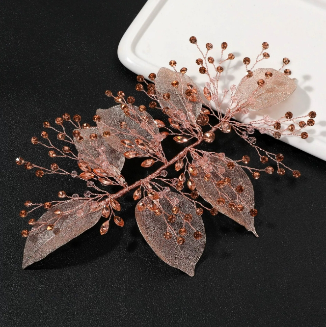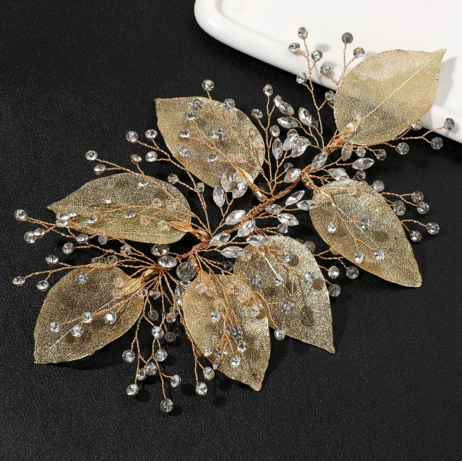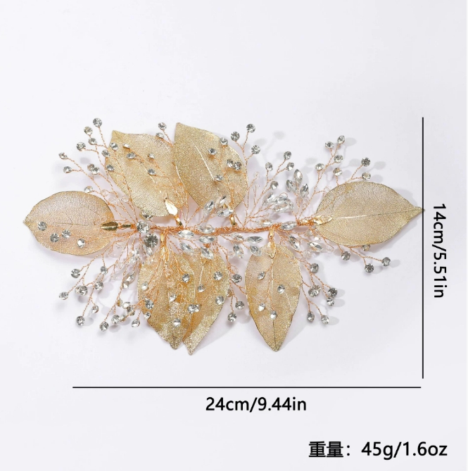 •  ins流行欧美金色树叶花朵新娘长发梳头饰婚礼发饰