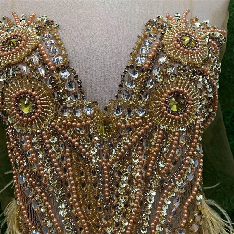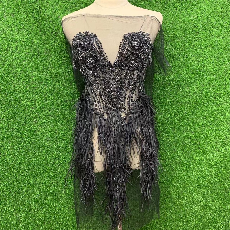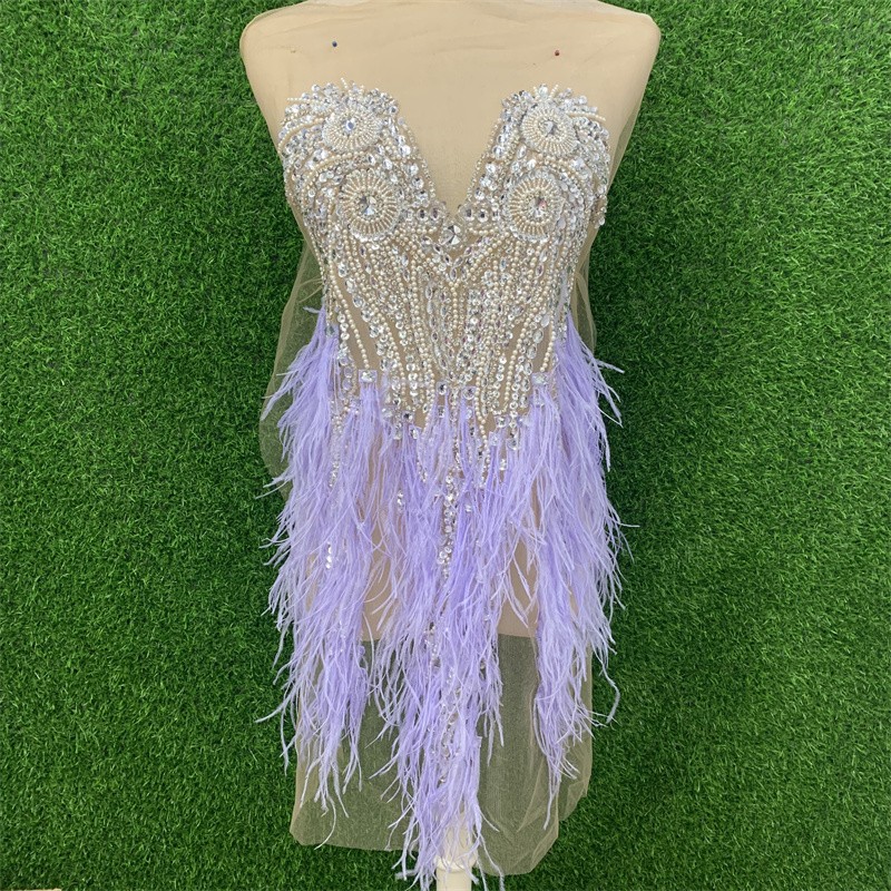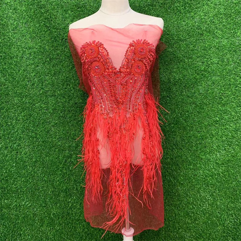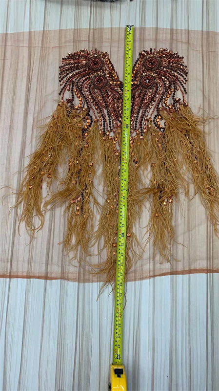 羽毛新款 56X100cm深V款婚纱礼服手工钉珠贴花