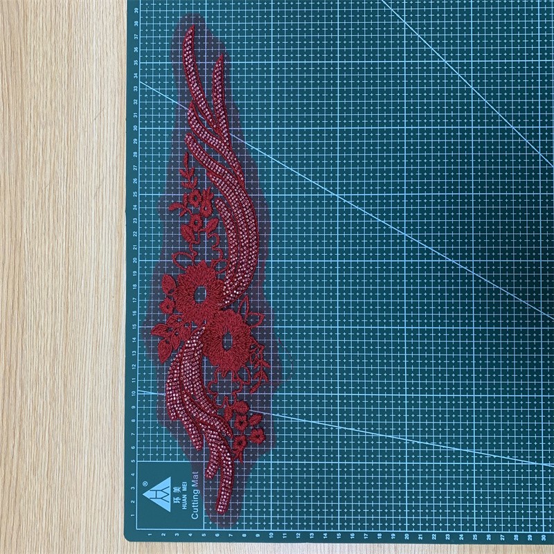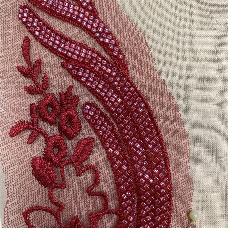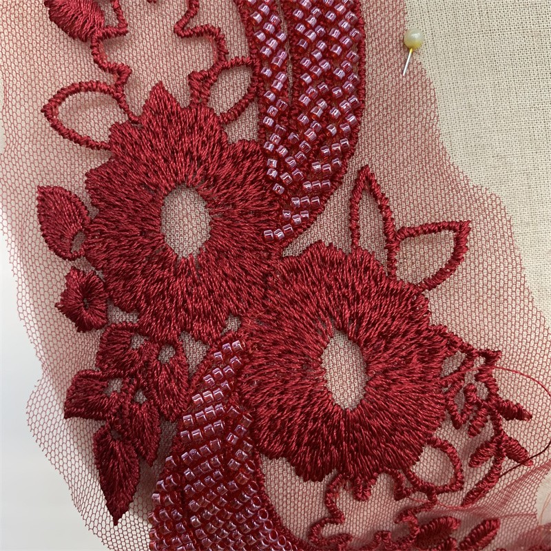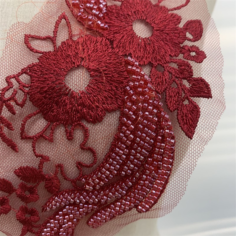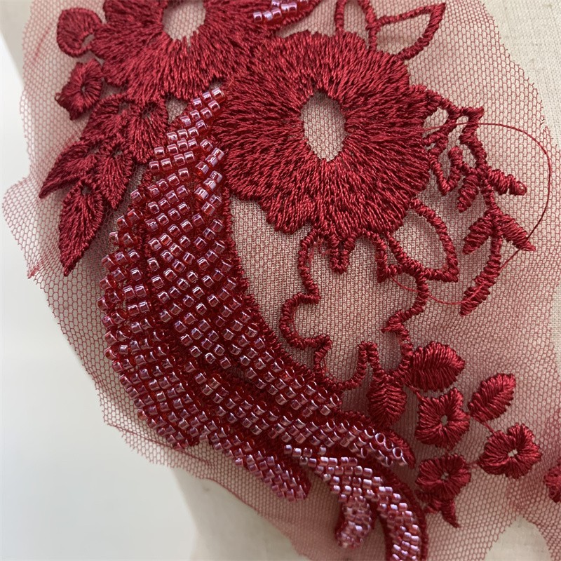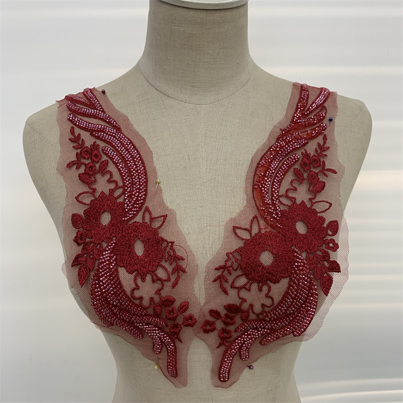 红色珠子网纱对花婚纱礼服衣服服装辅料配件