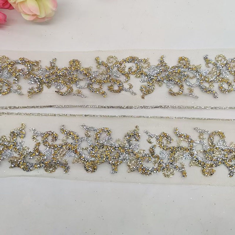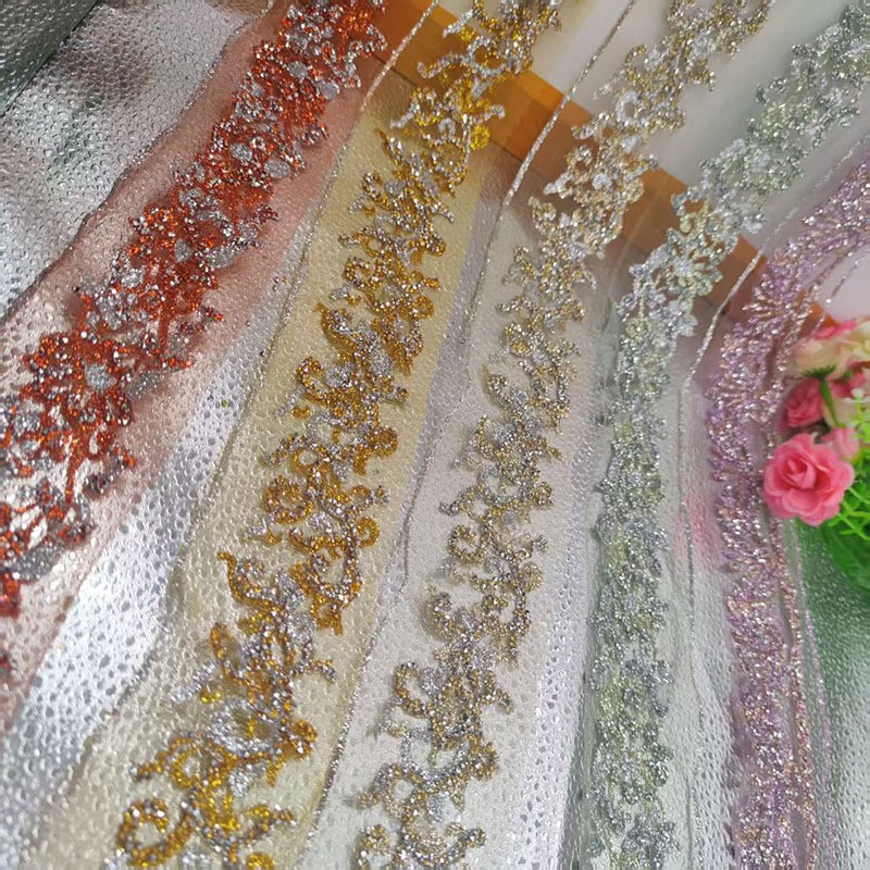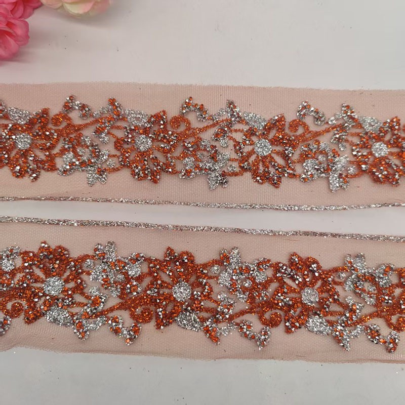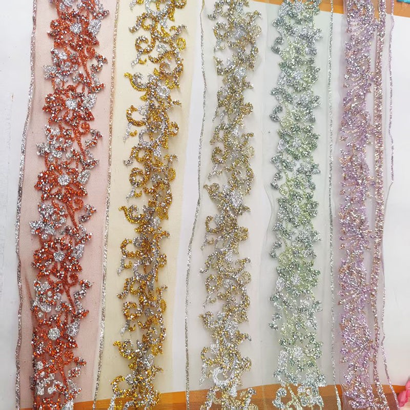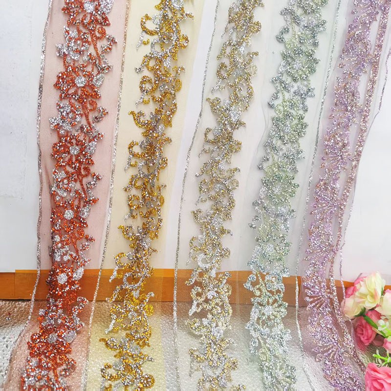 这款 5cm 超闪烫钻闪粉花边,采用高密度水钻与细腻闪粉制作,光泽通透耀眼,上镜效果极佳。质地柔软易弯折,可缝制、可烫贴,牢固不掉钻,专为舞蹈服装、舞台演出服、表演裙装设计。适用于裙摆、衣边、领口、袖口等多处装饰,也可用于手工 DIY 创意制作,轻松提升服饰华丽感与舞台氛围感,是舞蹈服饰加工与手工装饰的理想辅料。