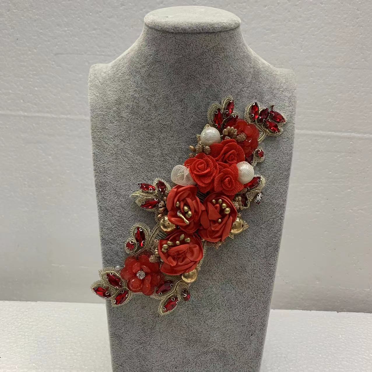 立体花朵 钻刺绣贴花蕾丝 辅料 多色服装配件 DIY花边