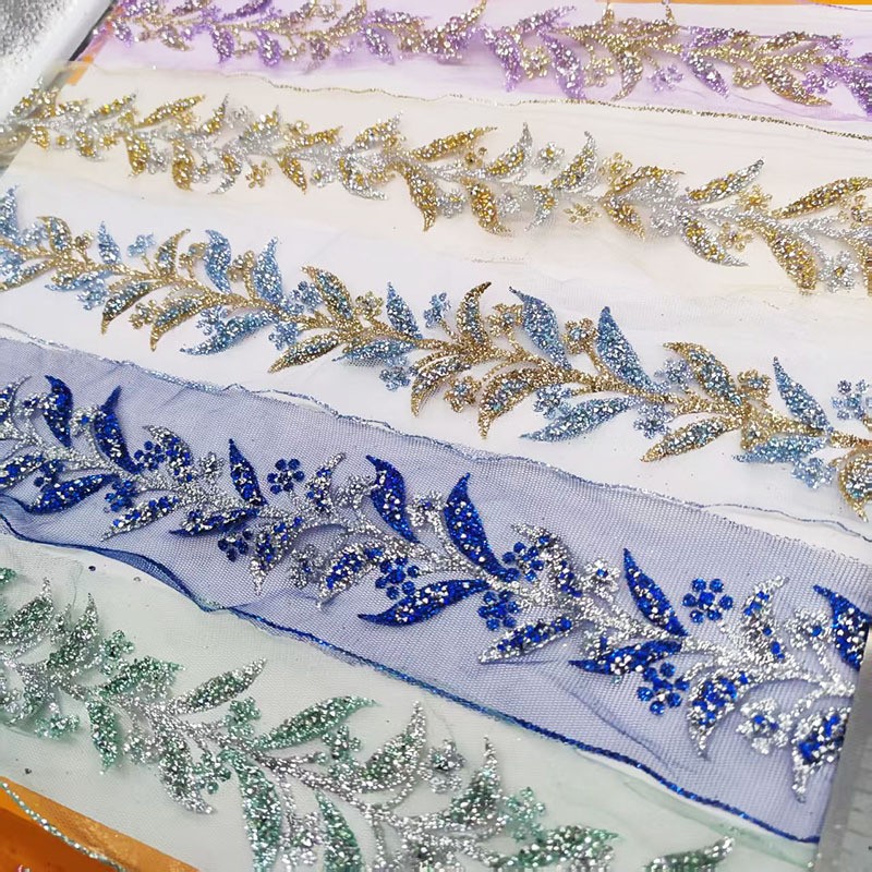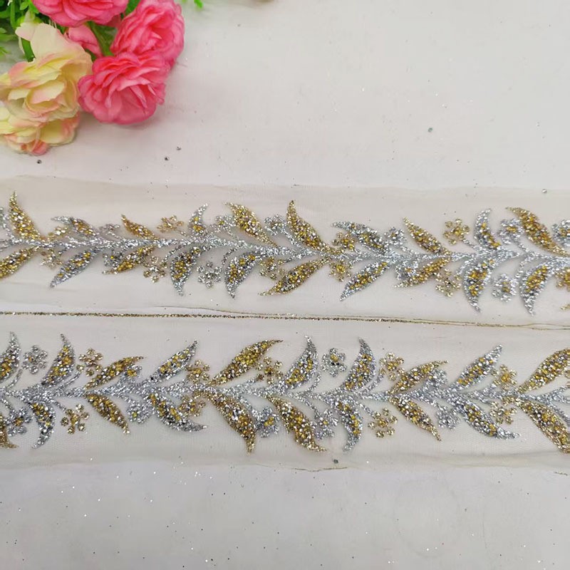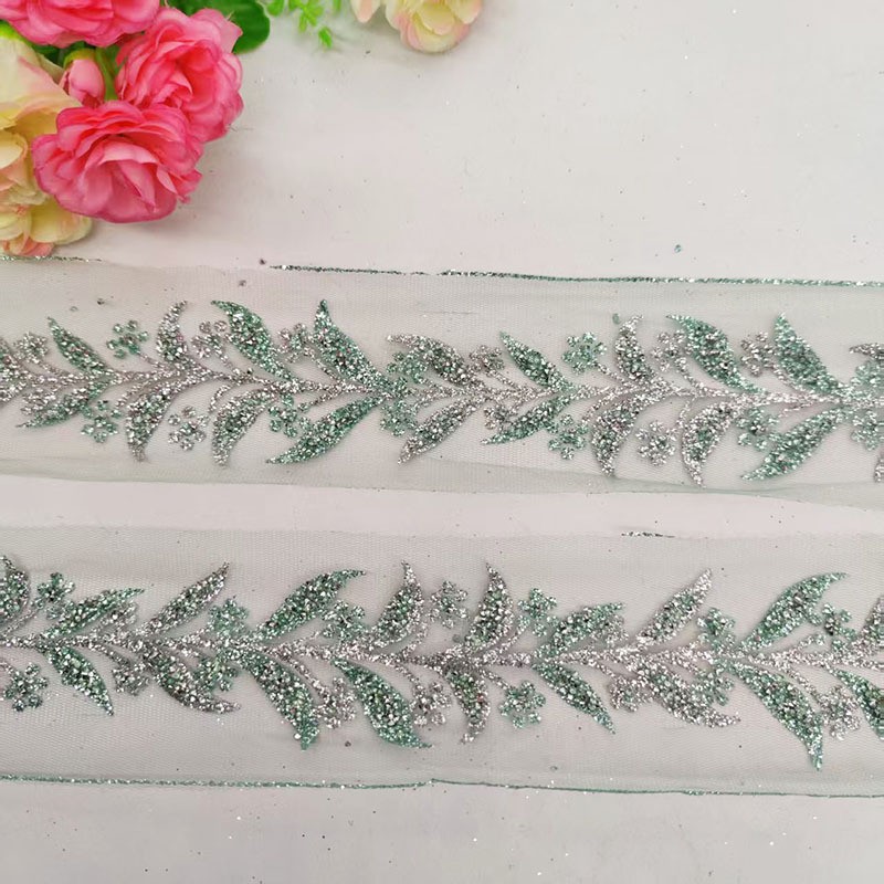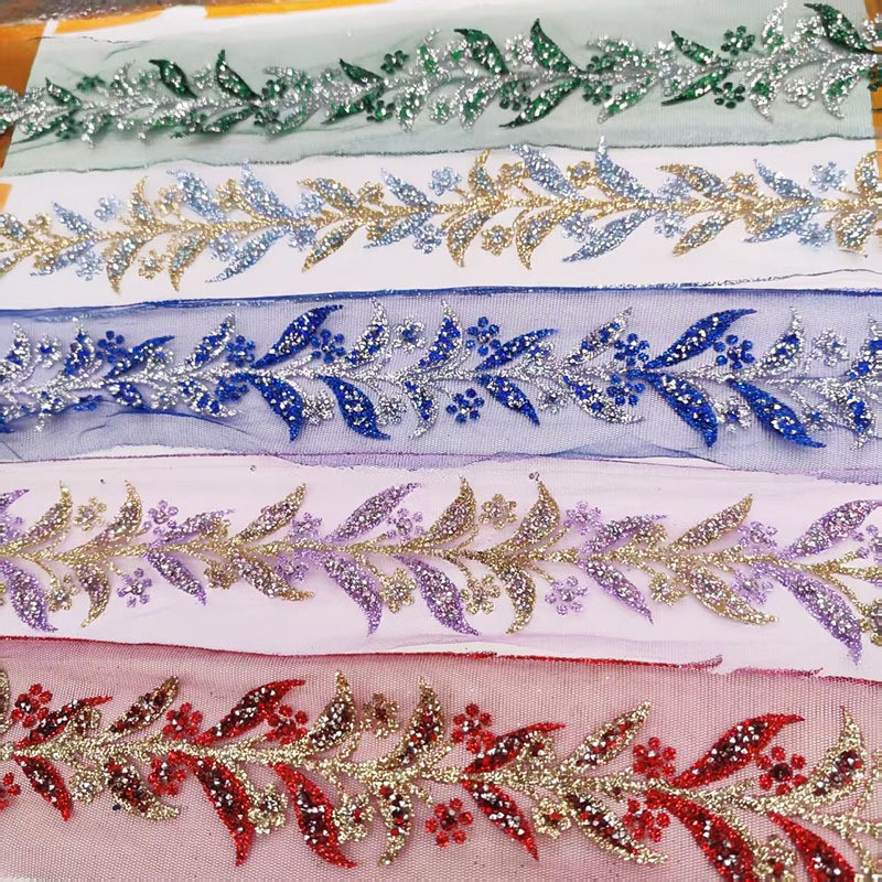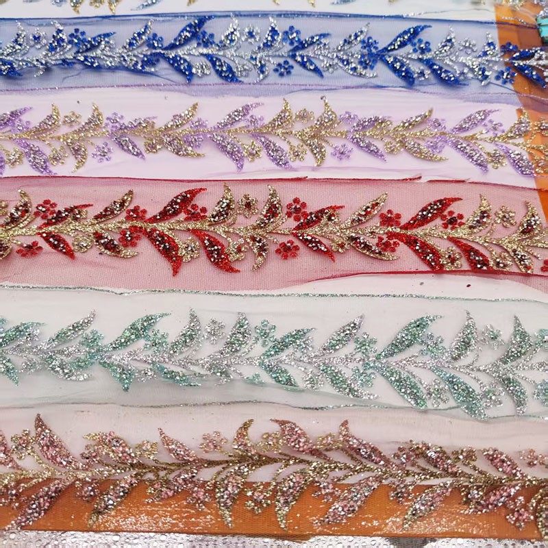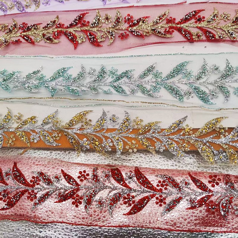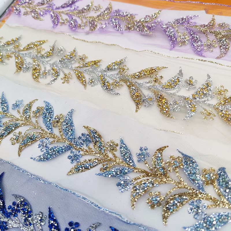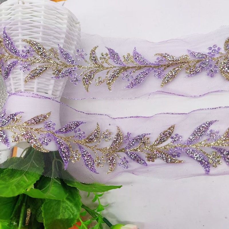 这款 6CM 烫钻闪粉花边,采用高亮度水钻与闪粉材质制作,光泽饱满、闪亮夺目,自带舞台高光效果。质地柔软服帖,不易掉钻,可轻松缝制或烫贴在舞蹈服、演出服、裙摆、袖口等位置。适用于舞蹈服装制作、舞台服饰装饰及各类 DIY 手工创作,轻松提升服装精致度与华丽感,是舞台表演、日常穿搭改造的优质装饰辅料。