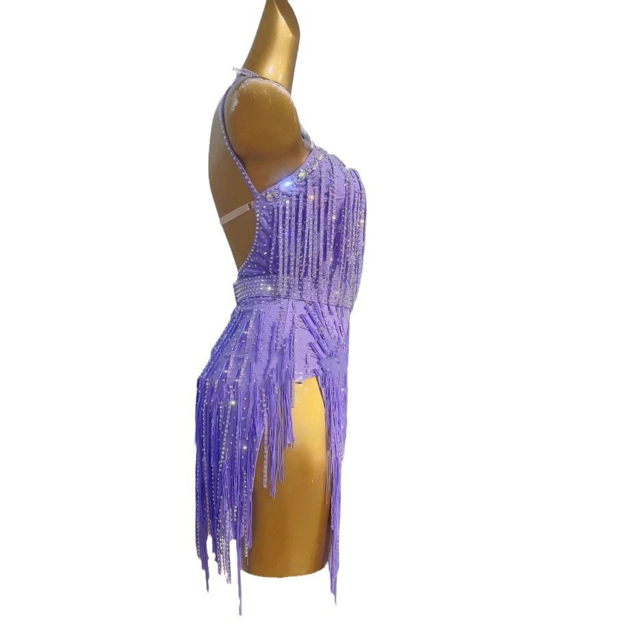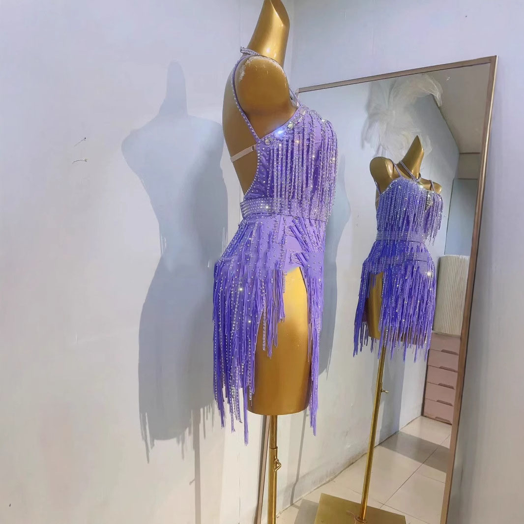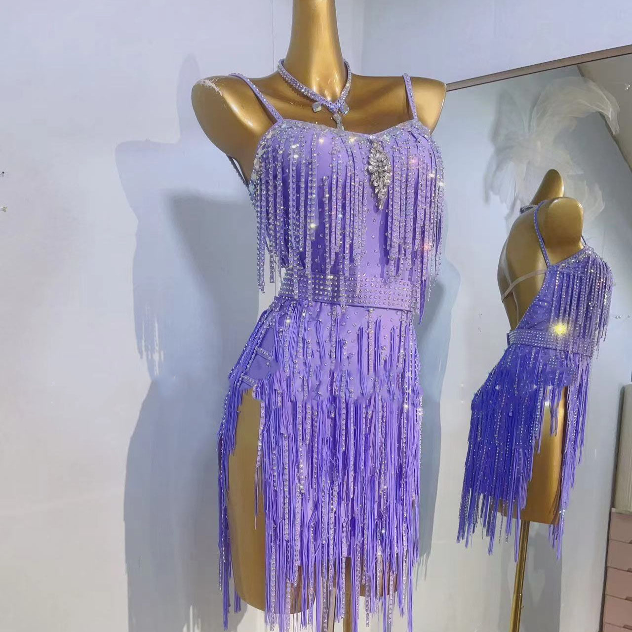 新款拉丁舞演出服流苏水钻吊带艺考比赛连衣裙专业舞蹈台花服