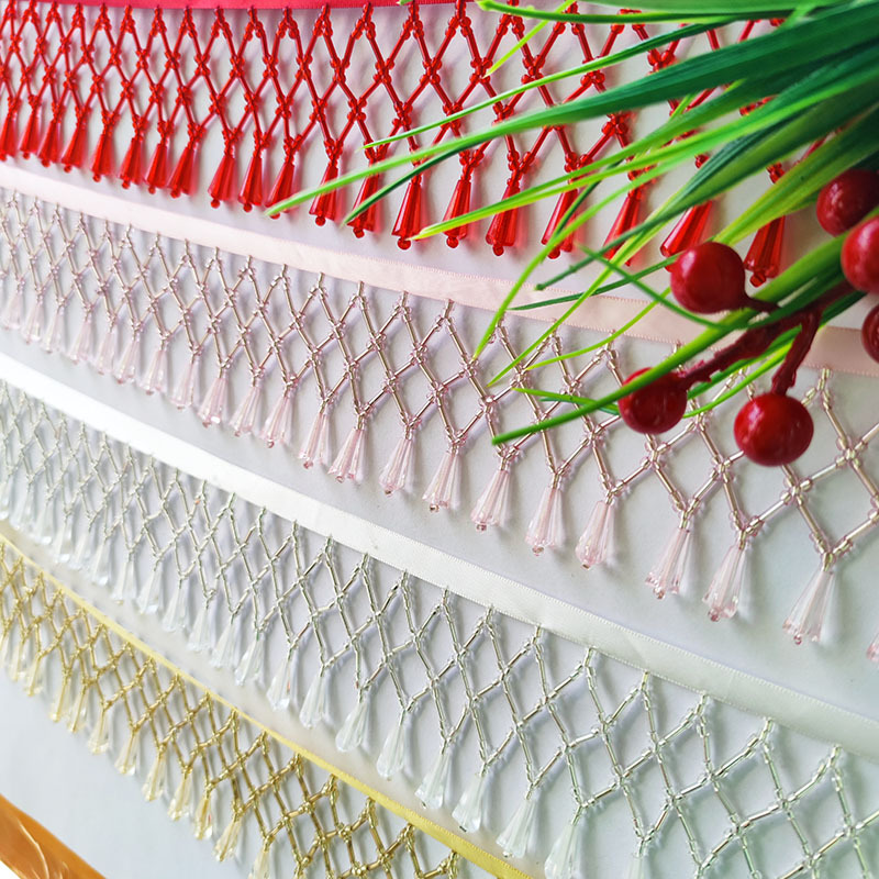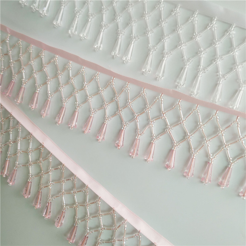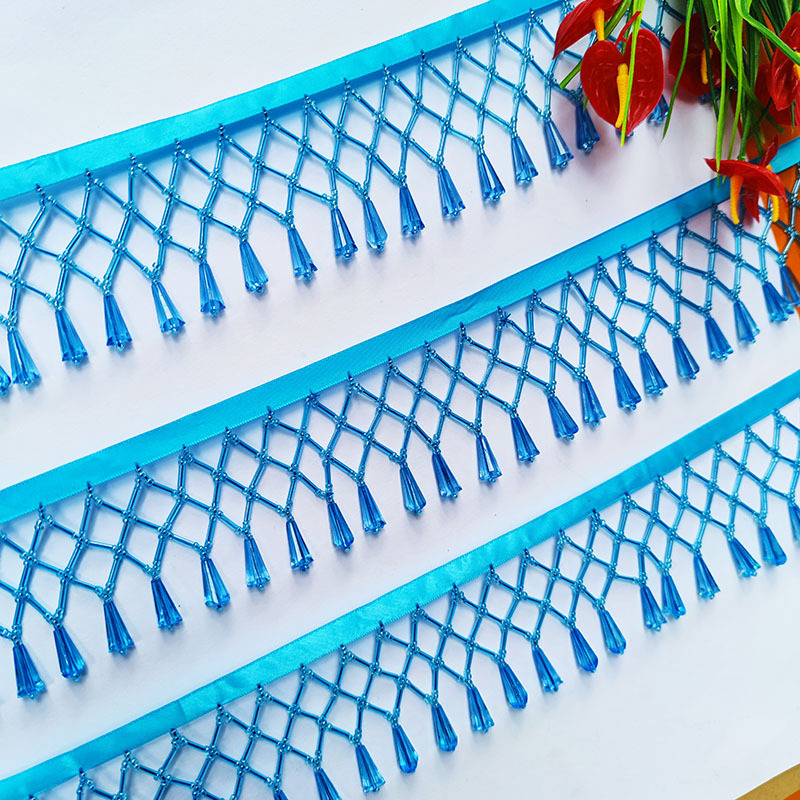 粉红童装斗笠光亮蓝色网格水钻水晶水滴网状交叉花边舞台服流苏