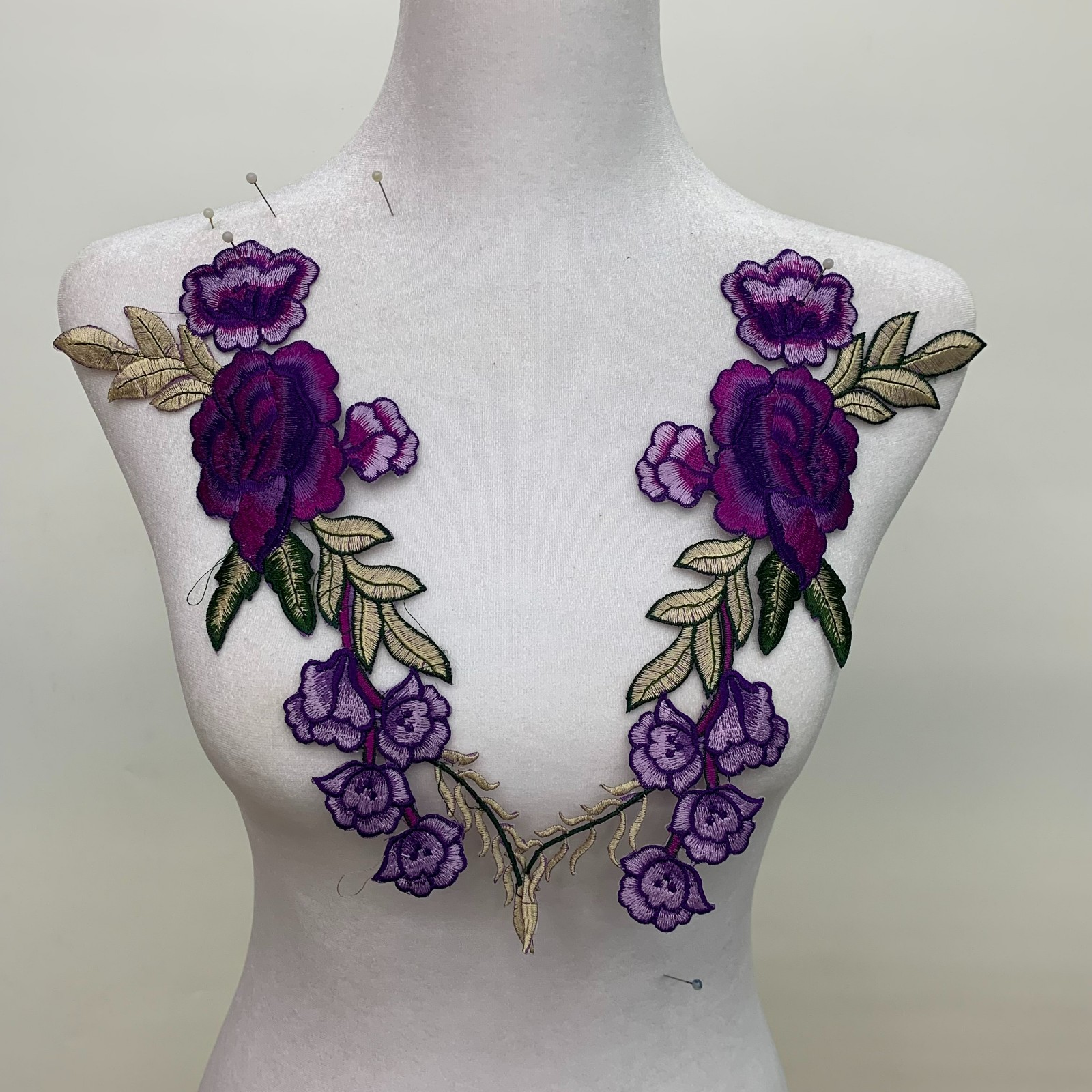 刺绣牡丹布贴背胶可熨烫修补丁材料DIY演出衣服贴婚纱辅料