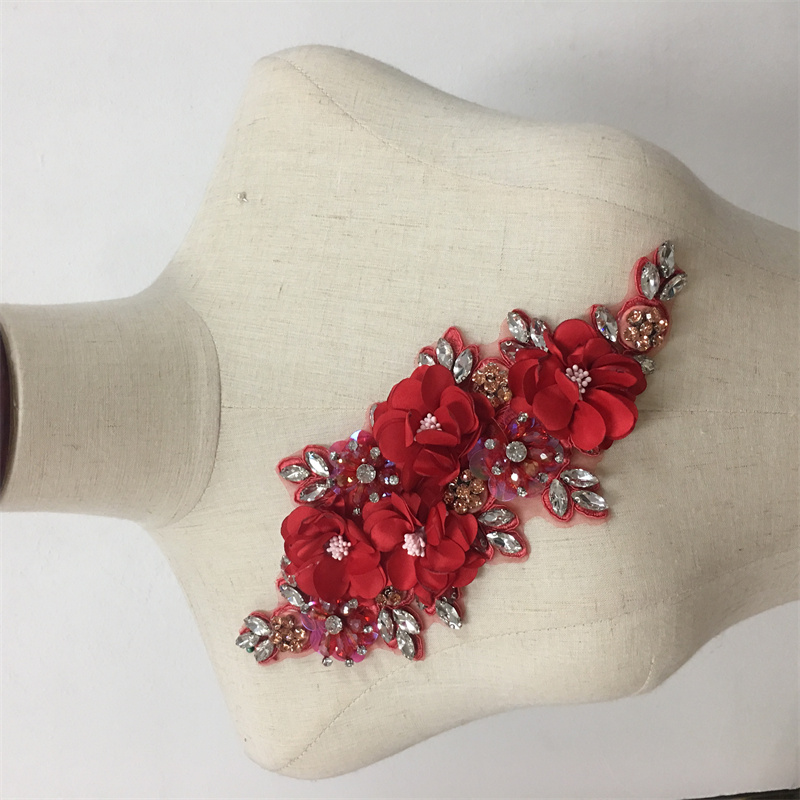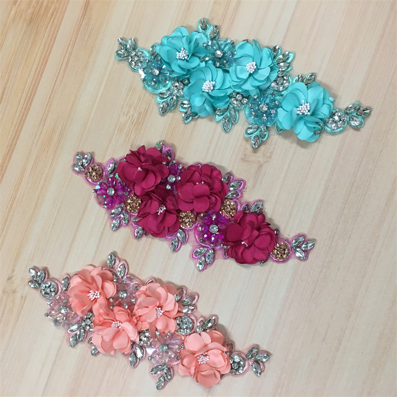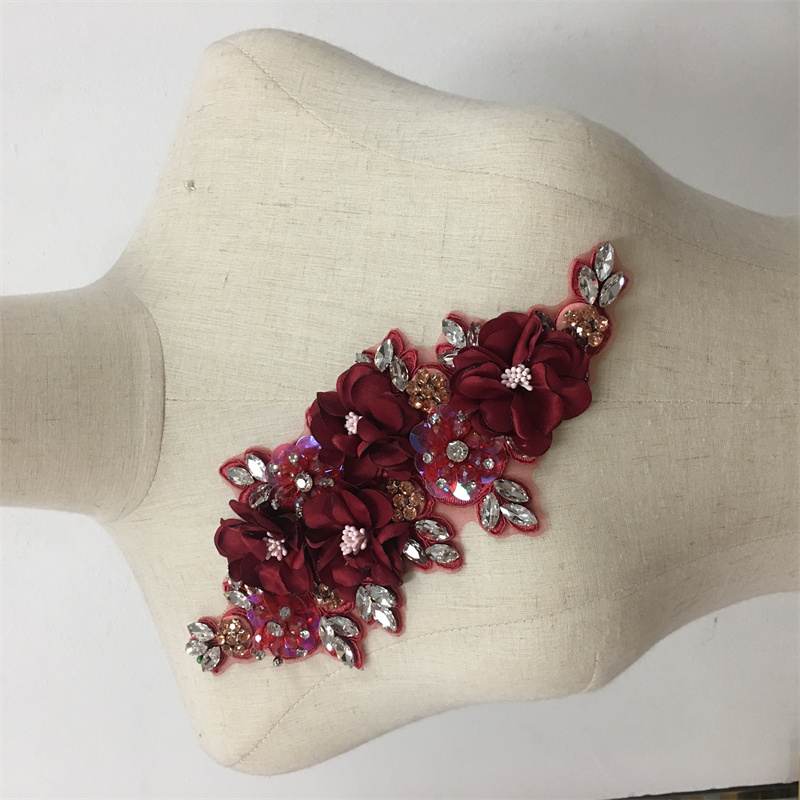 立体花朵 钻刺绣贴花蕾丝 辅料 多色服装配件 DIY花边