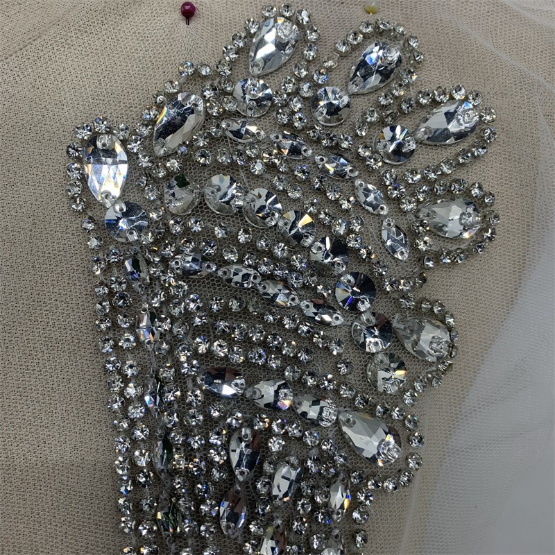 手工钉珠婚纱礼服深V领花贴花服装辅料配件