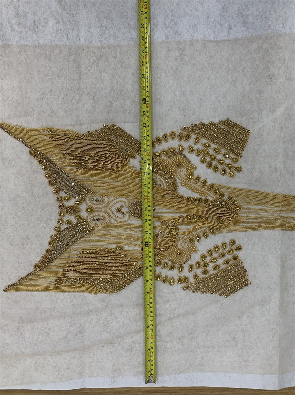 重工金色前幅钉珠贴花流苏网纱贴花