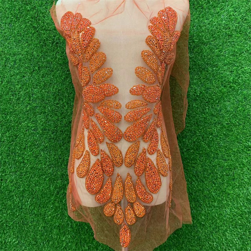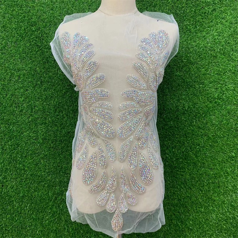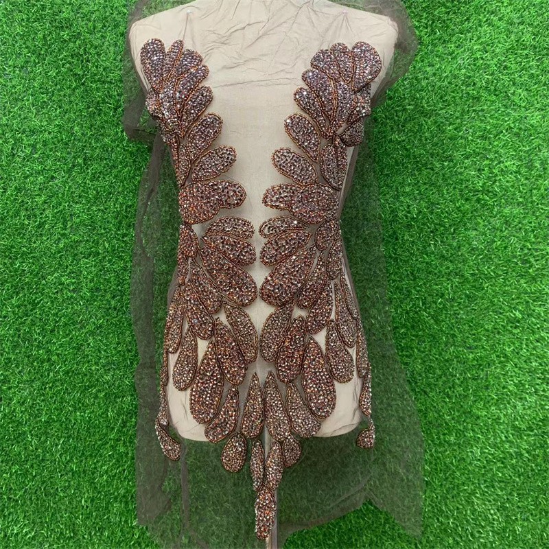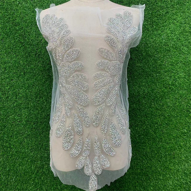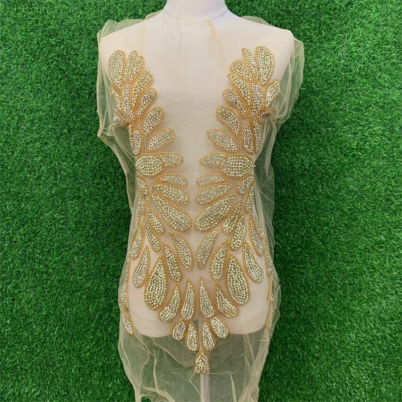 金色前幅手工钉珠婚纱礼服胸针网纱贴花