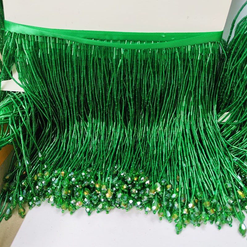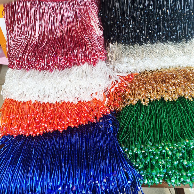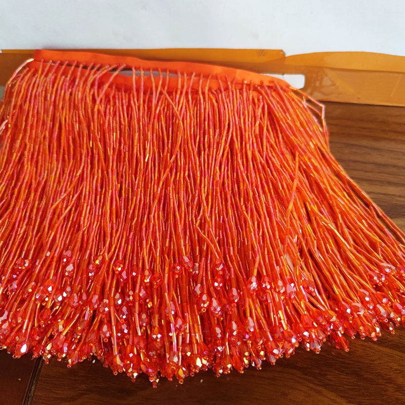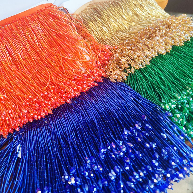15CM红绿蓝黄黑全闪亮全珠管流苏水晶水吊舞蹈服辅料服饰斗笠花边