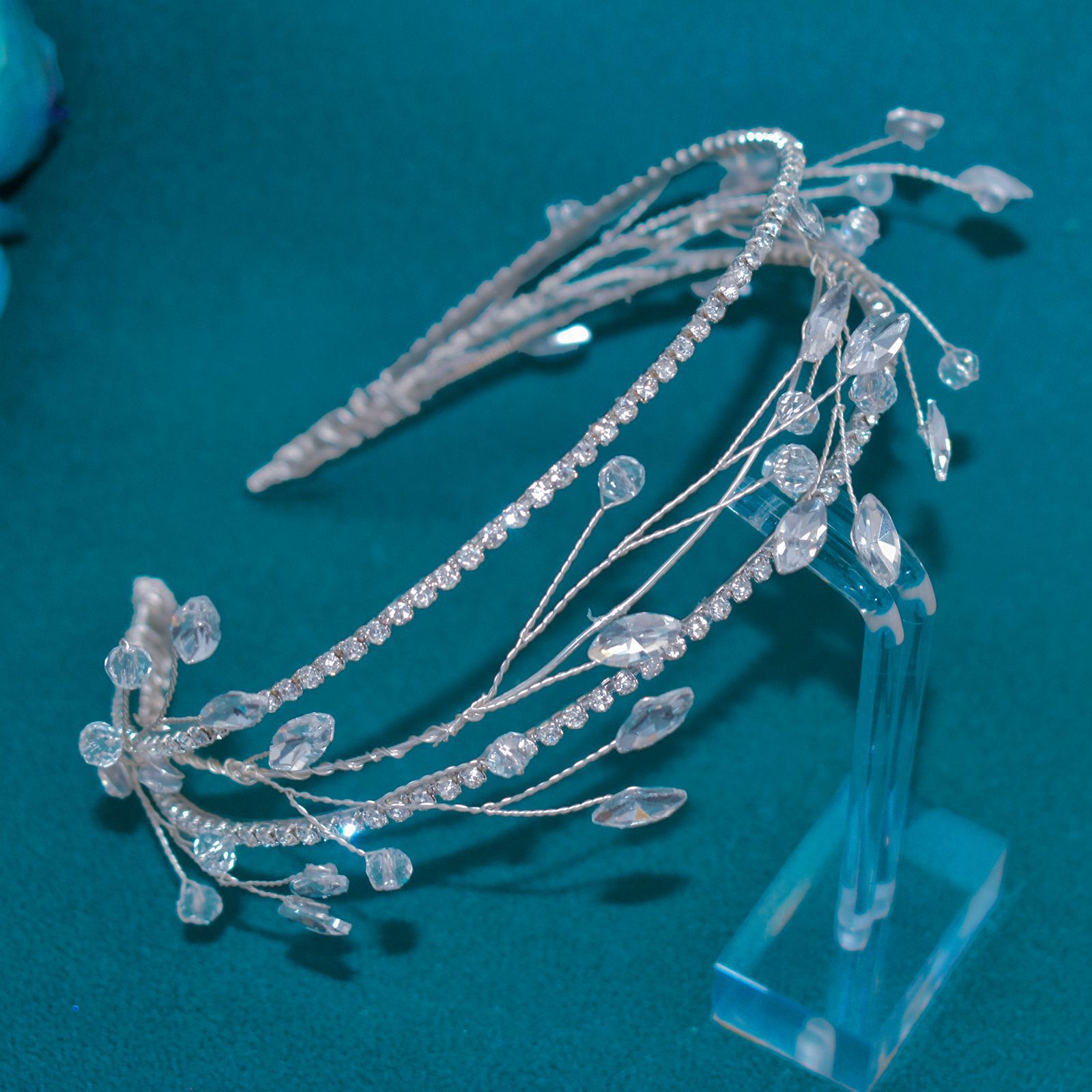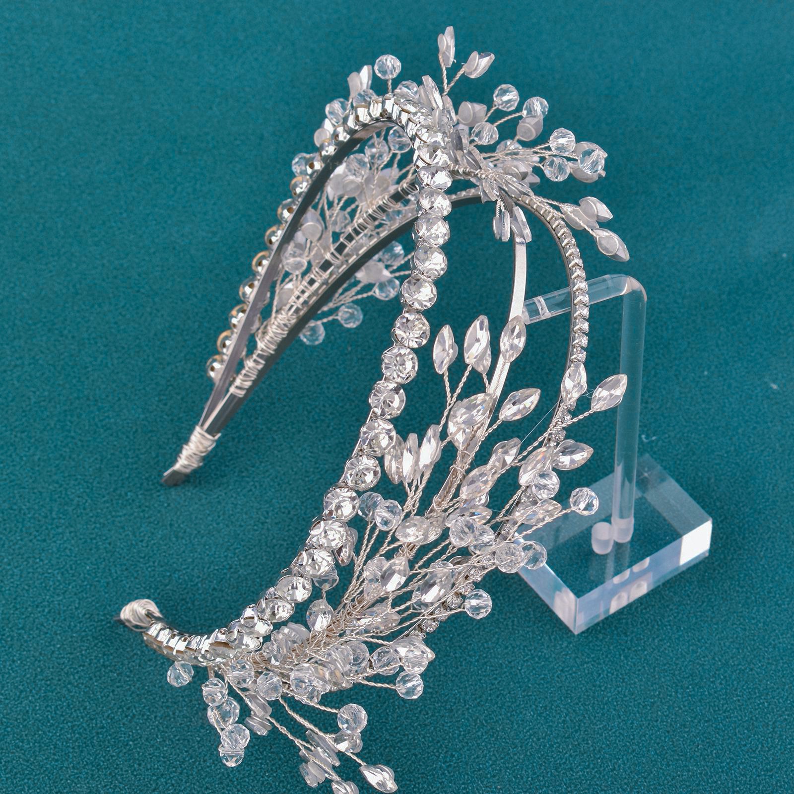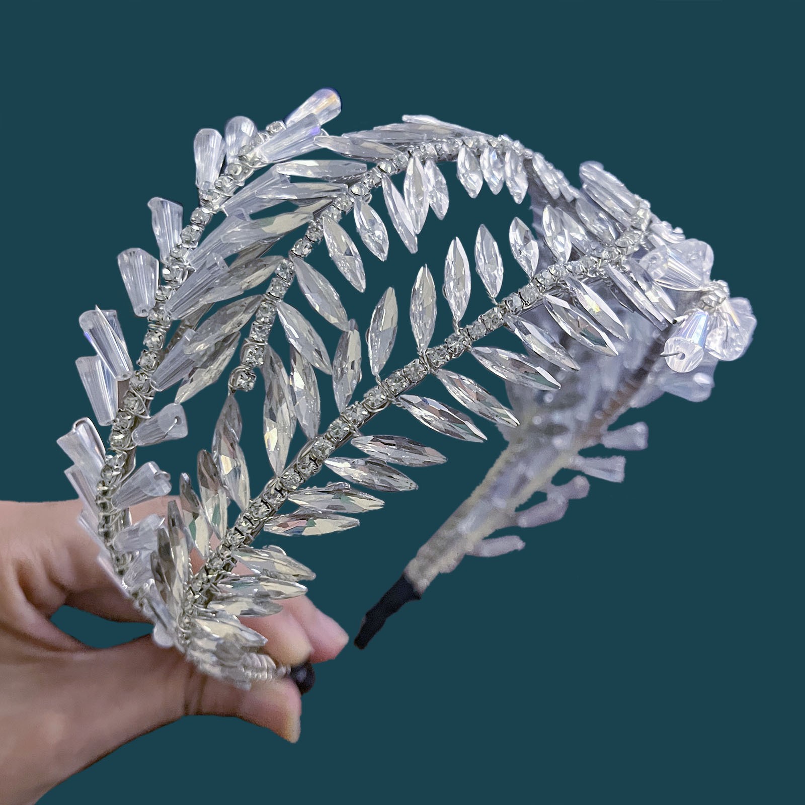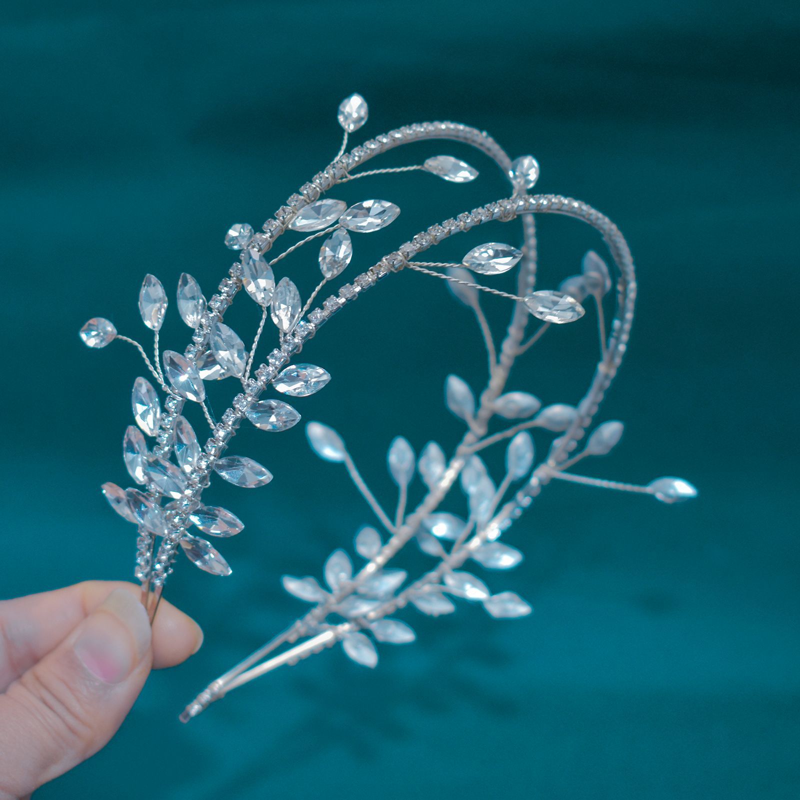 外贸手工水钻发箍头饰新娘婚纱礼服发饰双排爪链头箍水晶编织发冠