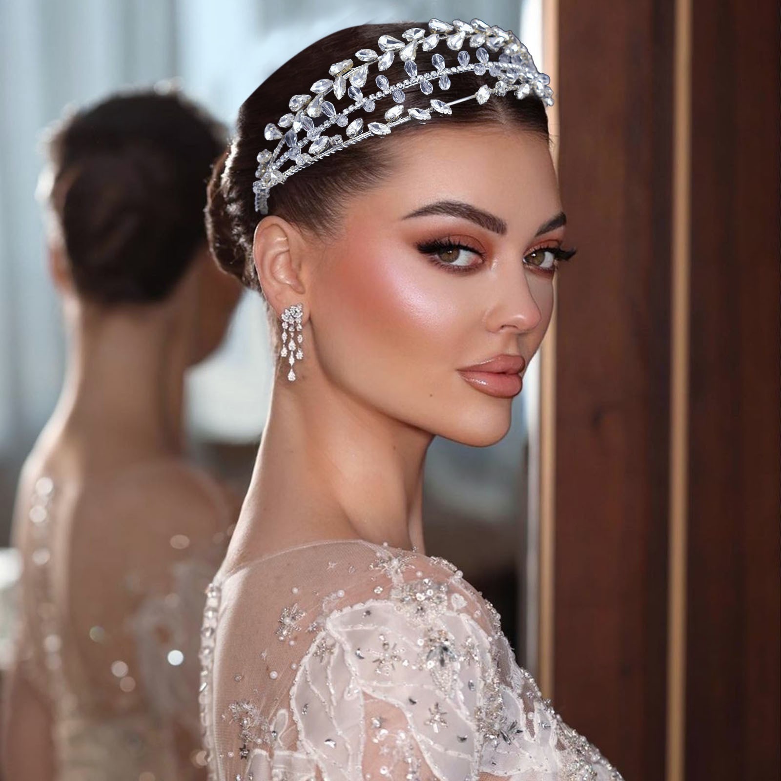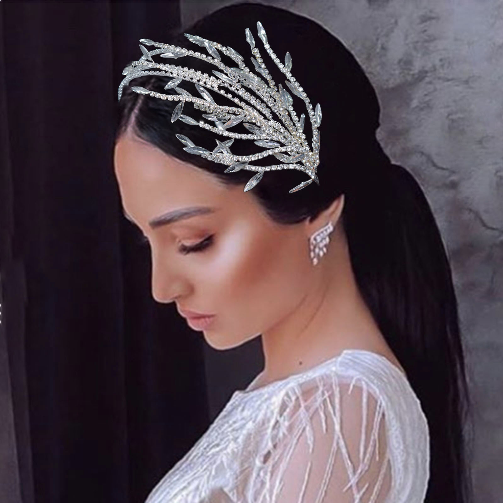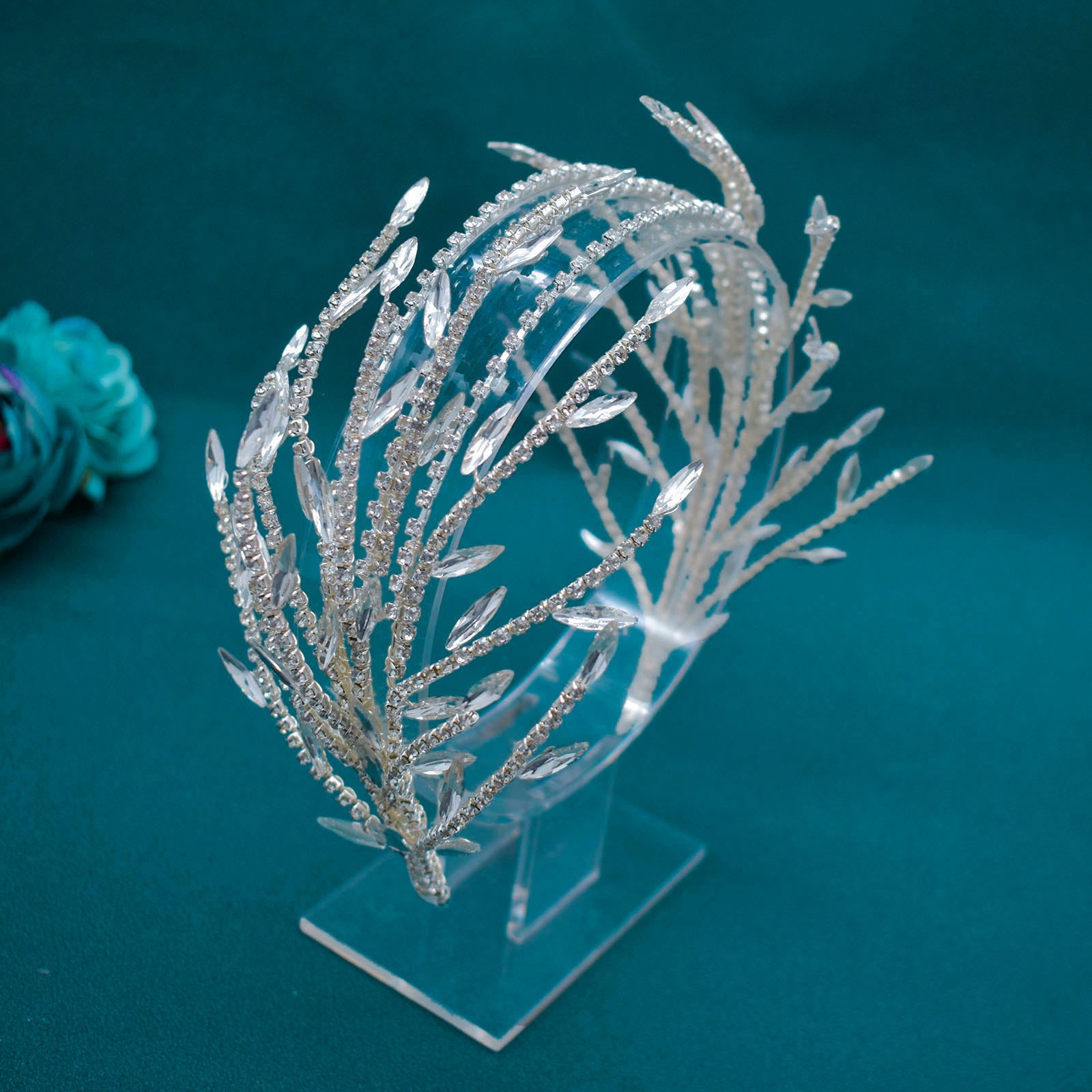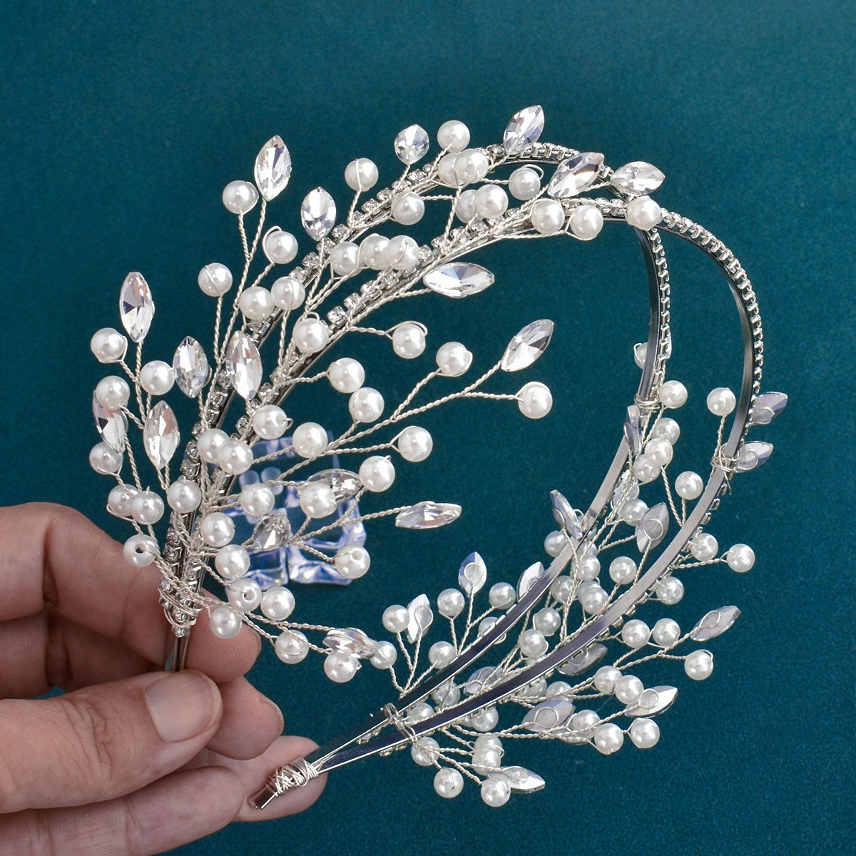 外贸手工水钻发箍头饰新娘婚纱礼服发饰双排爪链头箍水晶编织发冠