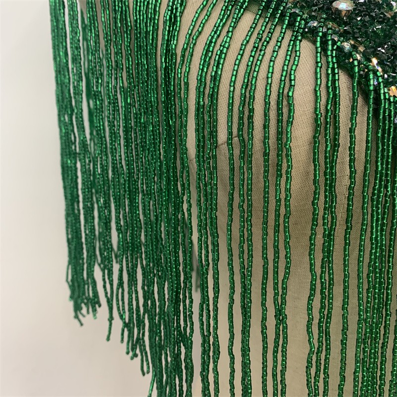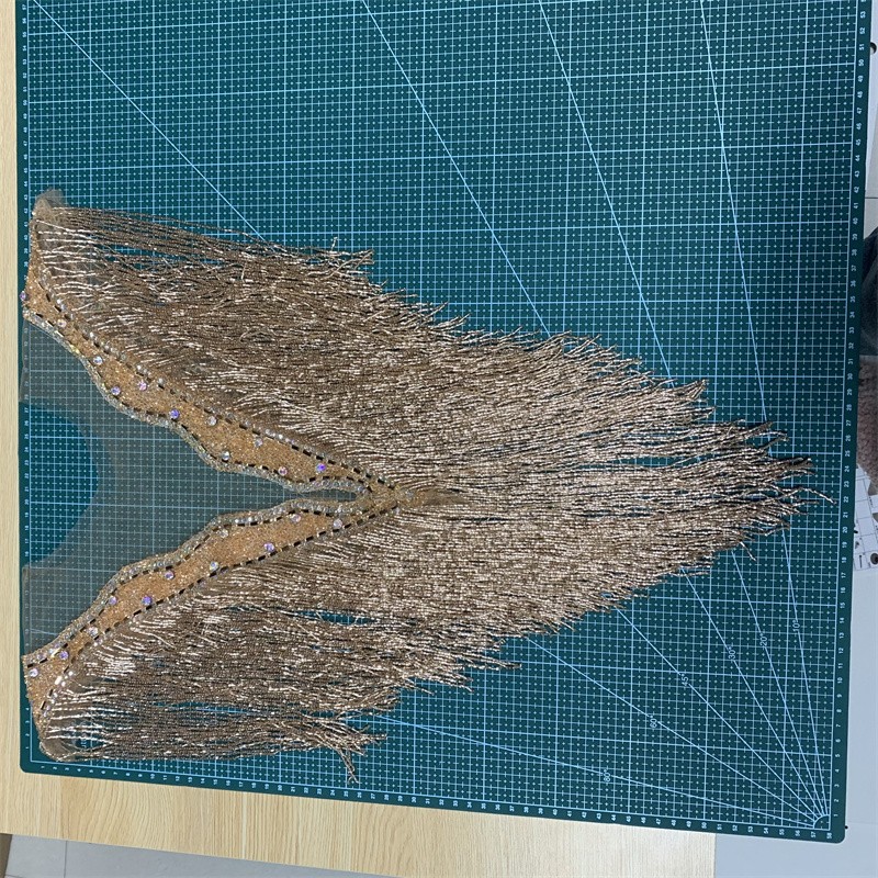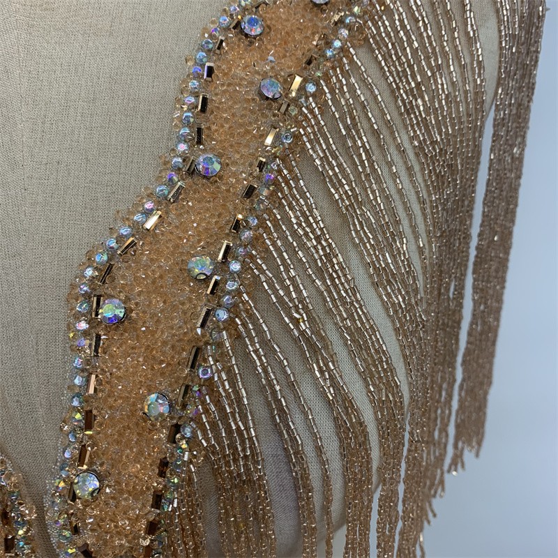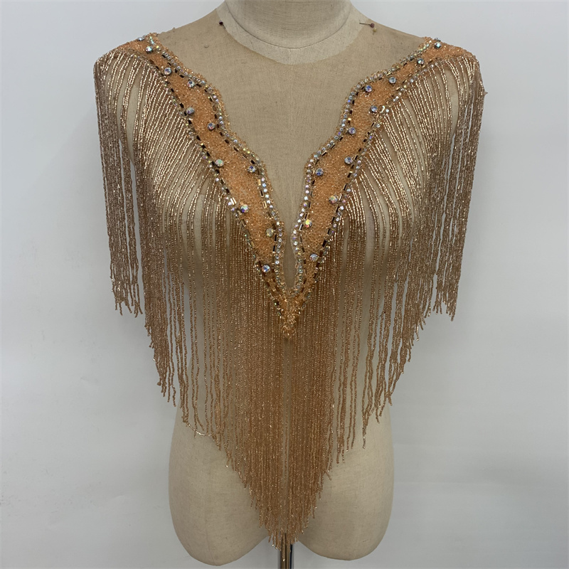 奢华金色长串珠流苏领口手