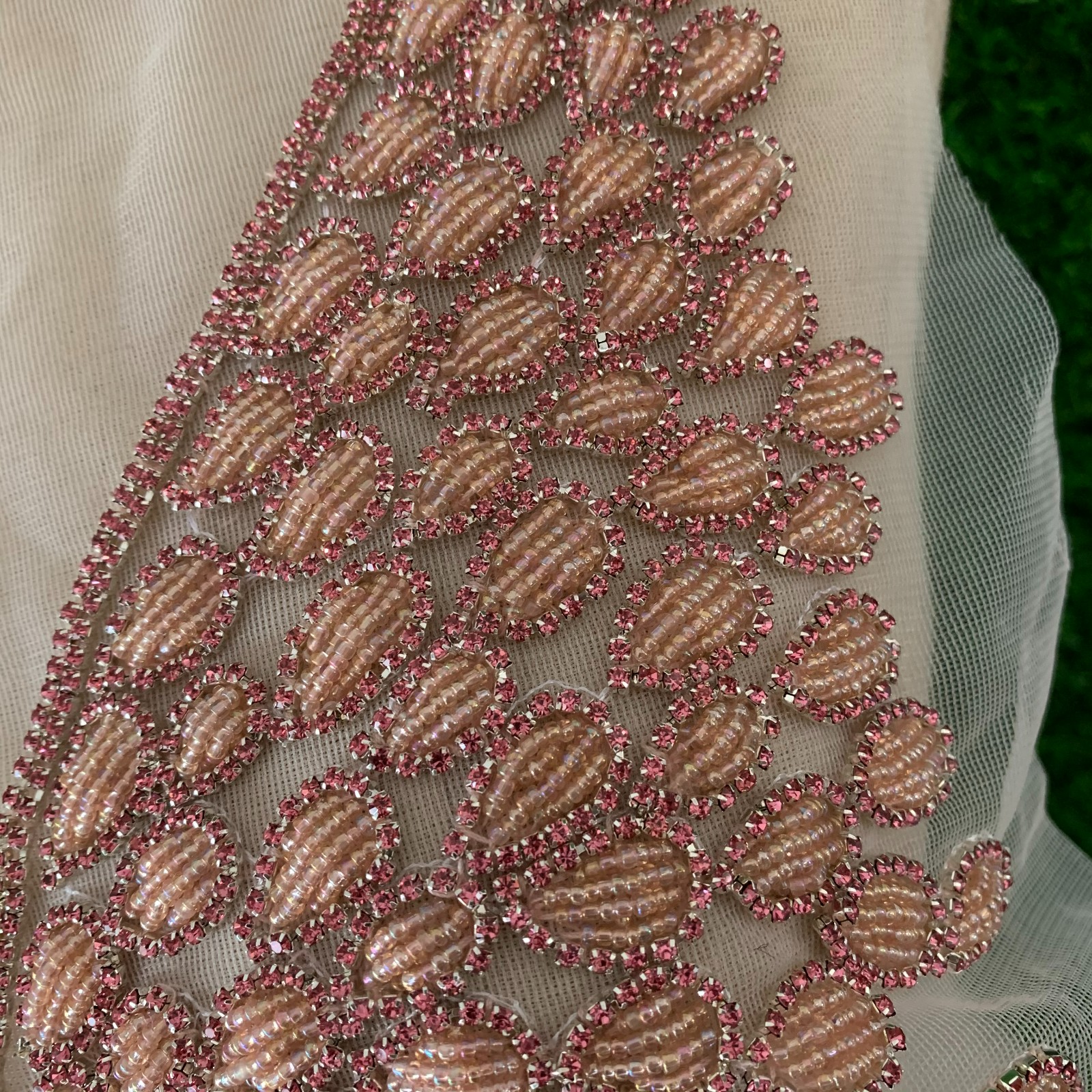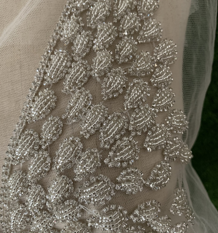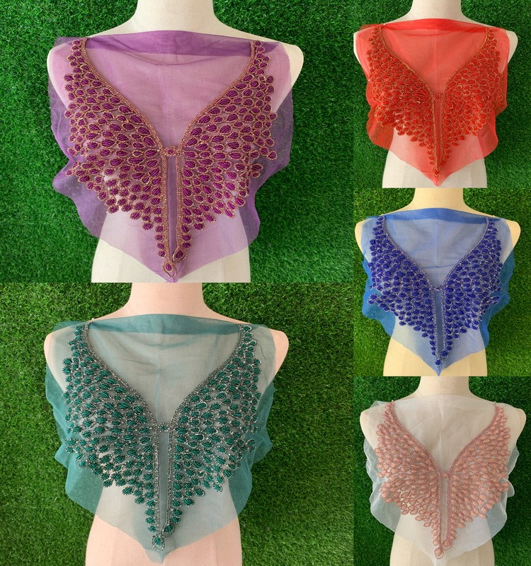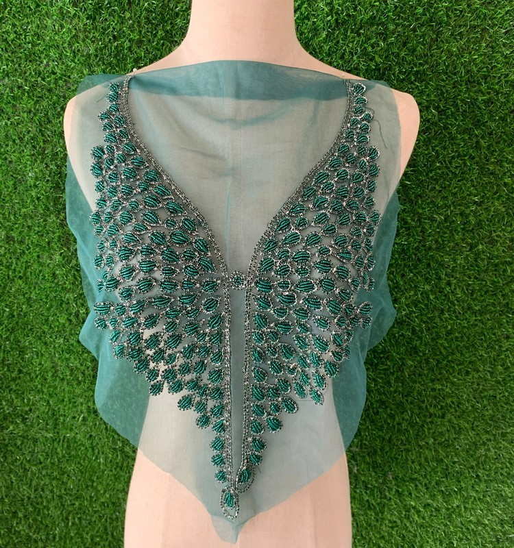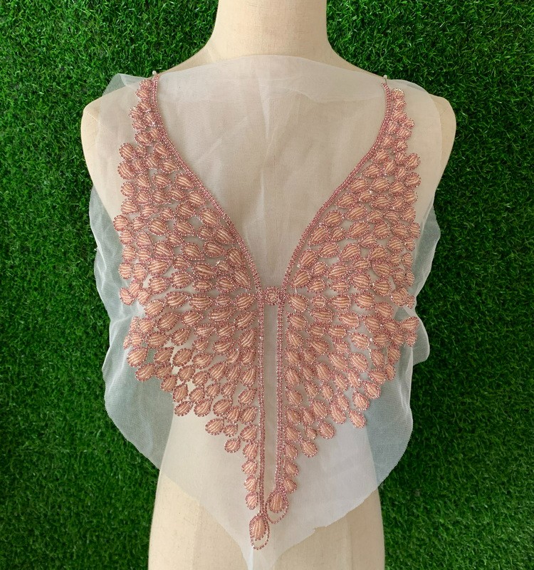网纱底串珠贴花 管珠胸衣贴花DIY服装辅料
