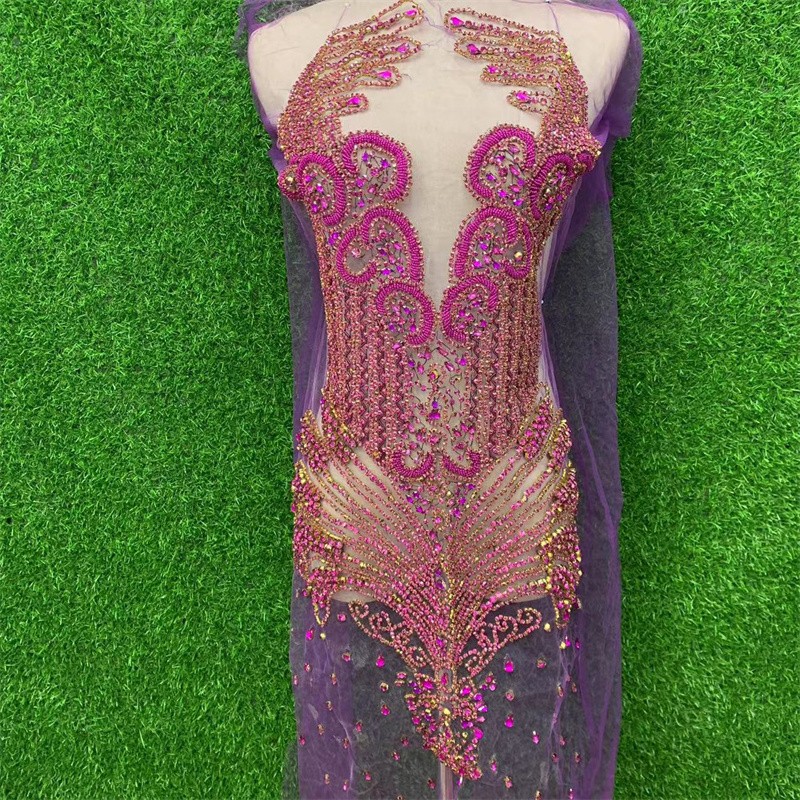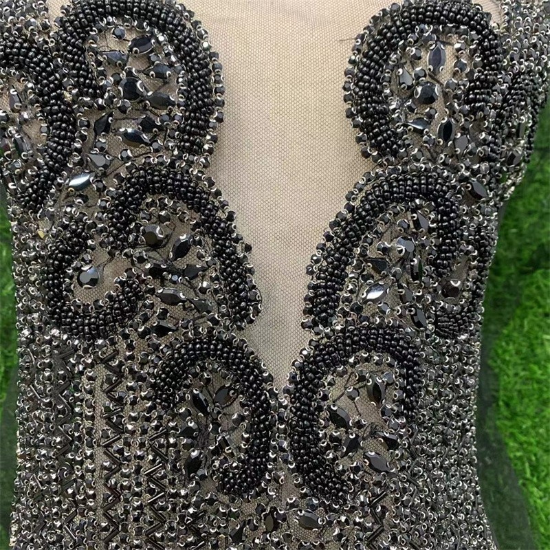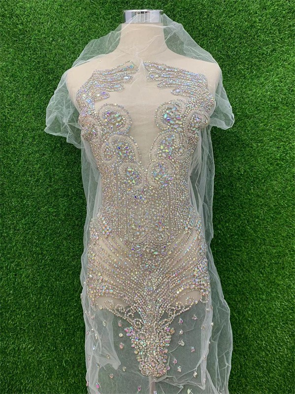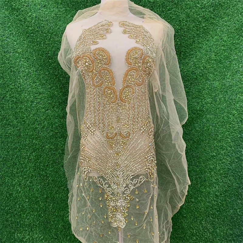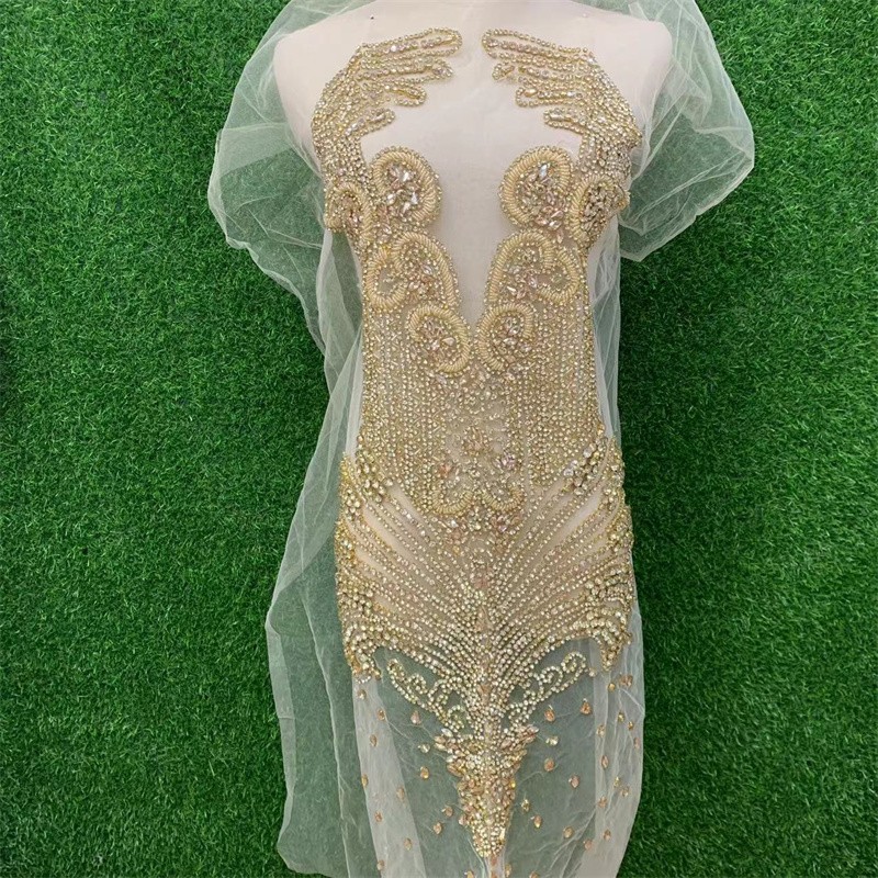 金色前幅手工钉珠婚纱礼服胸针网纱贴花