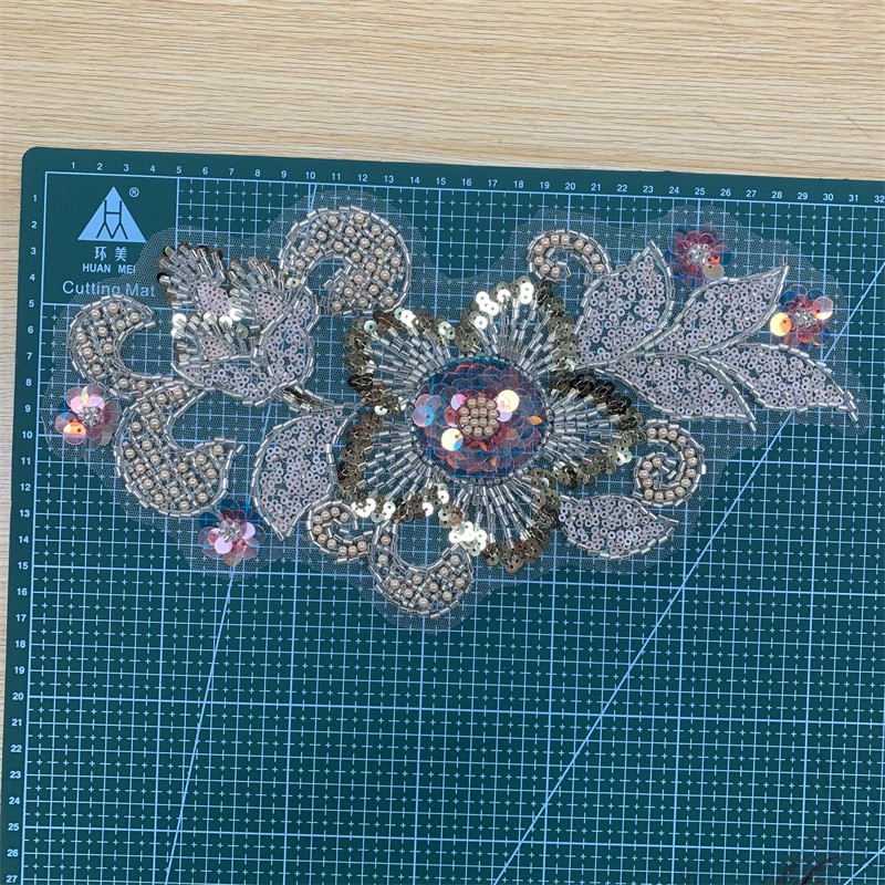 香槟色透明亮片钉珠花边装饰婚纱礼服女装衣服装饰辅料