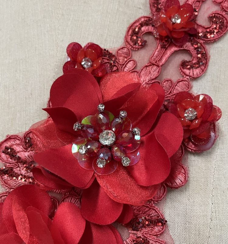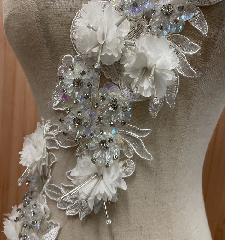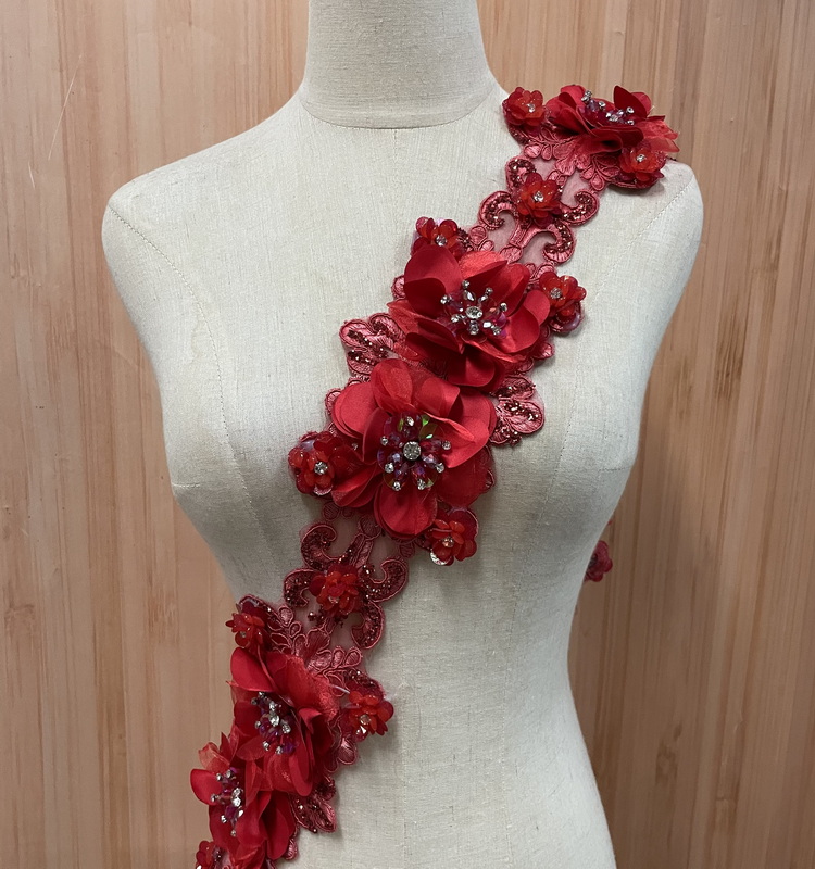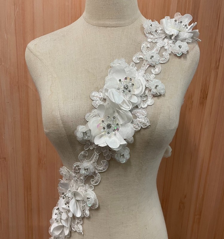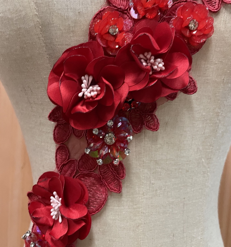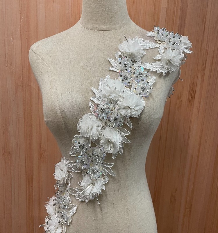 混色重工立体钉珠粘花水溶小花边 服装童装礼服辅料家纺窗帘配件