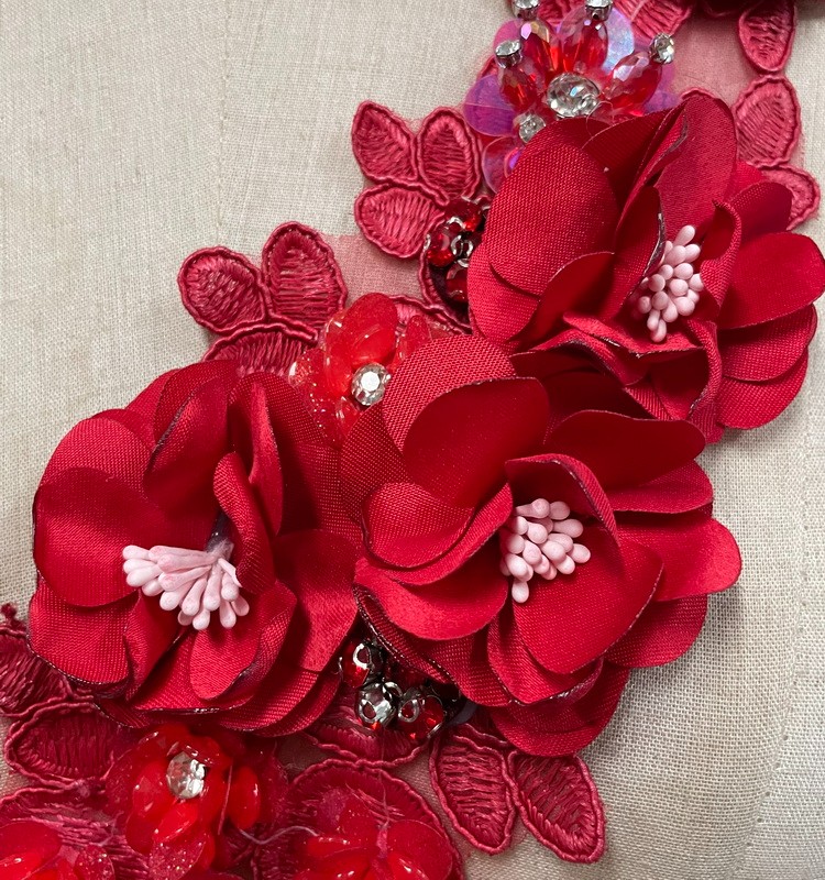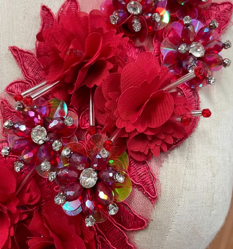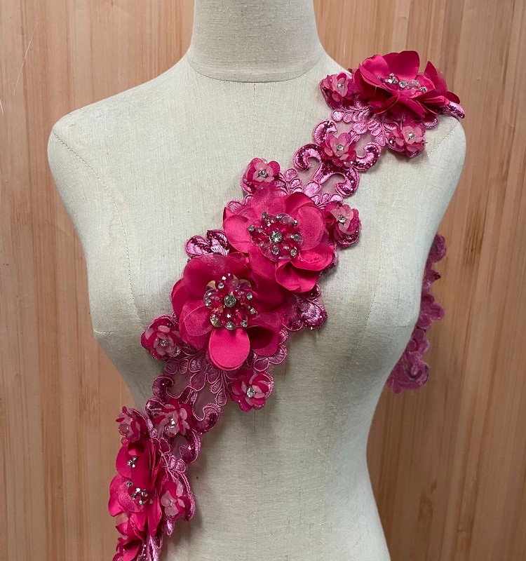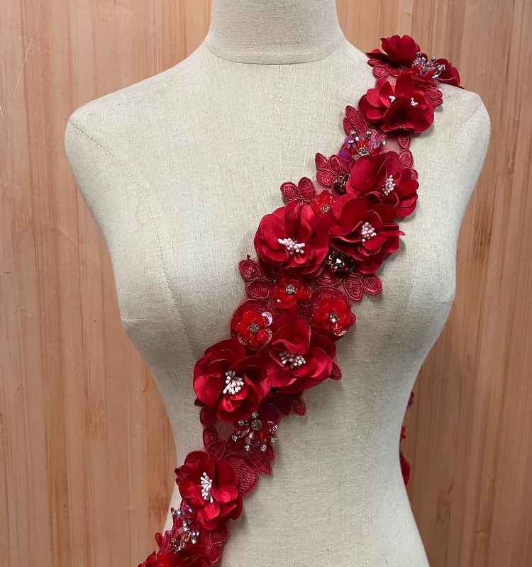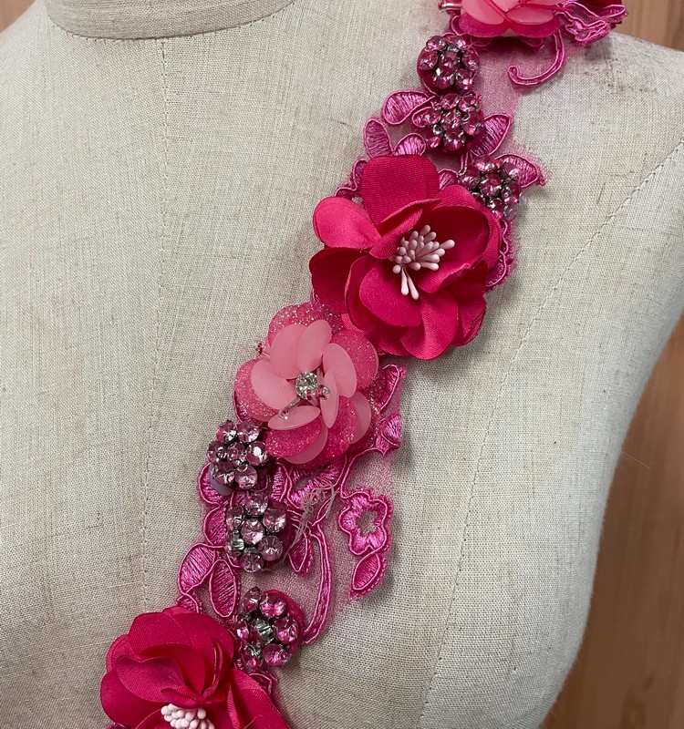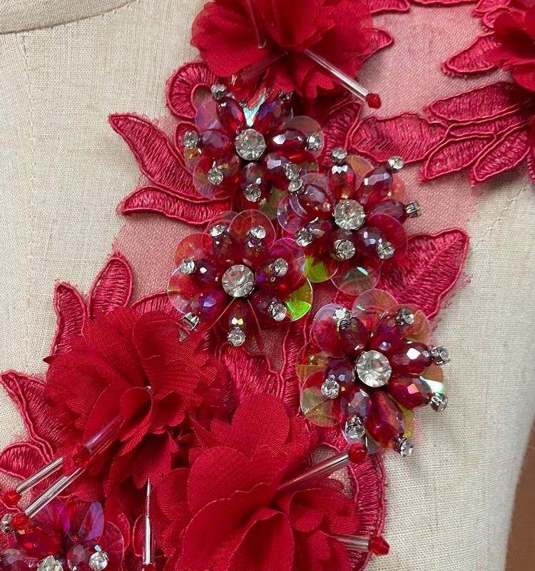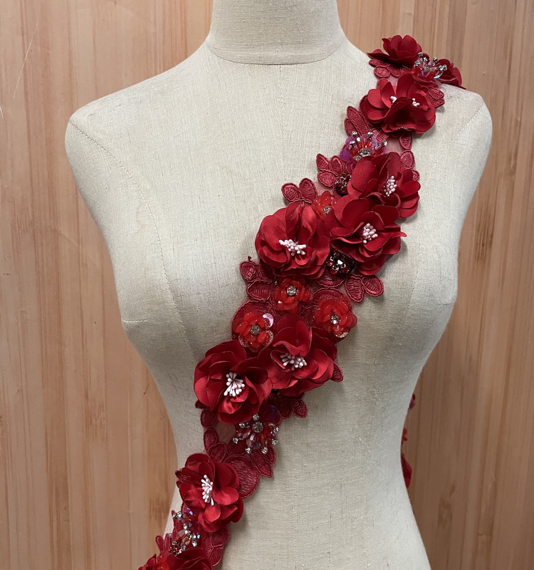 混色重工立体钉珠粘花水溶小花边 服装童装礼服辅料家纺窗帘配件