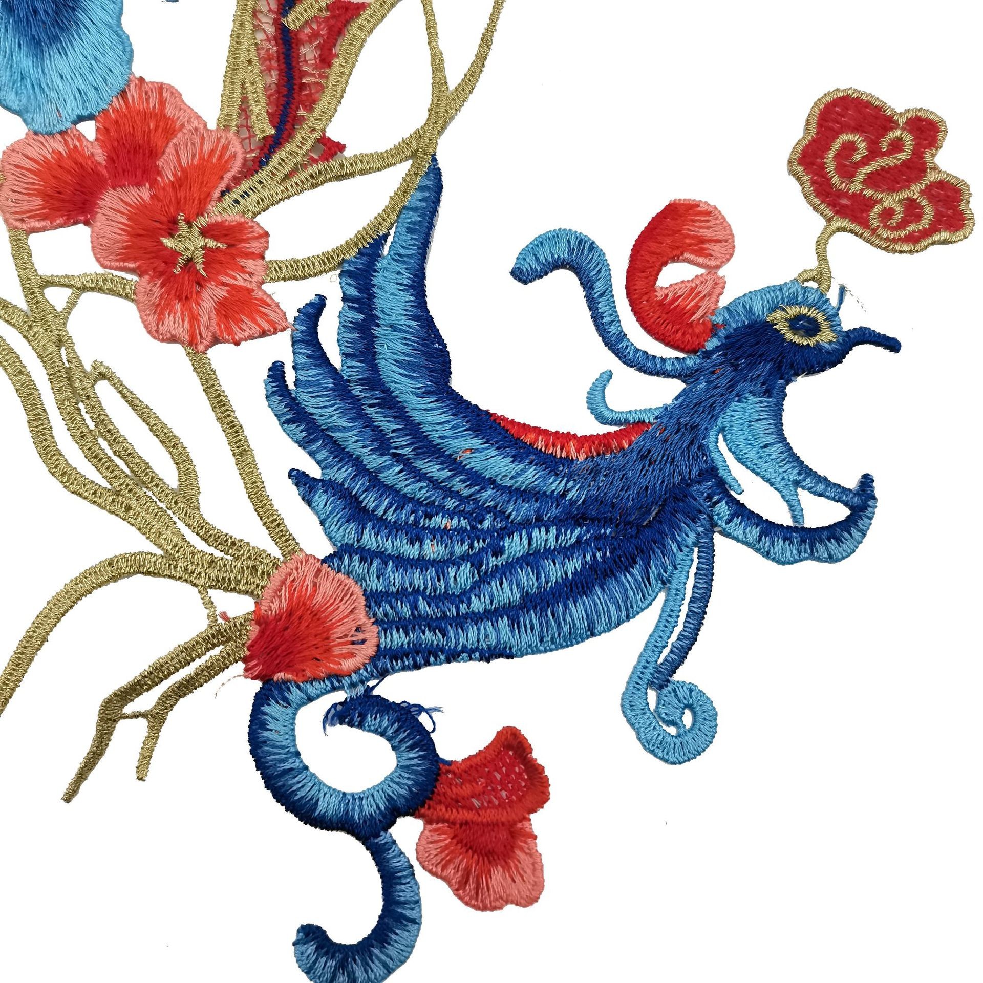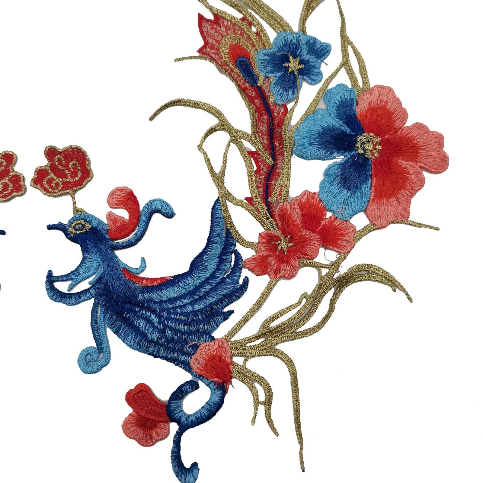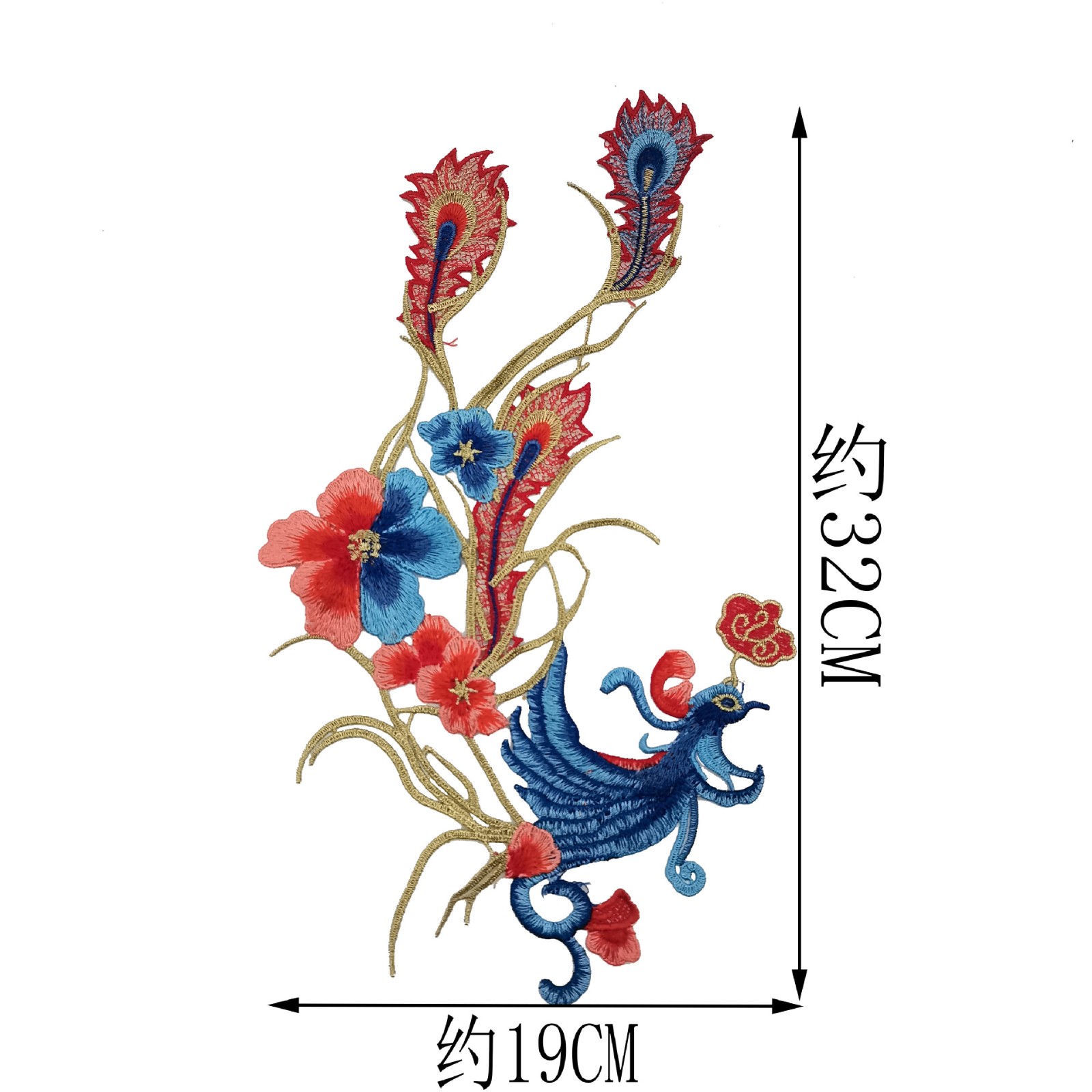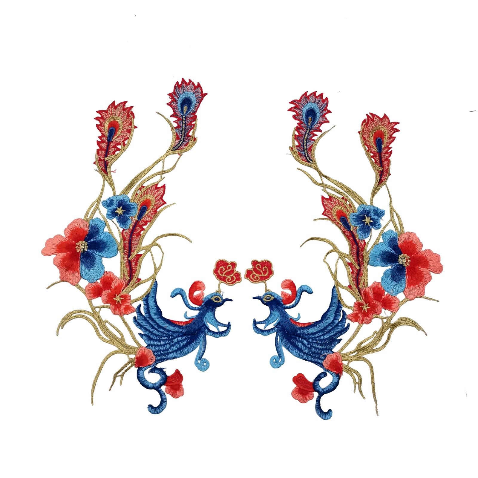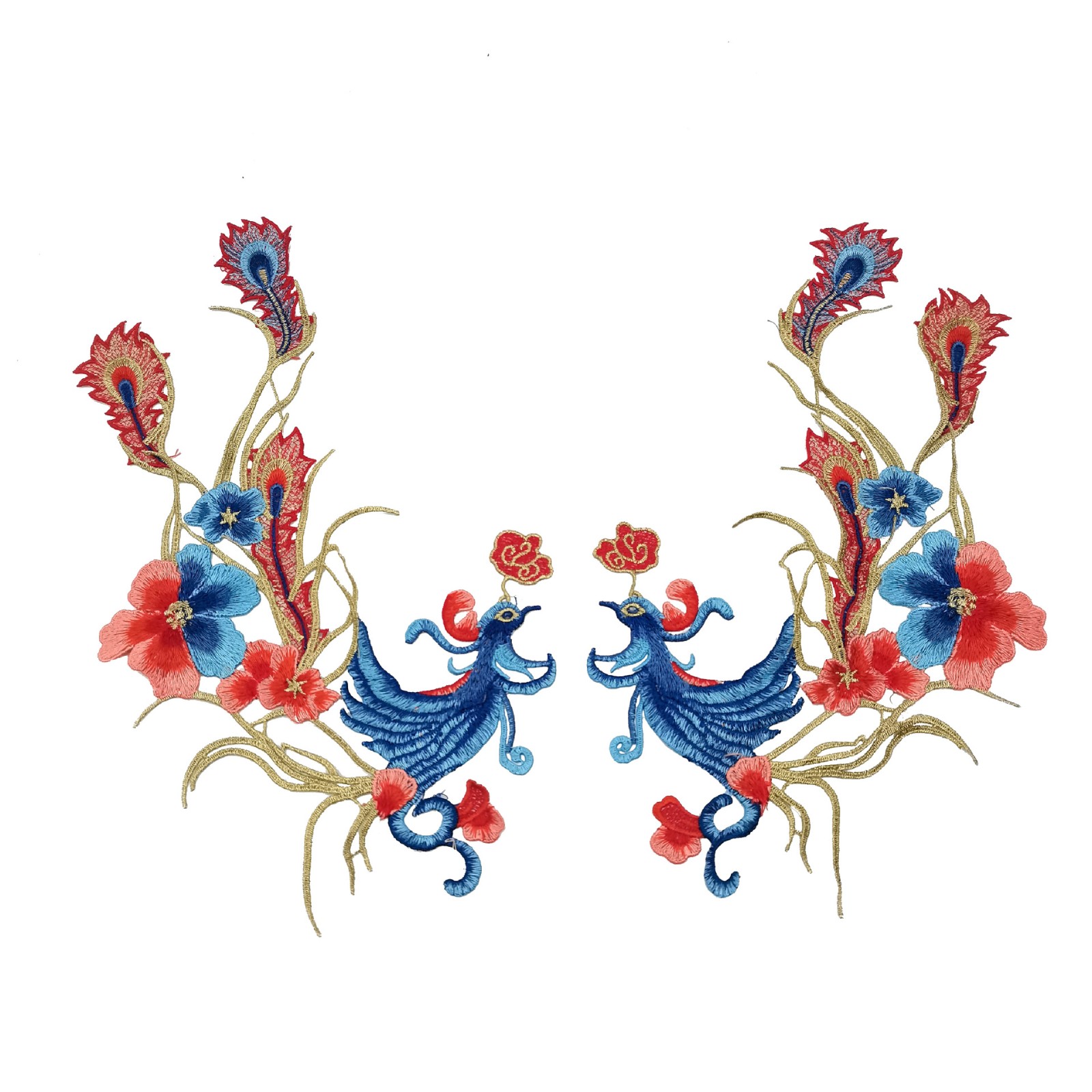 凤凰对花刺绣水溶朵花 女孩旗袍连衣裙装饰贴花 不带背胶服饰辅料