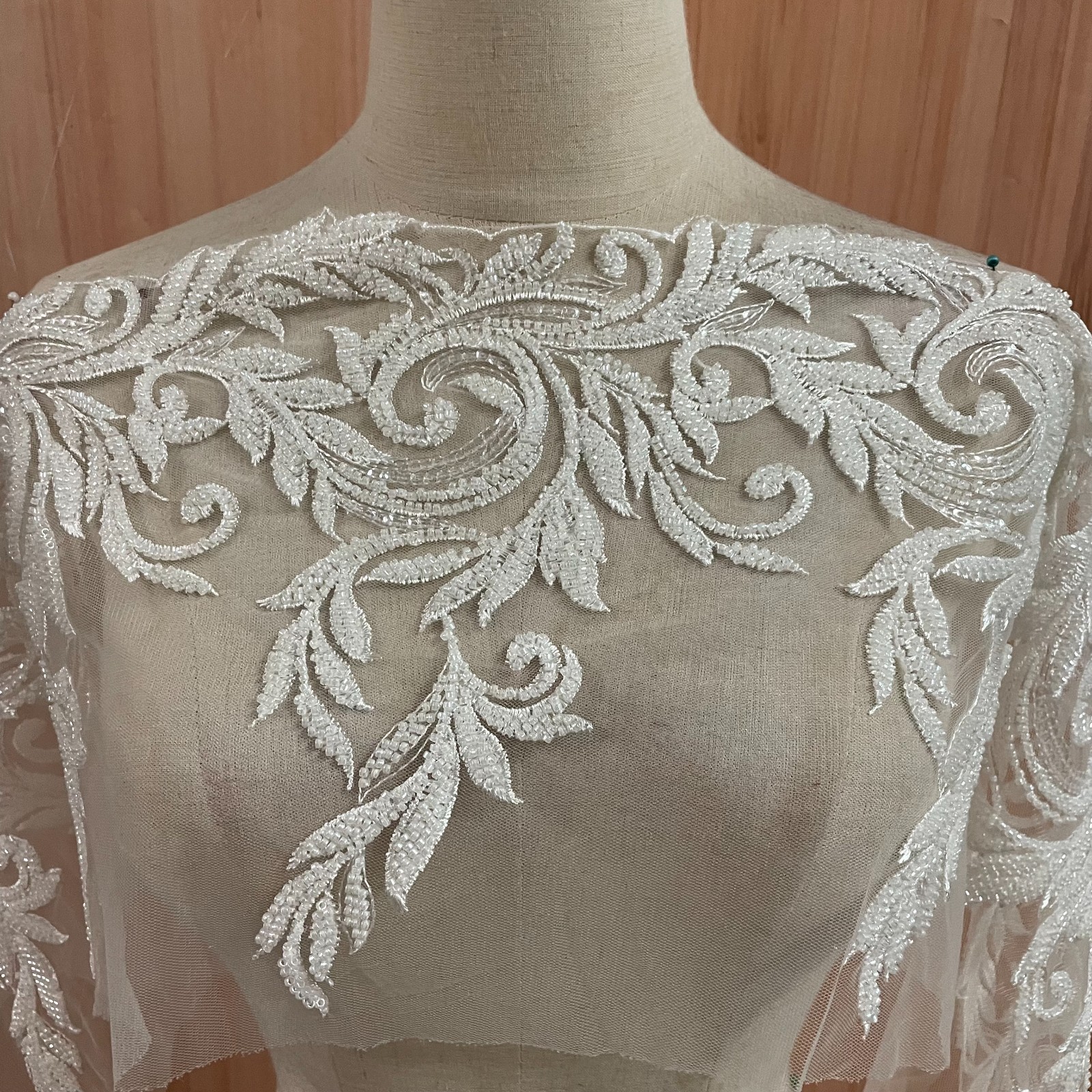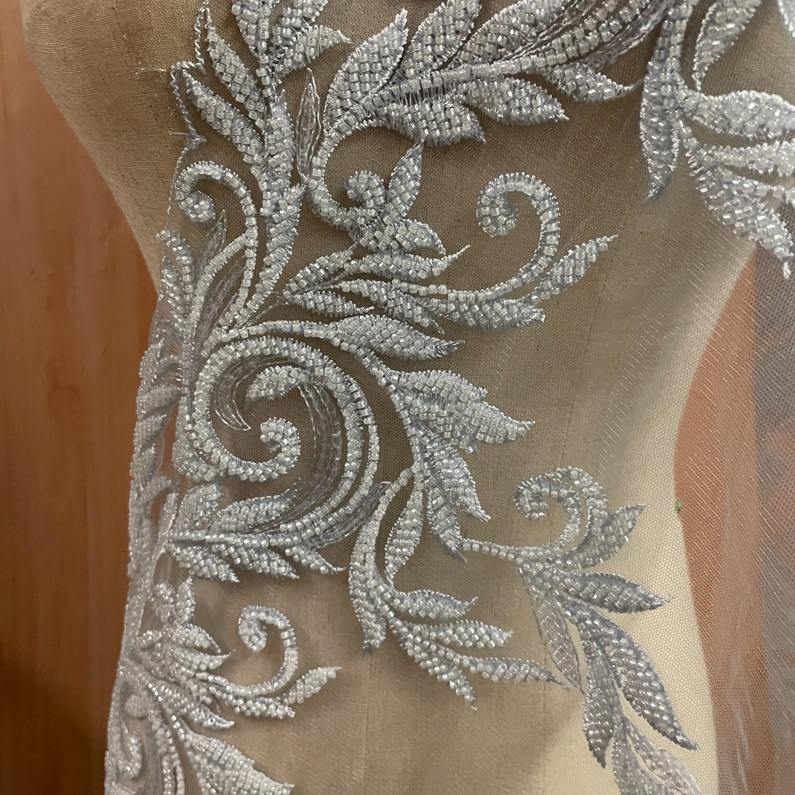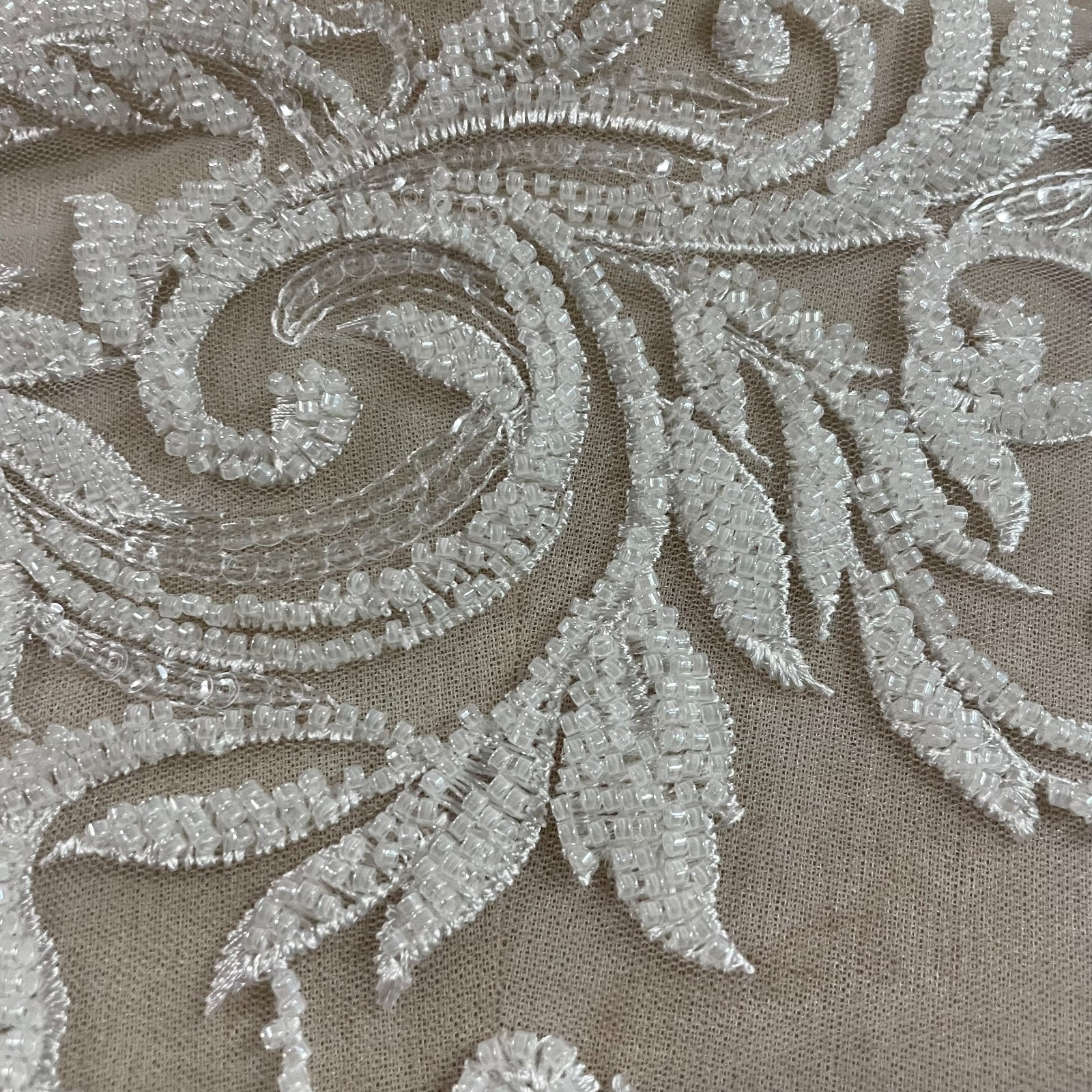 欧美非热卖,钉珠刺绣条码金色蕾丝花边珠片婚纱礼服辅料高档白色新款珠绣网底