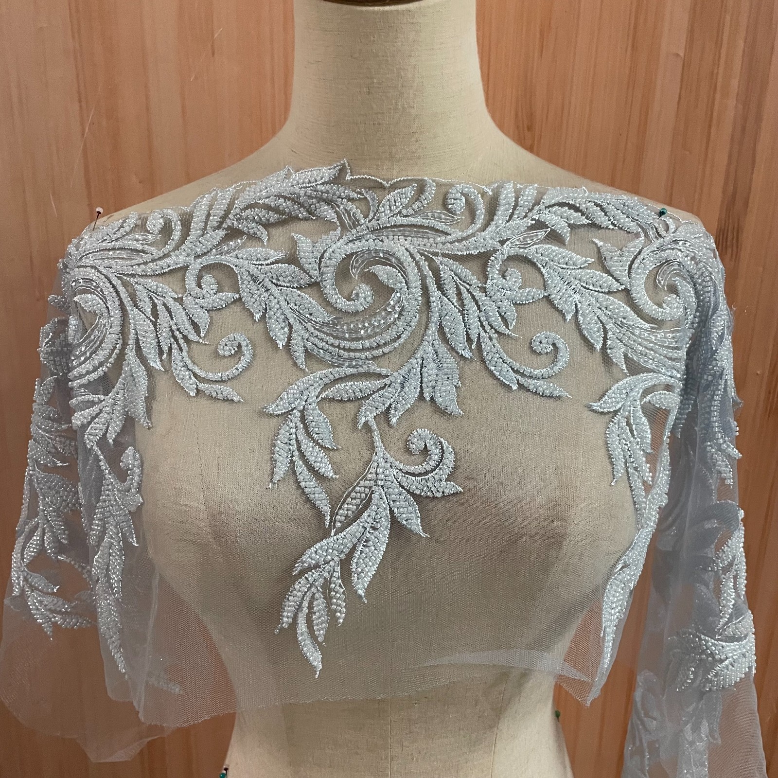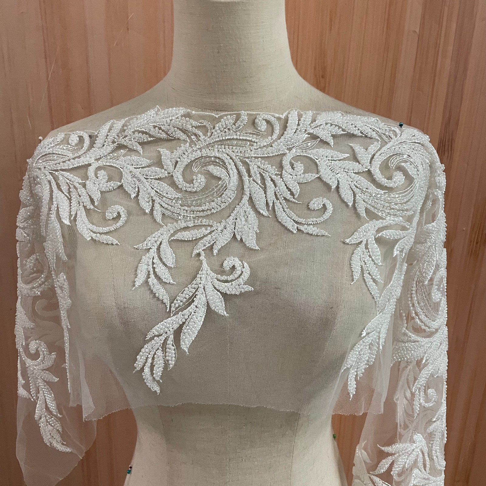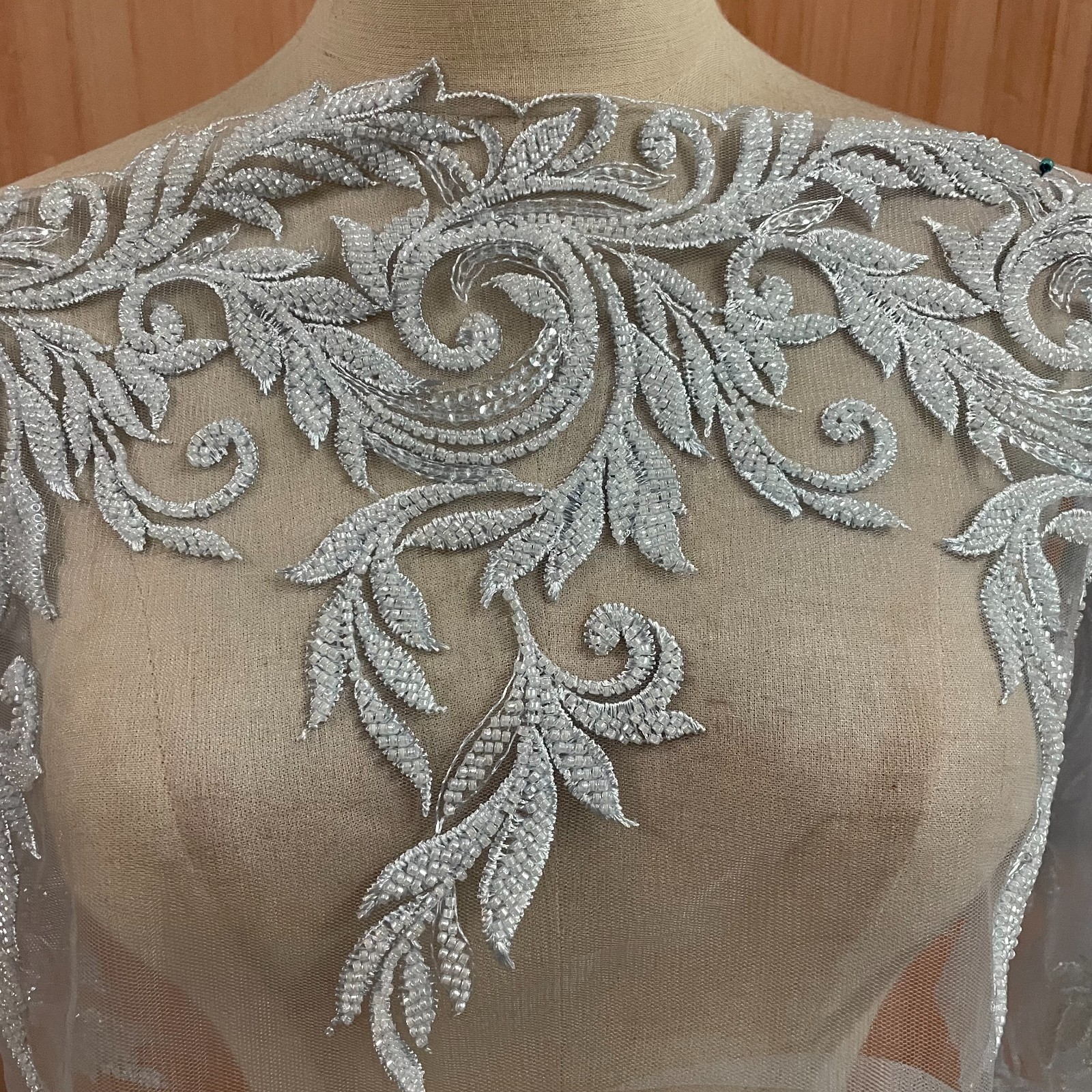 欧美非热卖,钉珠刺绣条码金色蕾丝花边珠片婚纱礼服辅料高档白色新款珠绣网底