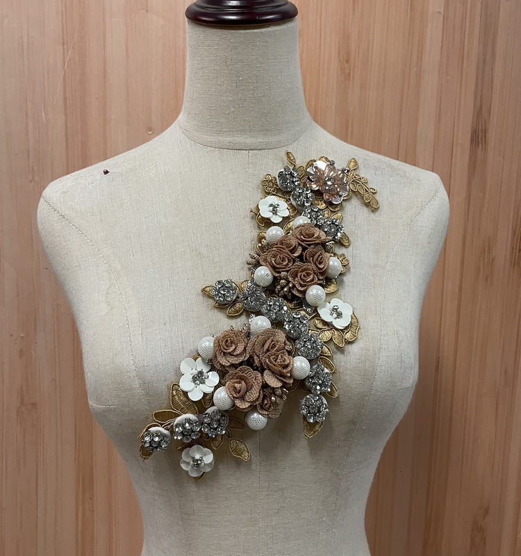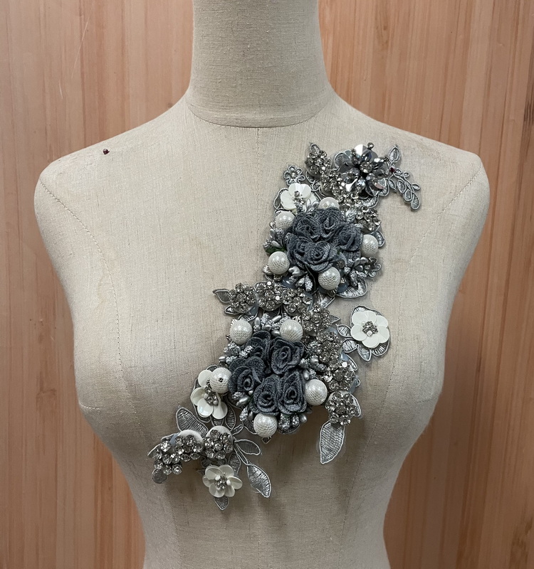 跨境服装辅料胸花 新款奢华缝珠花边贴花钻石花边车骨刺绣对花