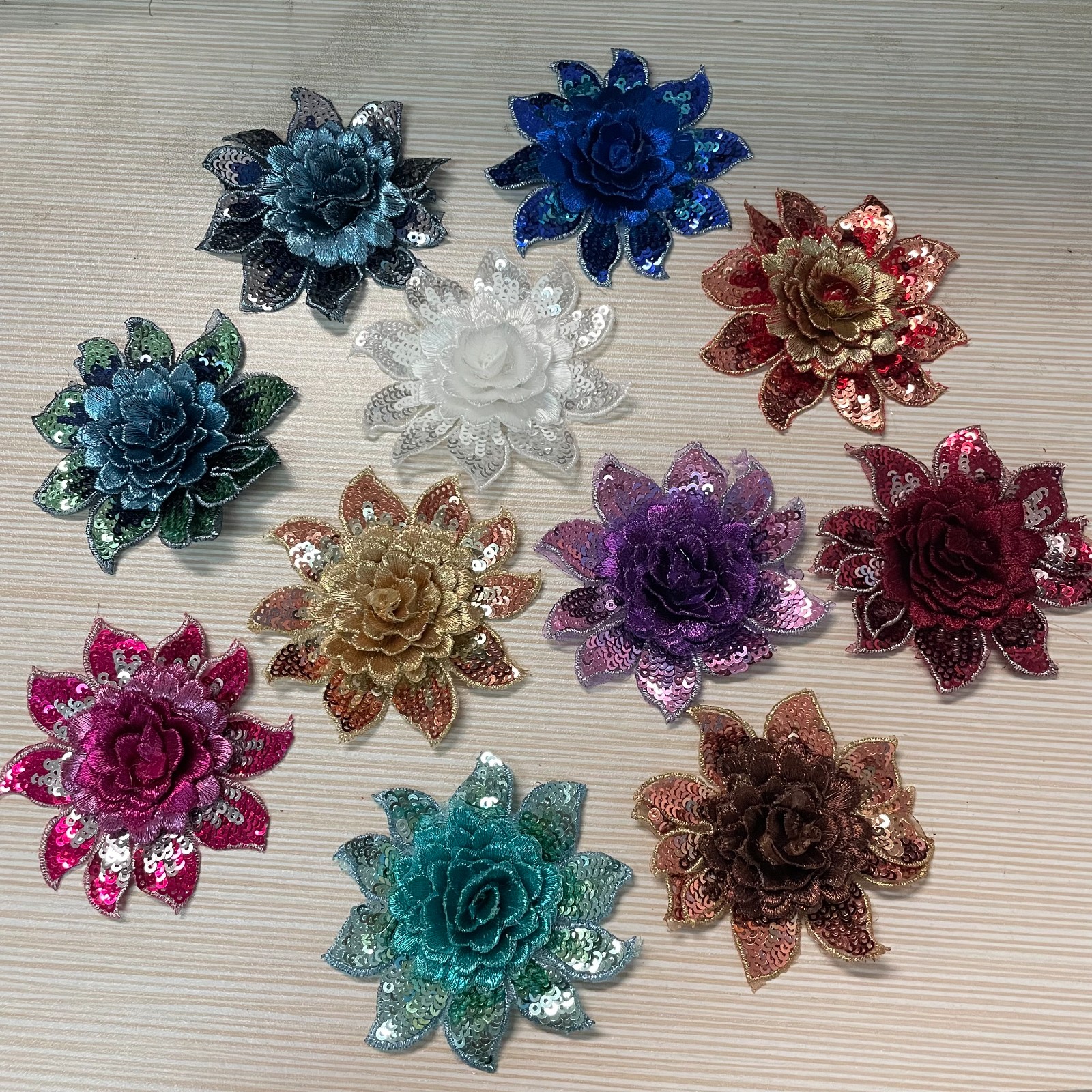 精美漂亮的车骨蕾丝花边,水溶蕾丝花朵布贴,蕾丝网纱,绢布花朵,撞色多蕾丝花朵组合,多色亮片3d小花朵DIY童装晚礼服,针织新娘服装服饰裙摆DIY辅料
