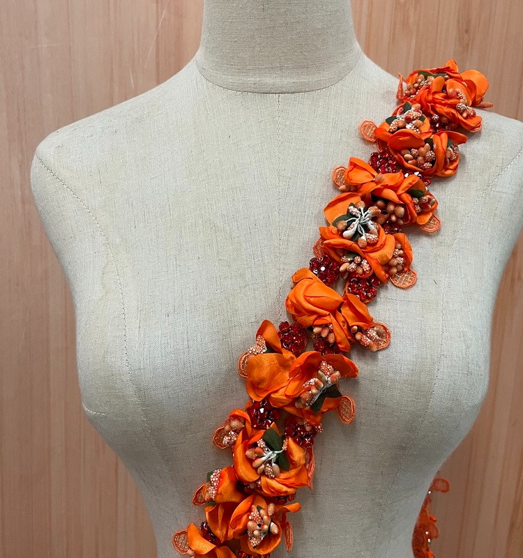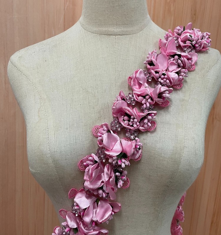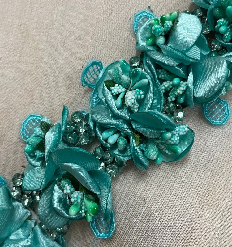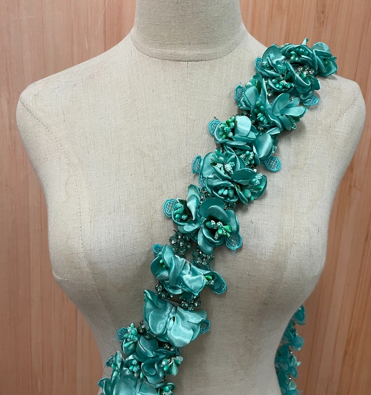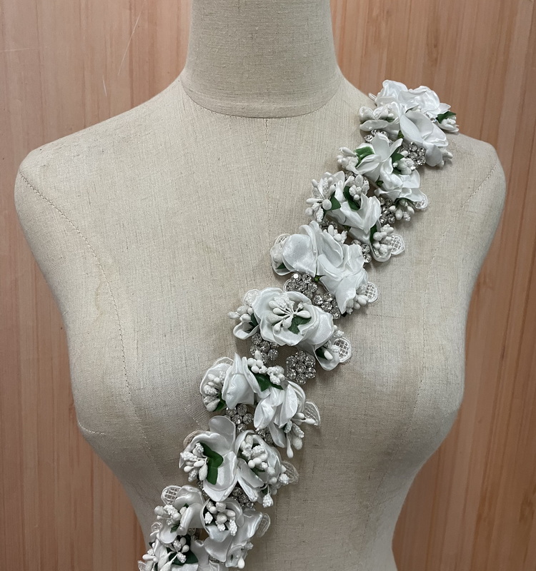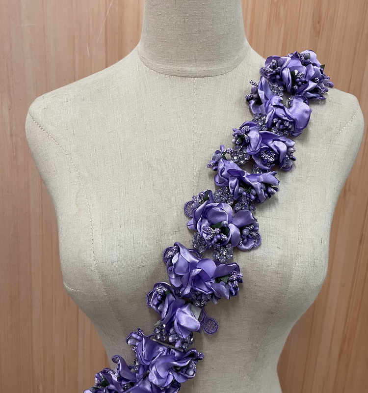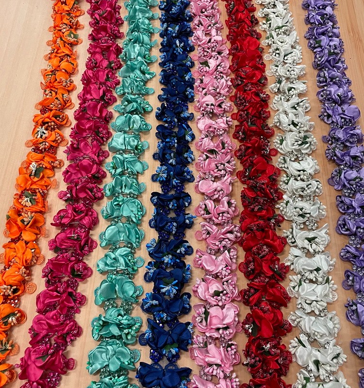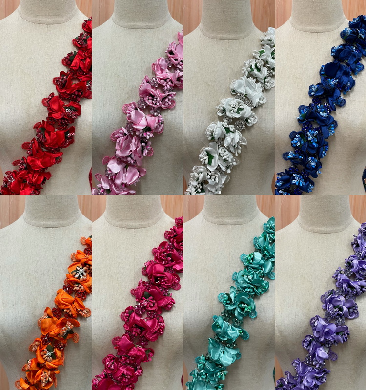 现货条码欧根纱刺绣花朵双层沙花手工粘花 彩色花服装辅料diy花边