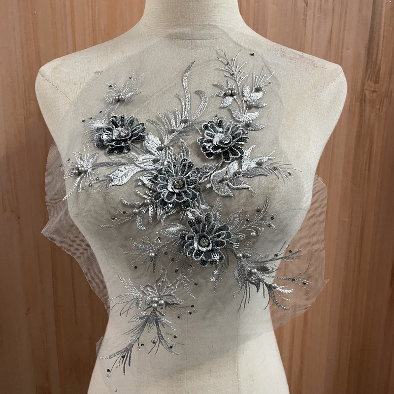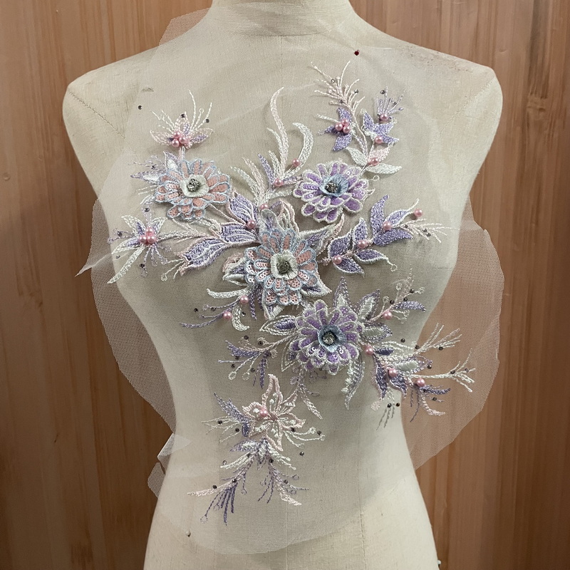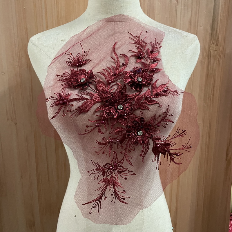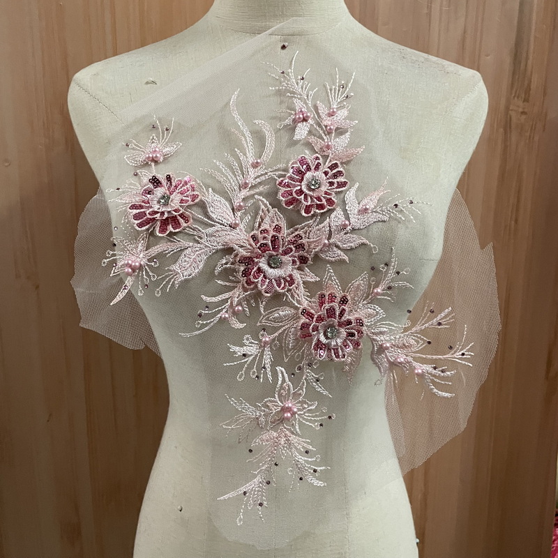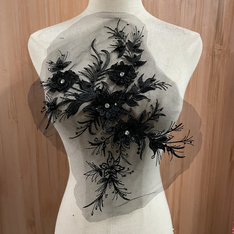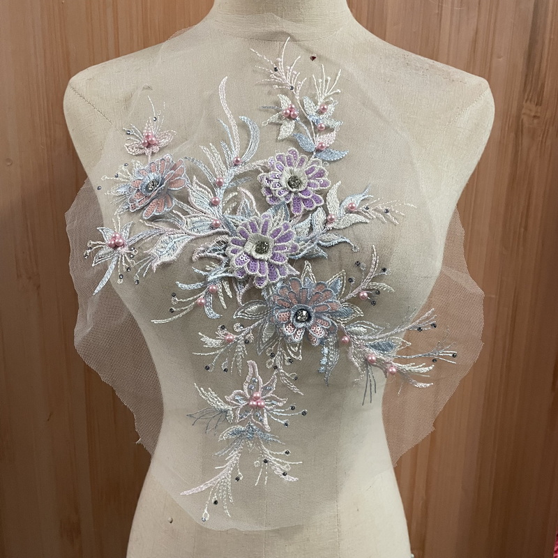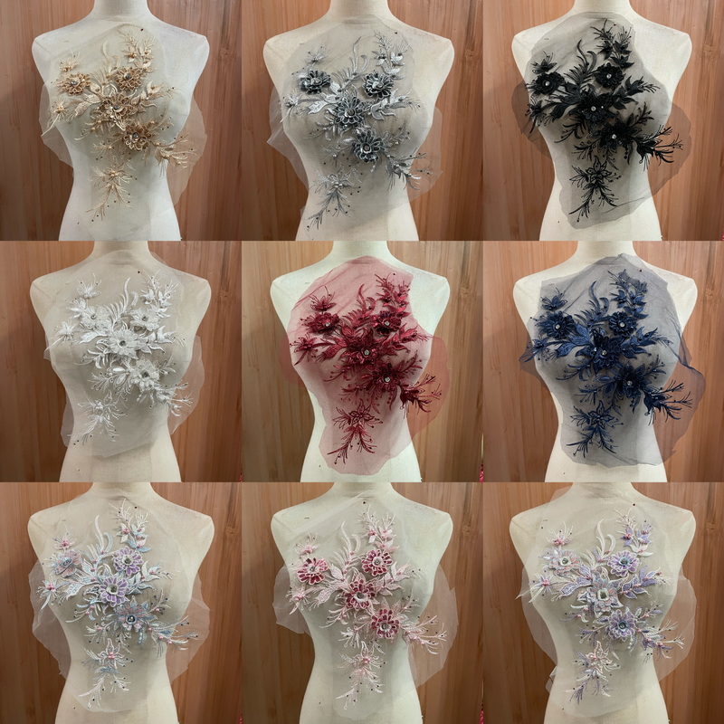 3D立体加钻蕾丝花朵 礼服舞台表演服用彩色蕾丝花贴 刺绣蕾丝贴花