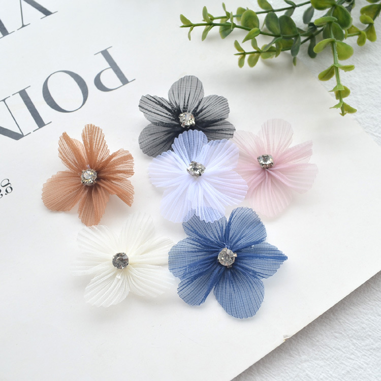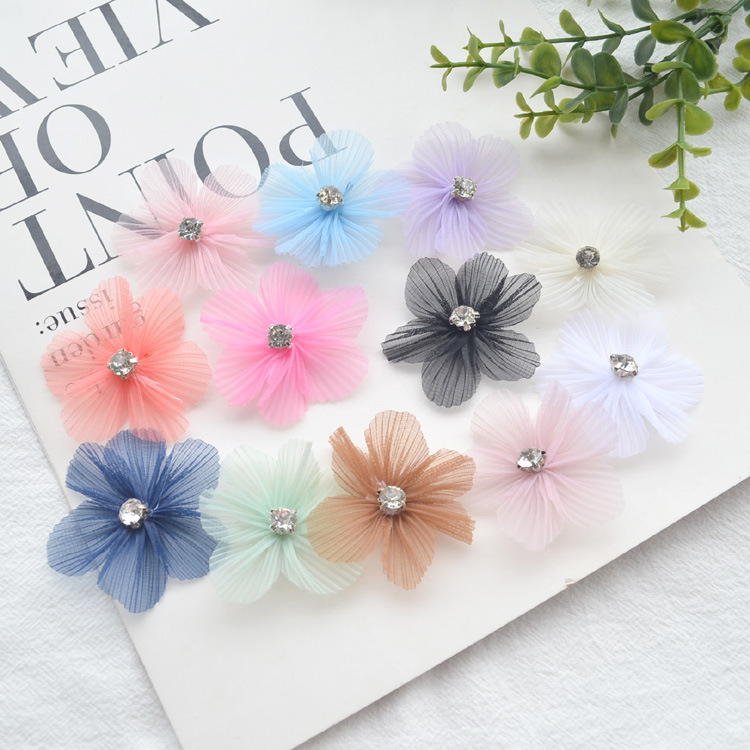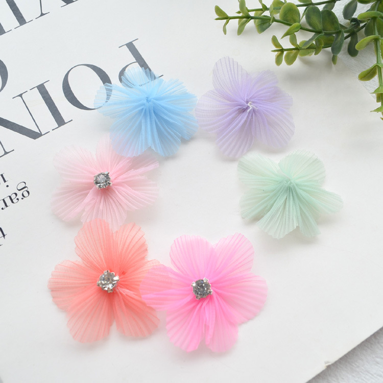 韩版欧根纱花朵烧边布艺花手工diy立体花朵发饰配件服装 花朵辅料