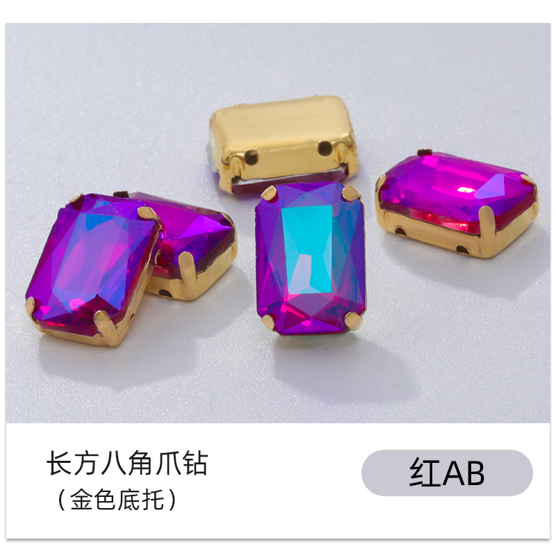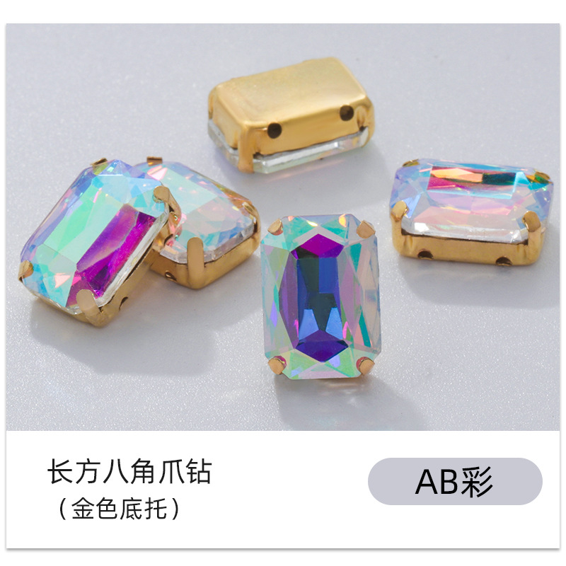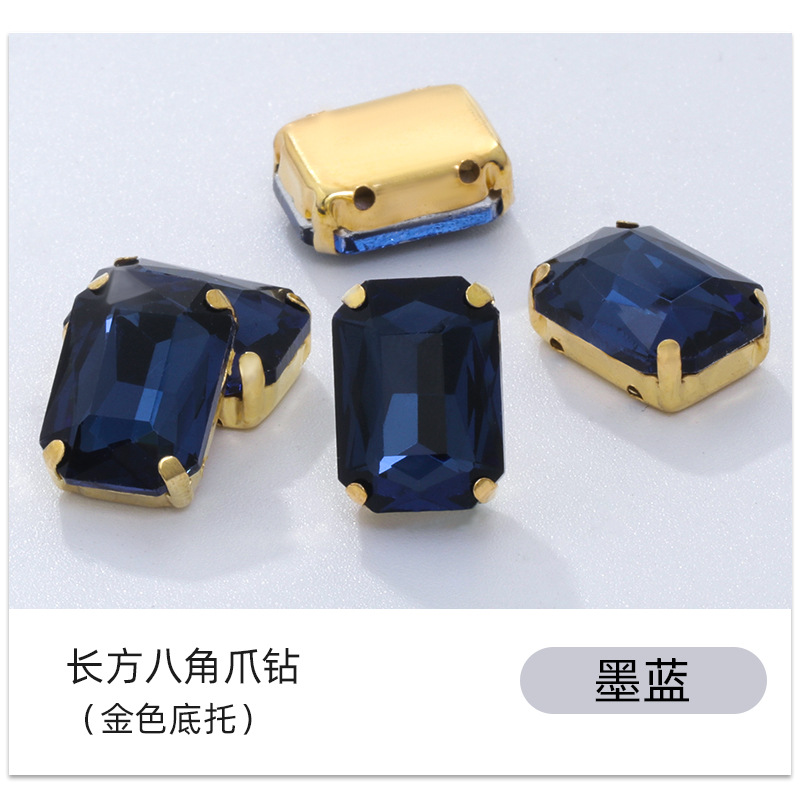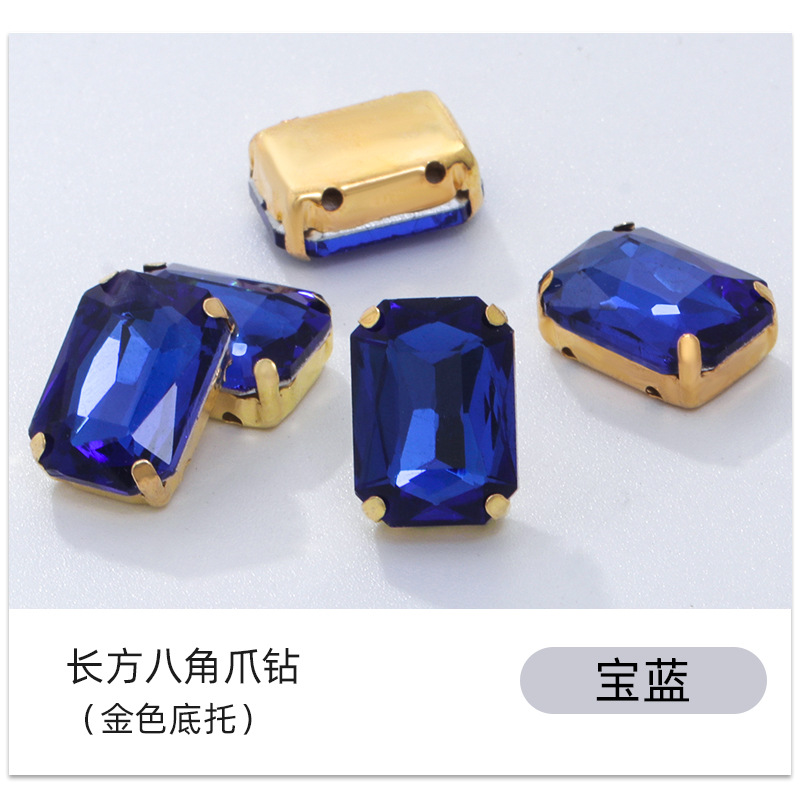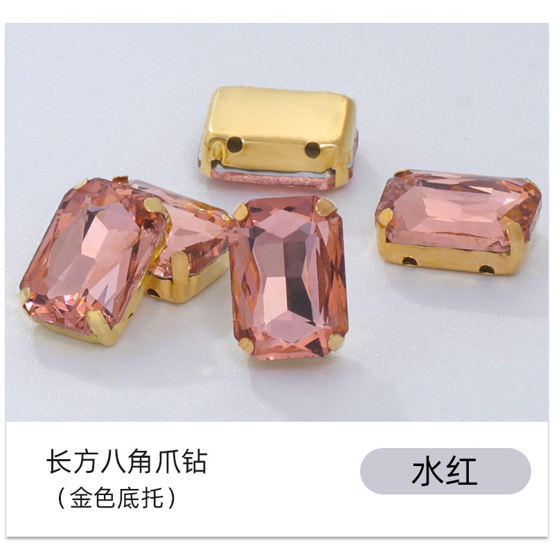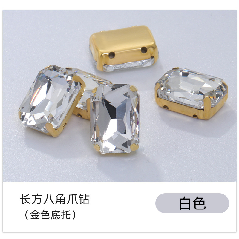 欧美非洲热销, 长方八角玻璃爪钻 带孔手缝玻璃钻 diy饰品服装配件辅料
