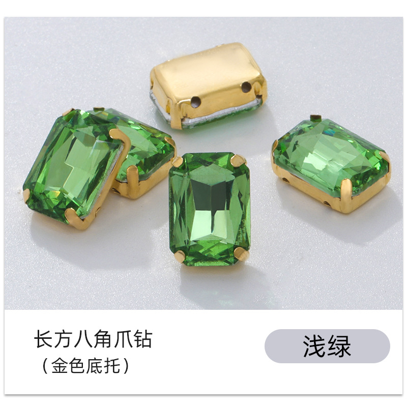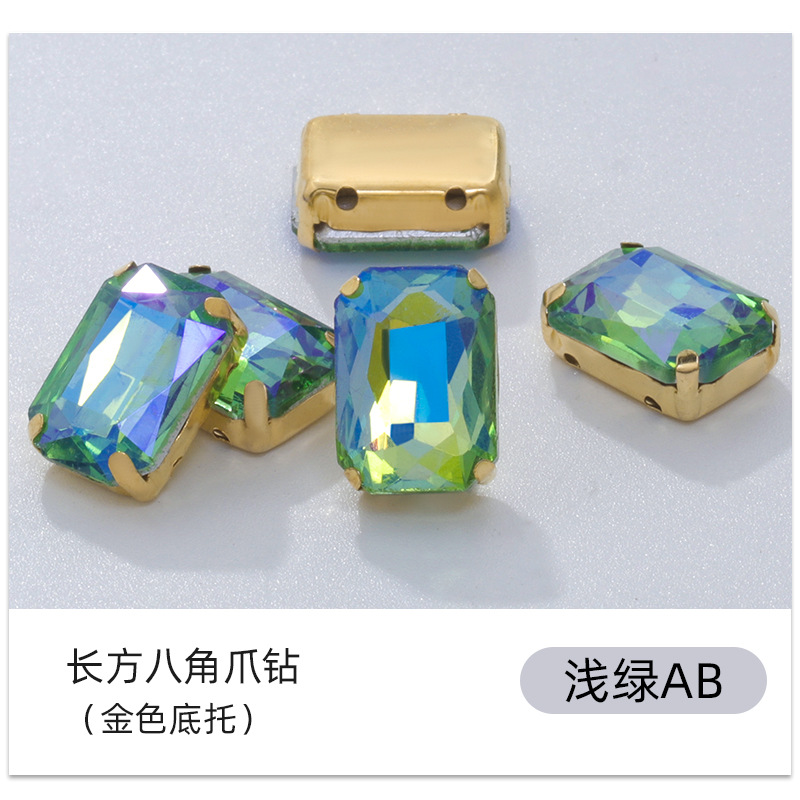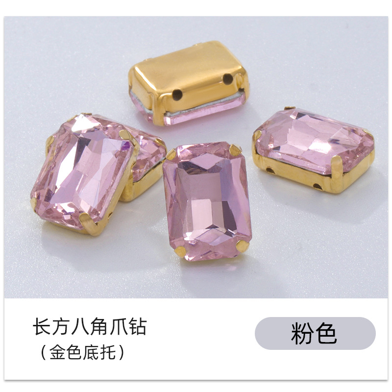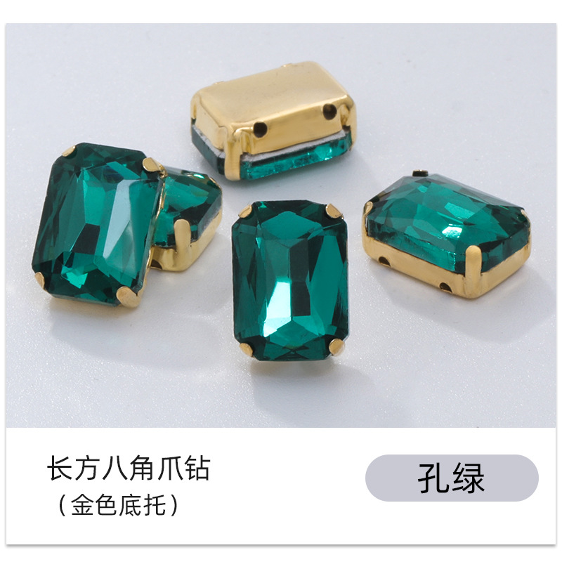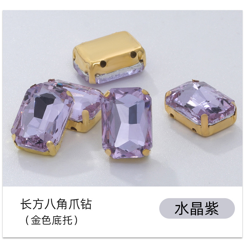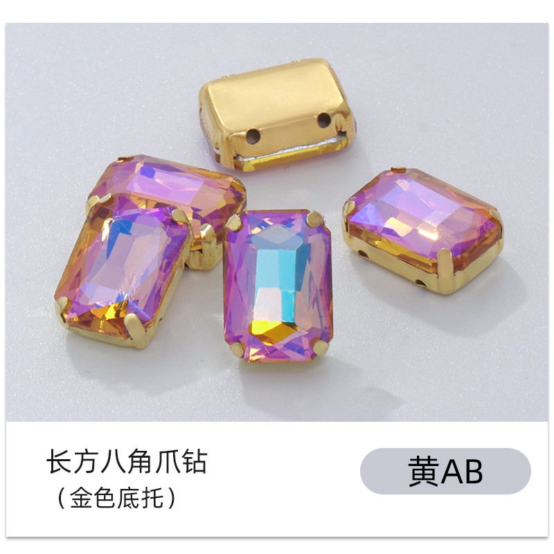 欧美非洲热销, 长方八角玻璃爪钻 带孔手缝玻璃钻 diy饰品服装配件辅料