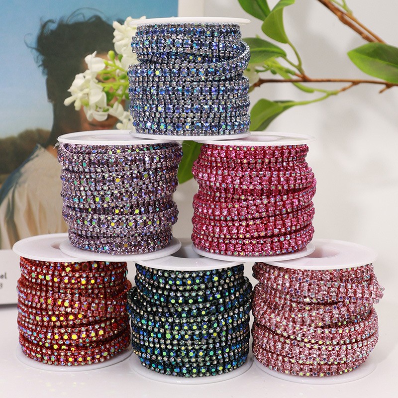 Three-Row Claw Chain Eco-Friendly Flatback Glass Rhinestone Dense Colorful Nail Art Bags Jewelry Accessories Clothing