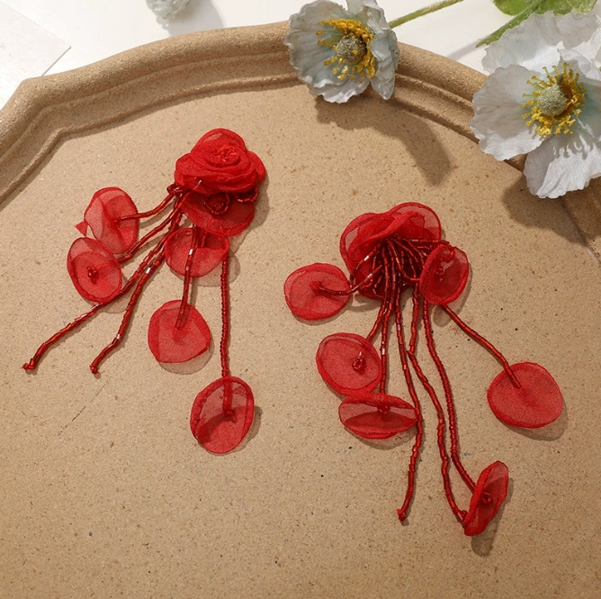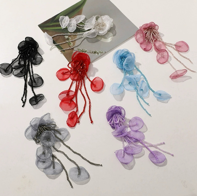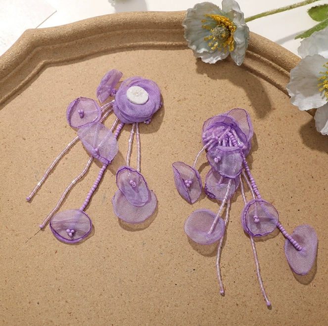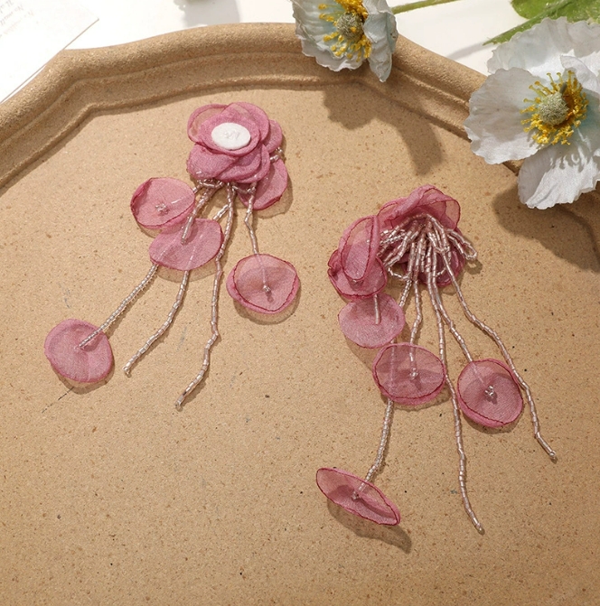 Fairy Gentle and Elegant Sumi Beads Gauze Petal Cloth Earrings Women's Hair Accessories Headdress Clothing Accessories