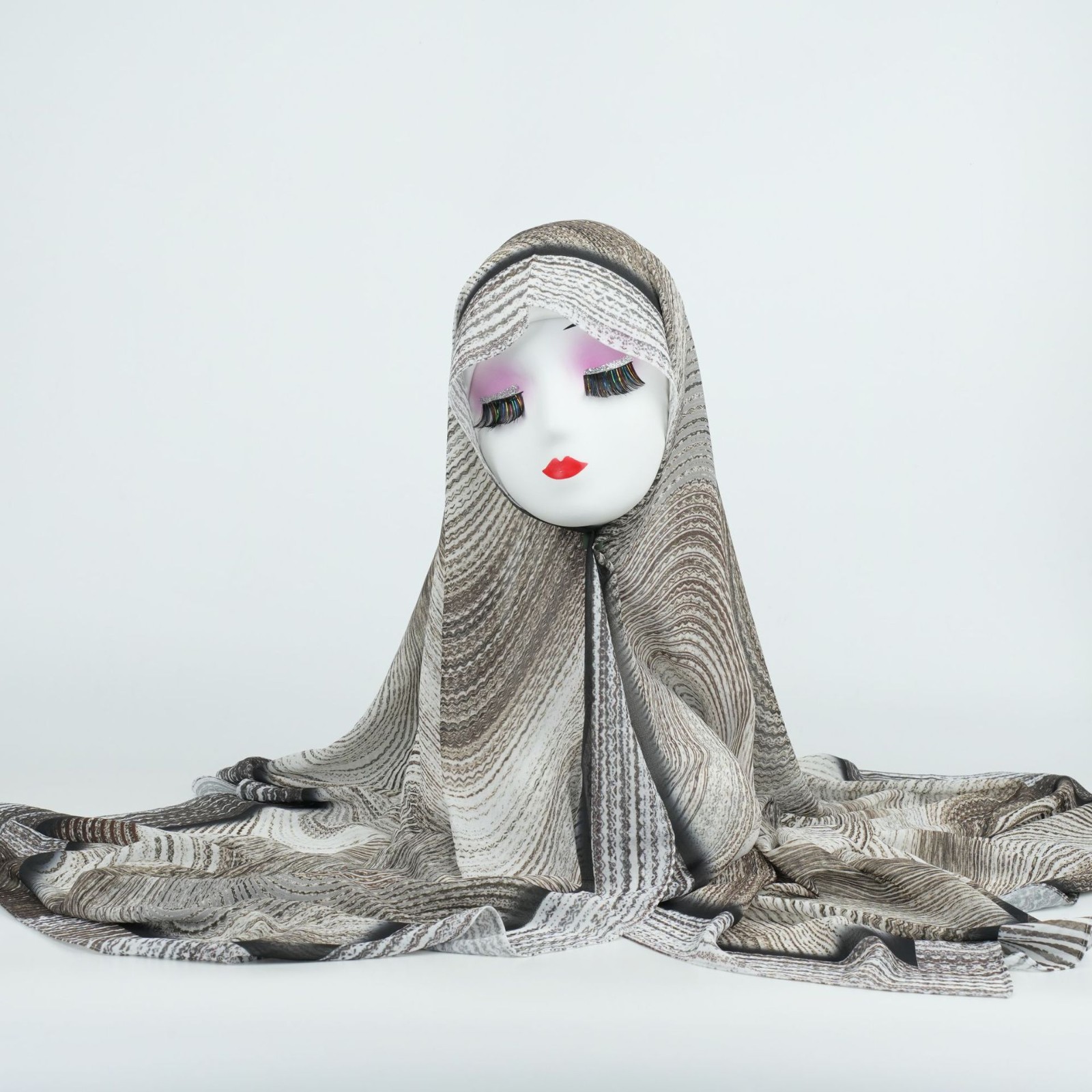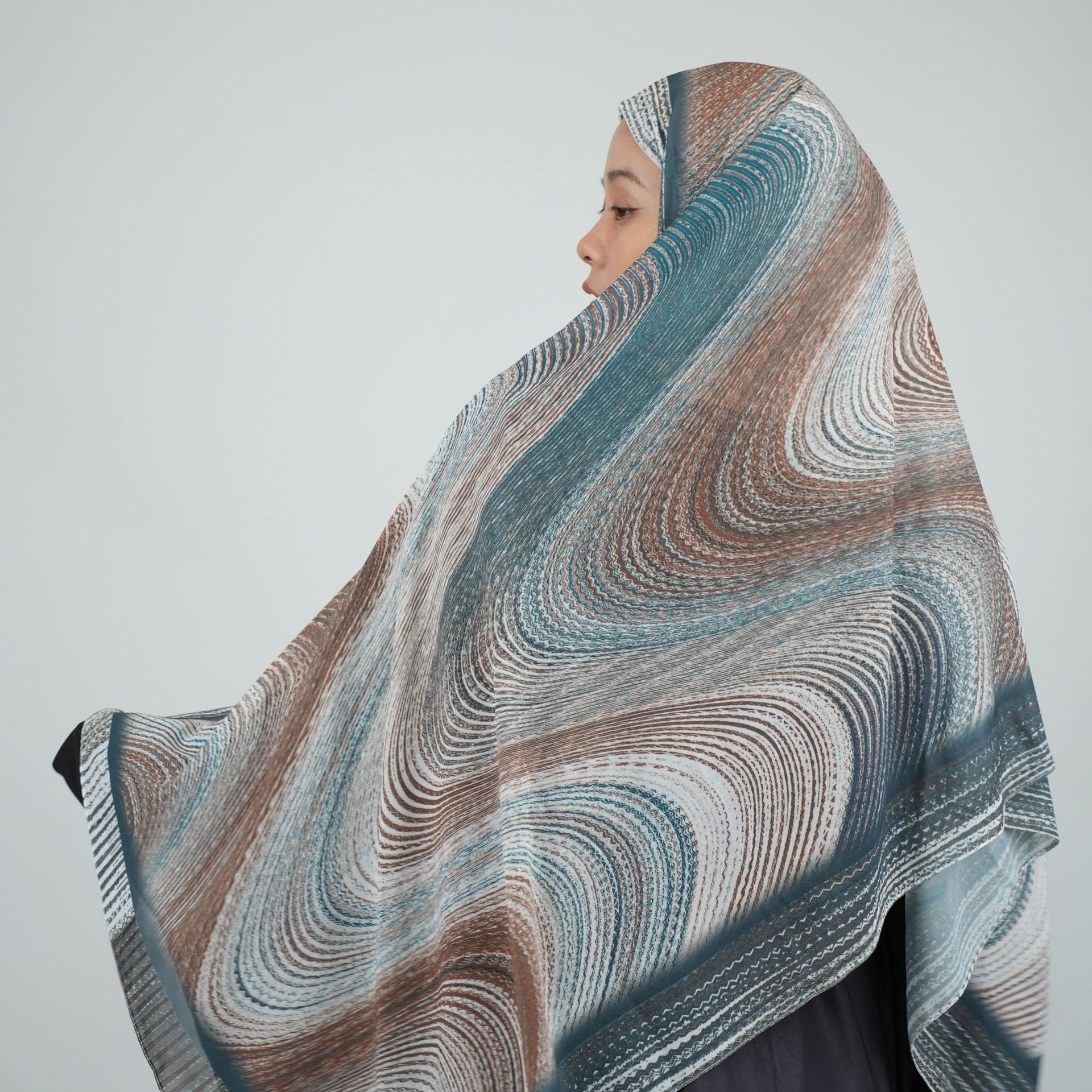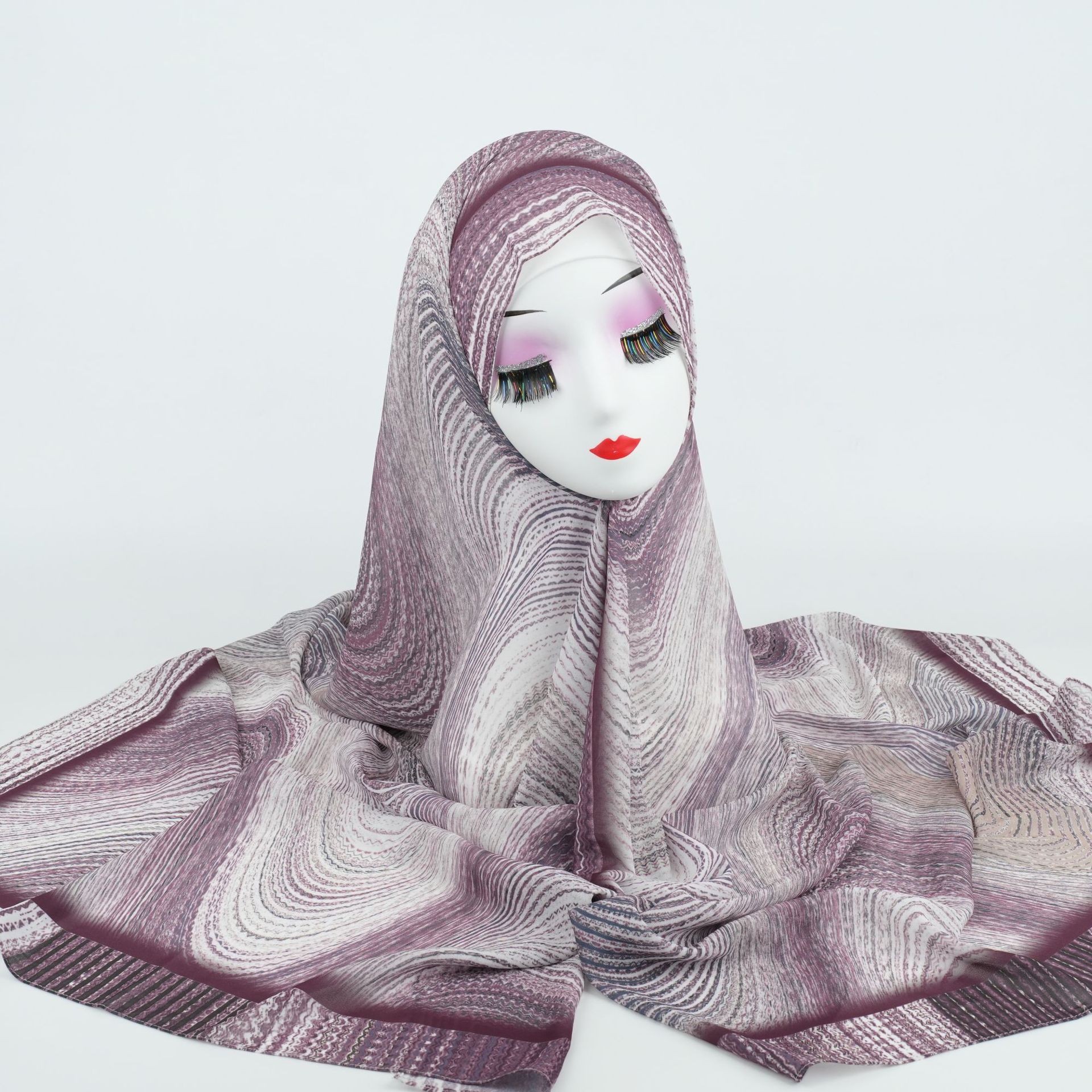 Elegant Wave Rock Pattern Printed Gradient Chiffon Long Scarf Arab Ethnic Headscarf
