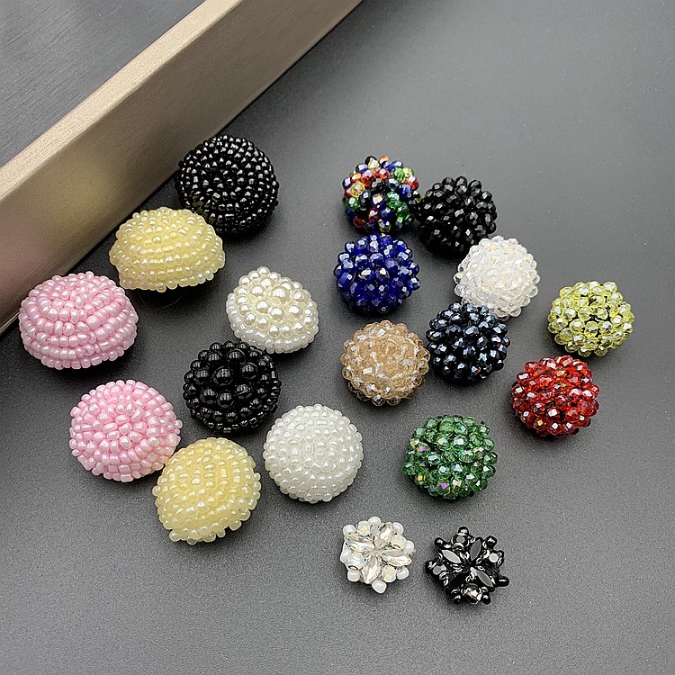 Manufacturers Spot Wholesale Handmade Beaded Cloth Wrapped Pearl Crystal Buttons Pearl Buttons Clothing Sweater DIY Accessories