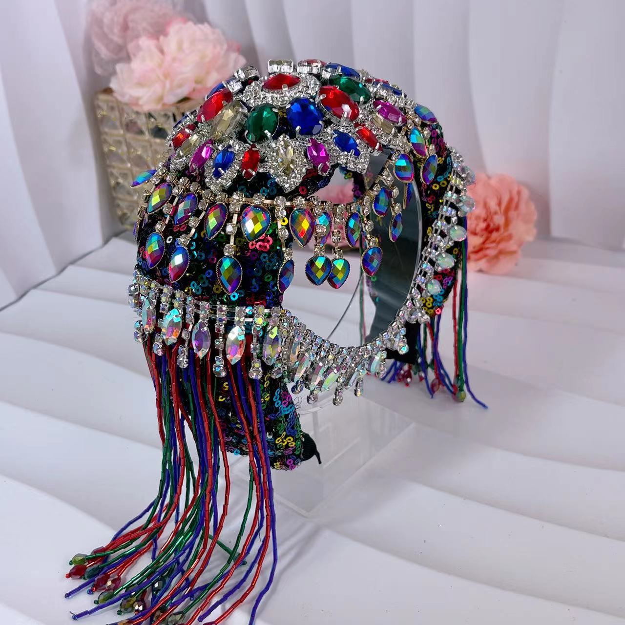 Original cool style high-end luxury colored headband with double layered side tassel headband on the forehead
