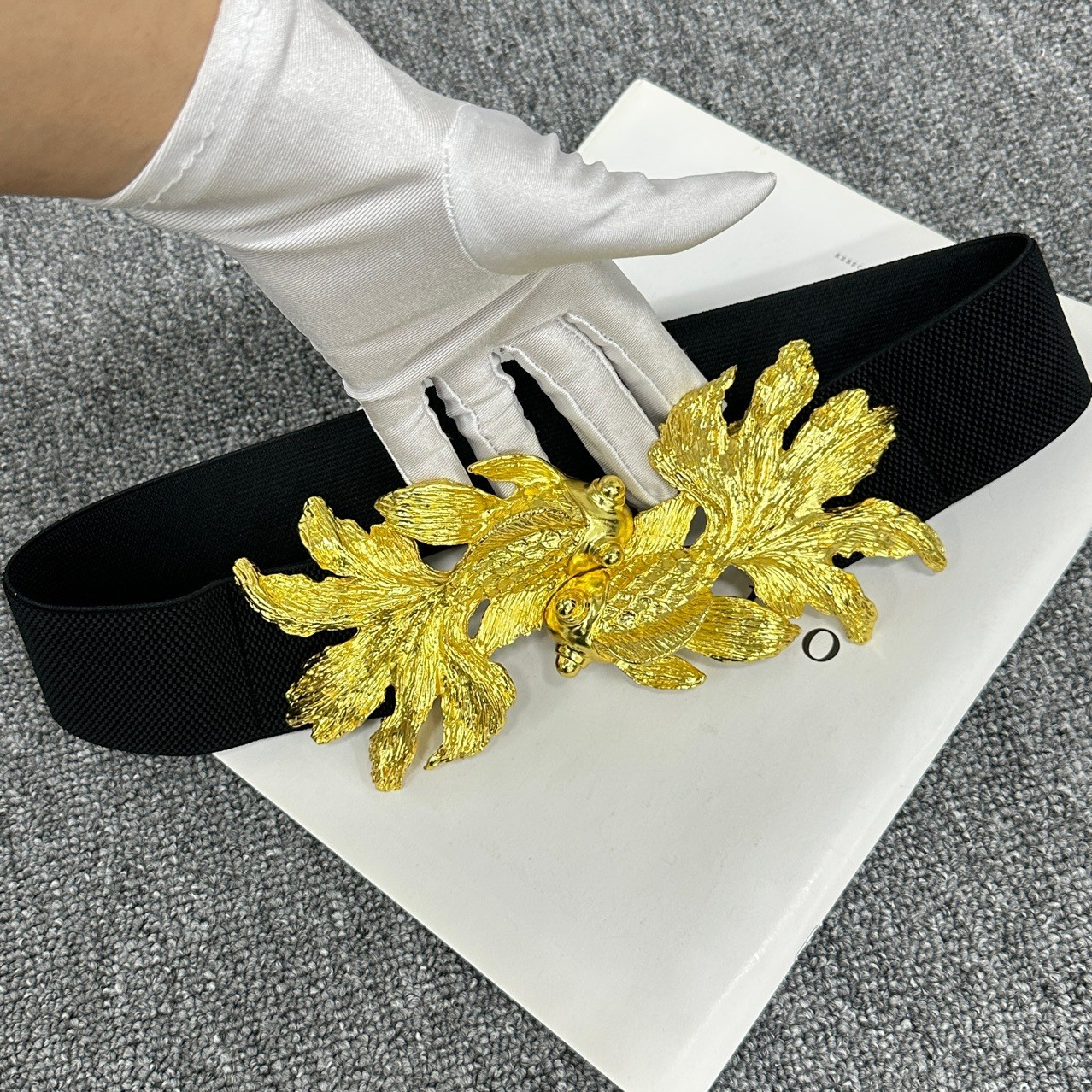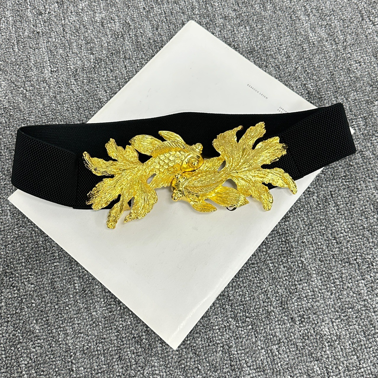 Original Design Heavy Antique Feel Exquisite Big Brand Carved Goldfish Women's Elastic Belt