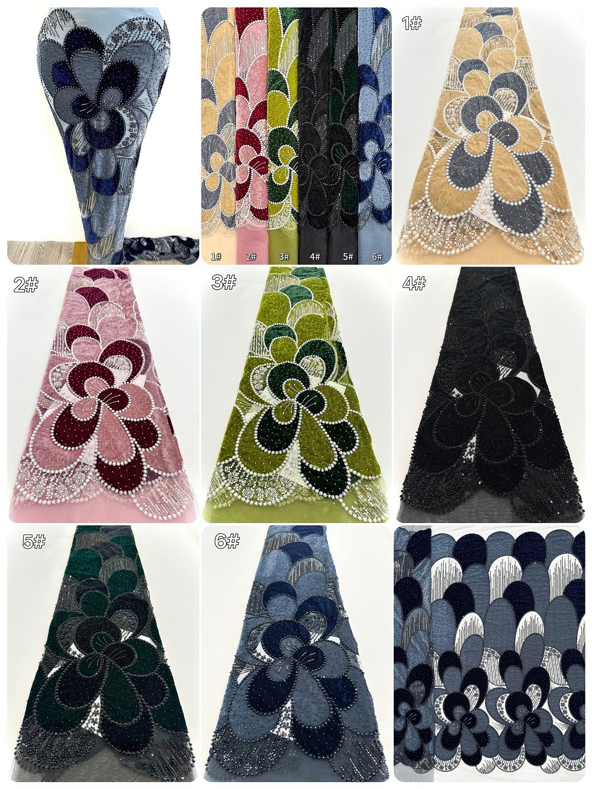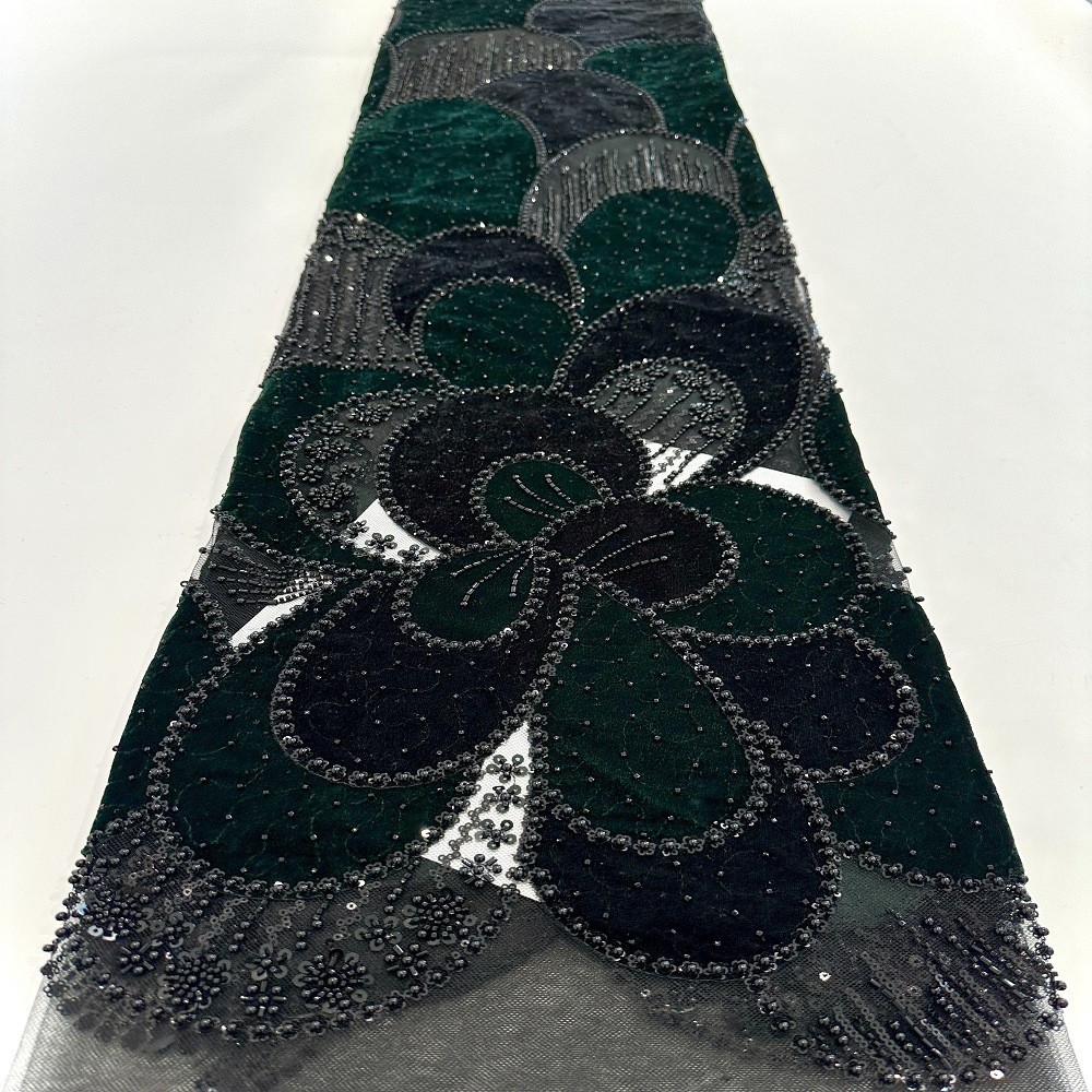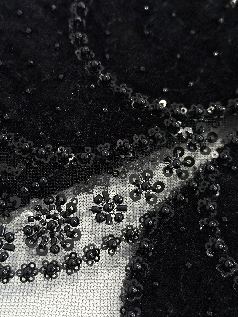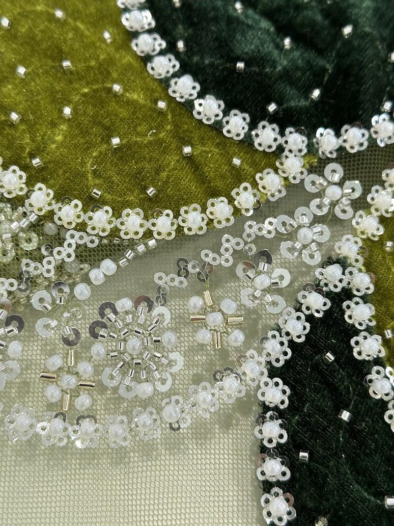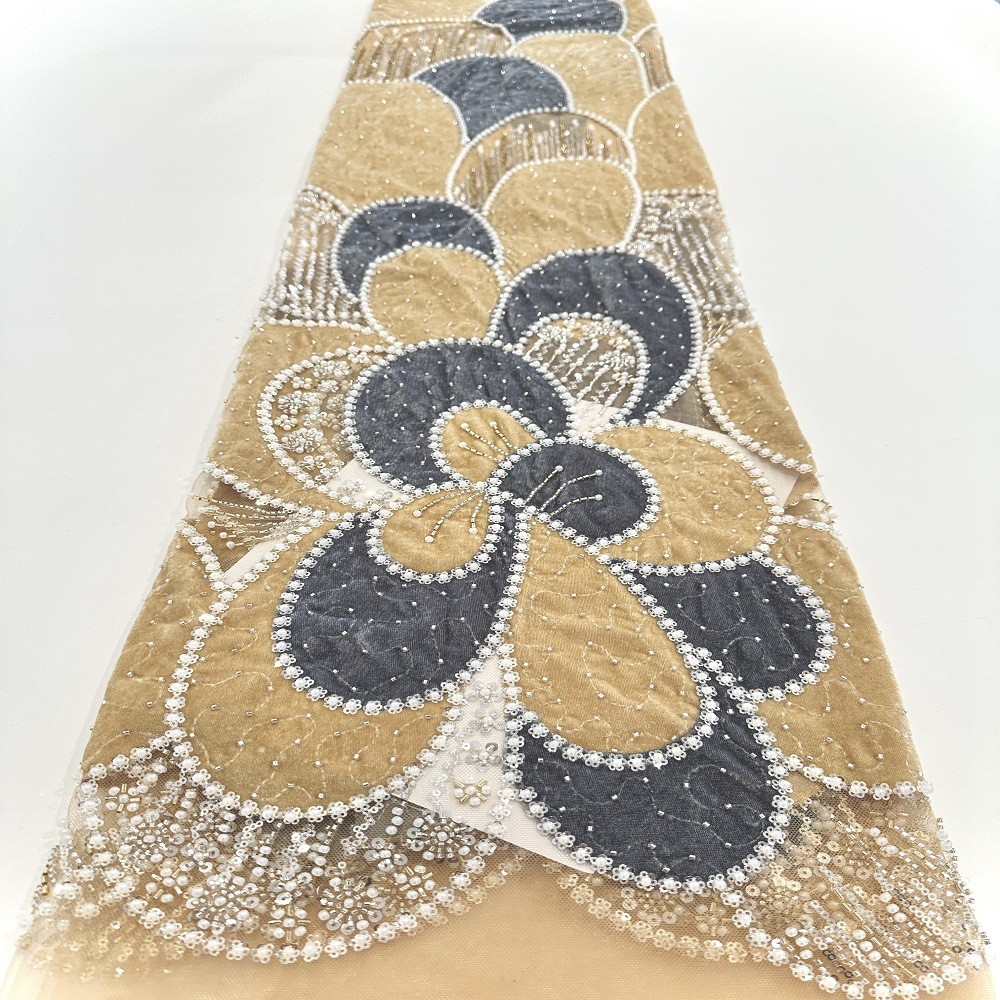Two-Color Flannel Laser Embroidery Fabric European American Beaded Tube Embroidery Sequin Lace Mesh Fabric for High-End Evening Dresses