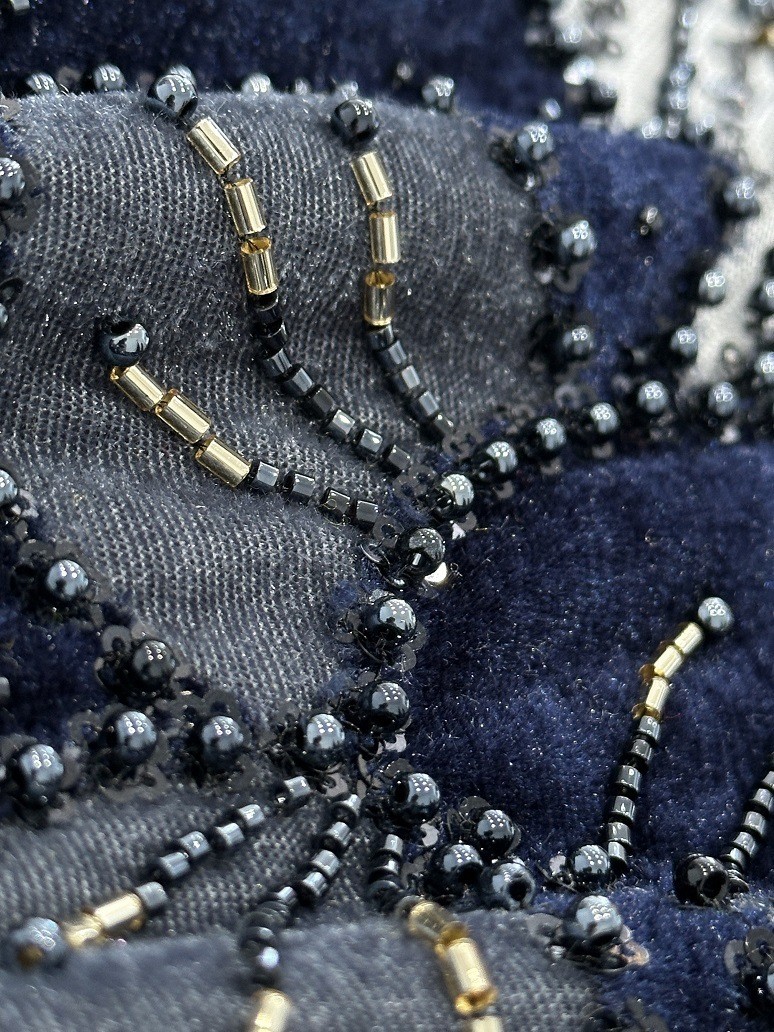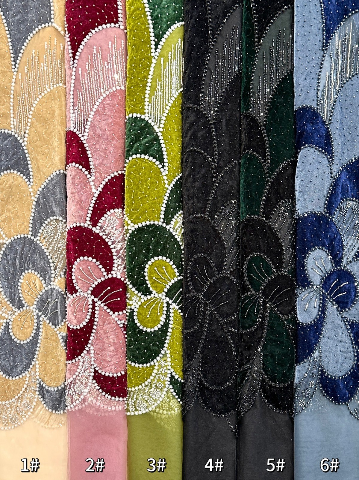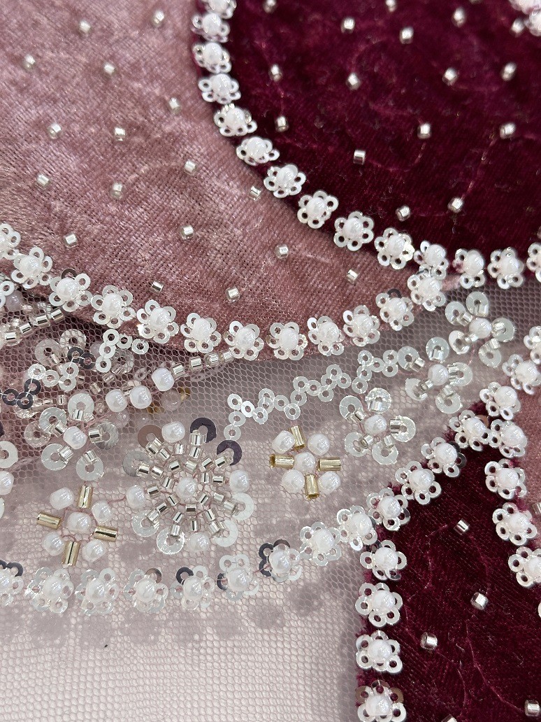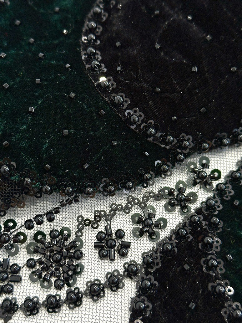 Two-Color Flannel Laser Embroidery Fabric European American Beaded Tube Embroidery Sequin Lace Mesh Fabric for High-End Evening Dresses
