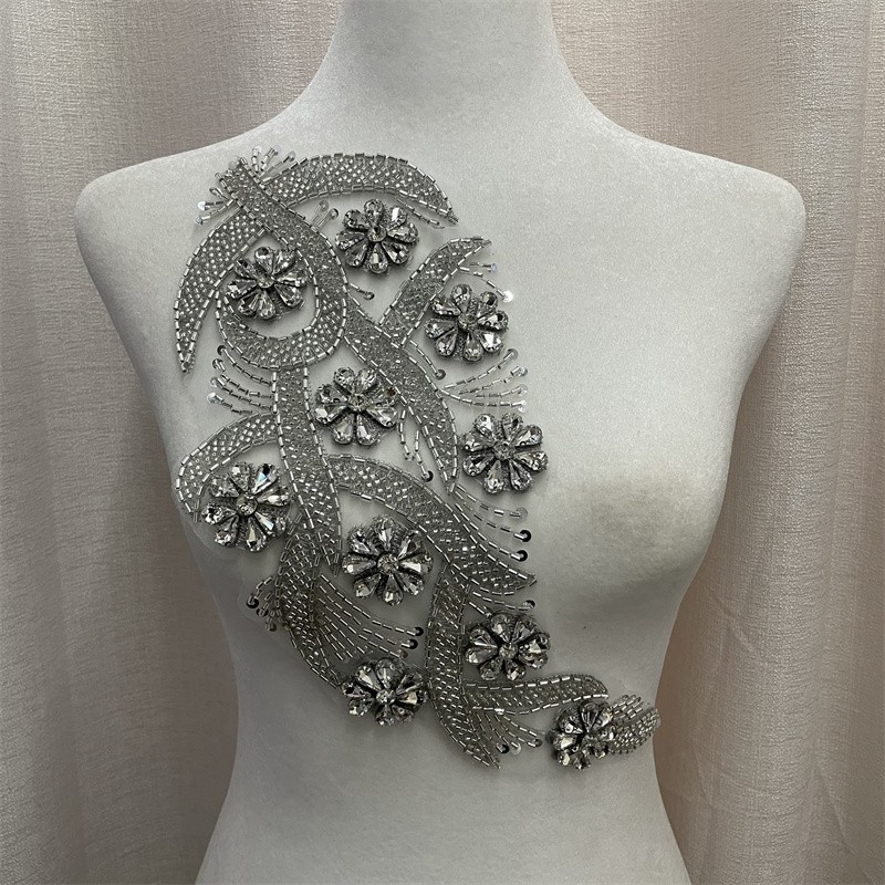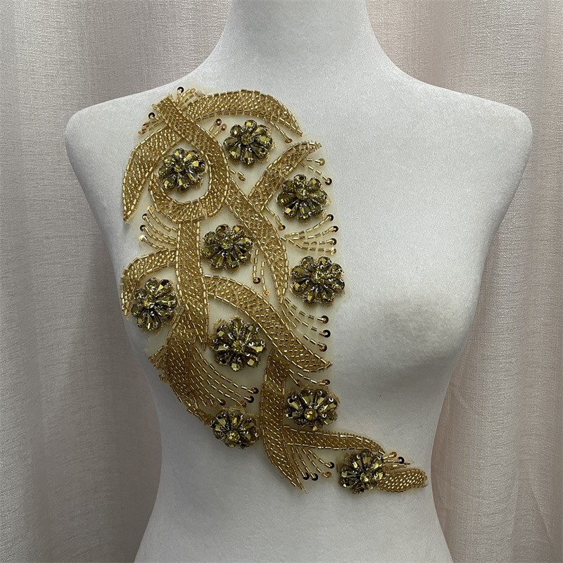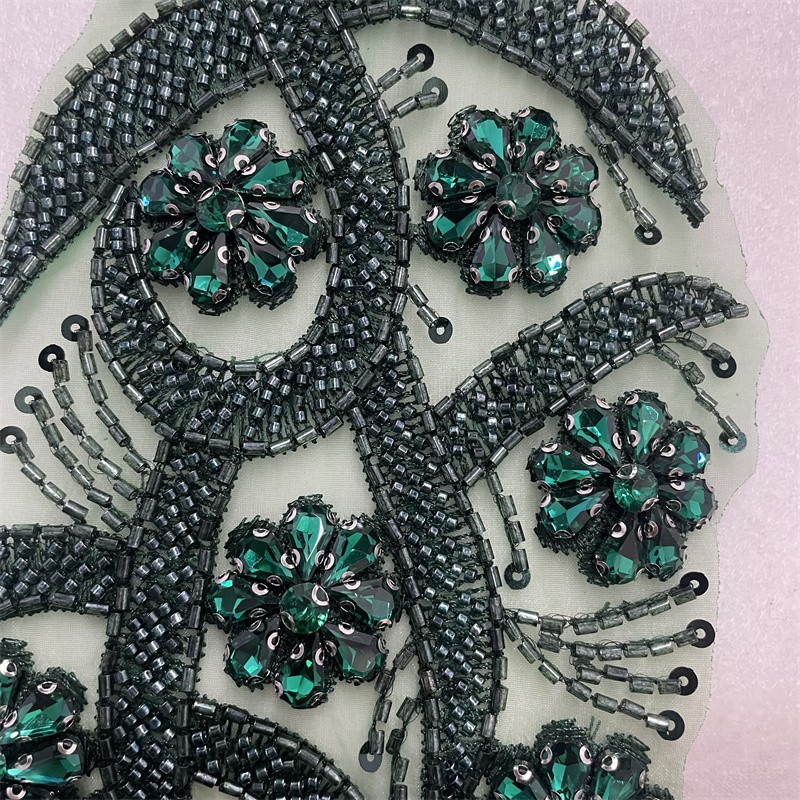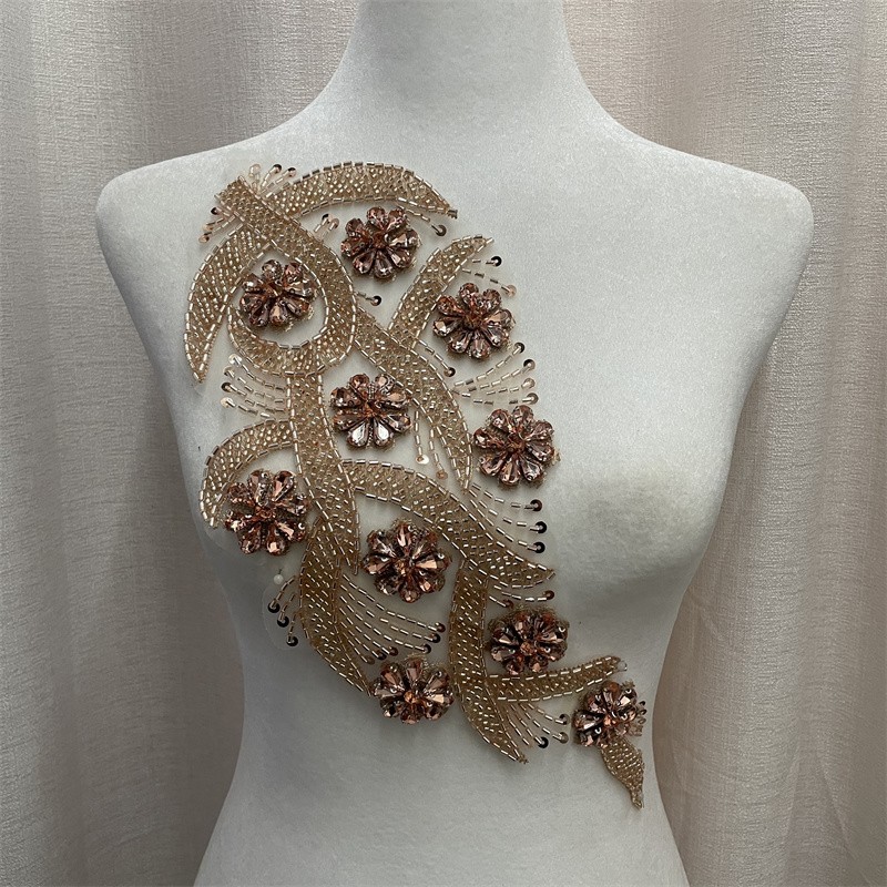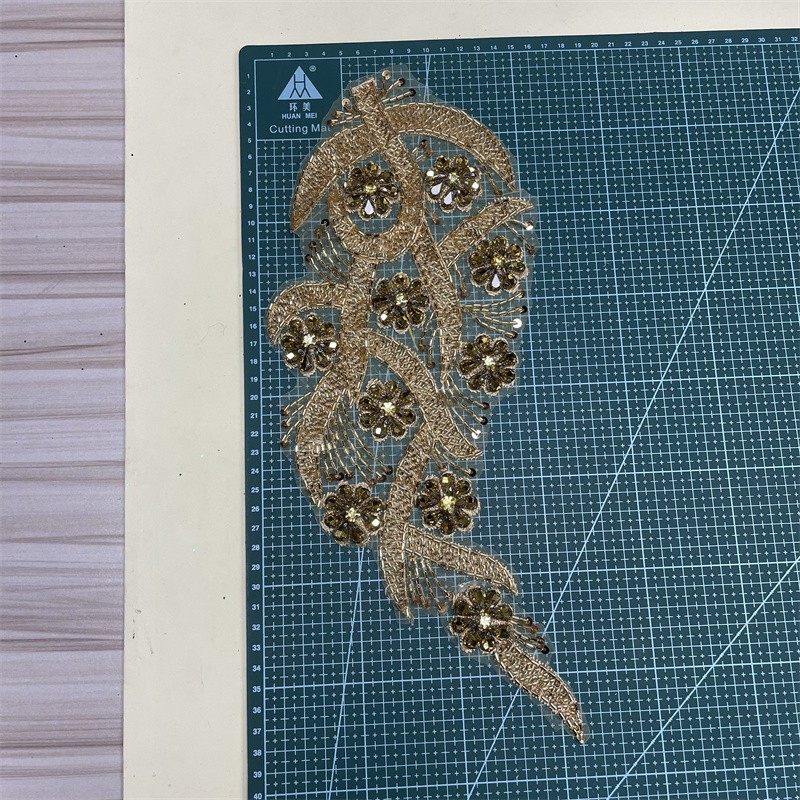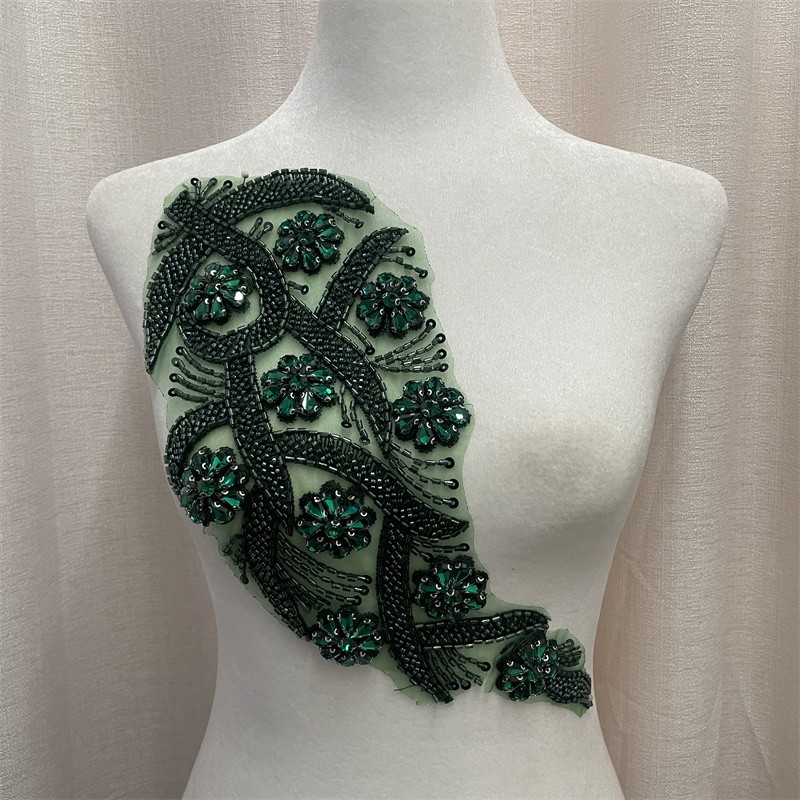 Leaf shape organza base bead tube rhinestone cloth trimming clothing accessories