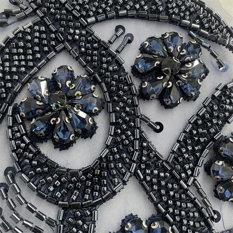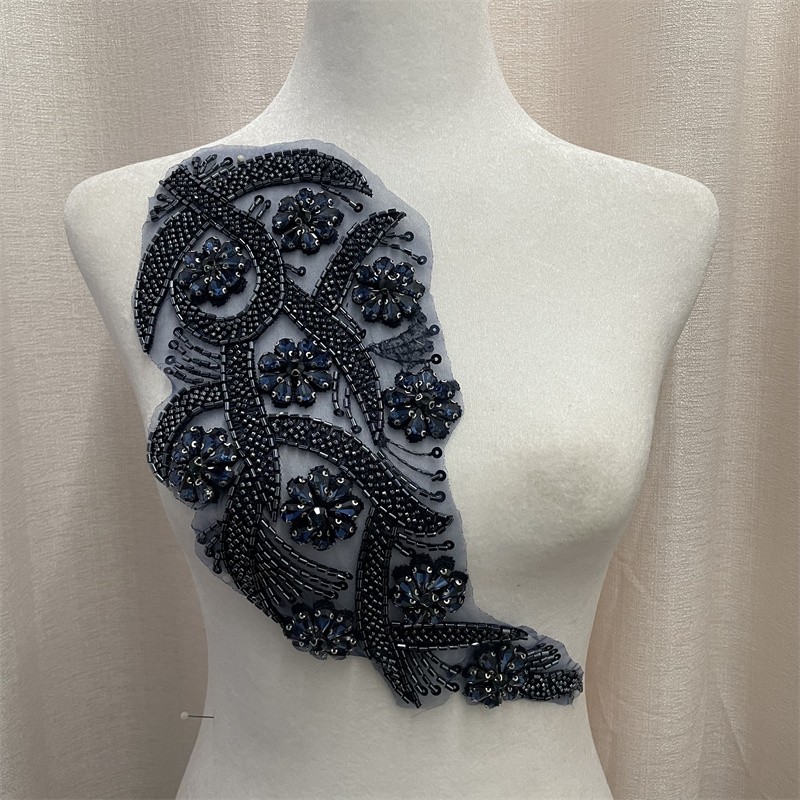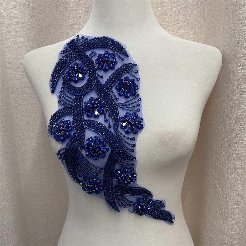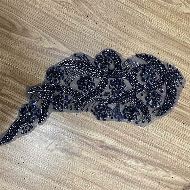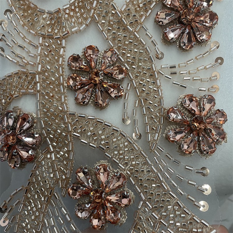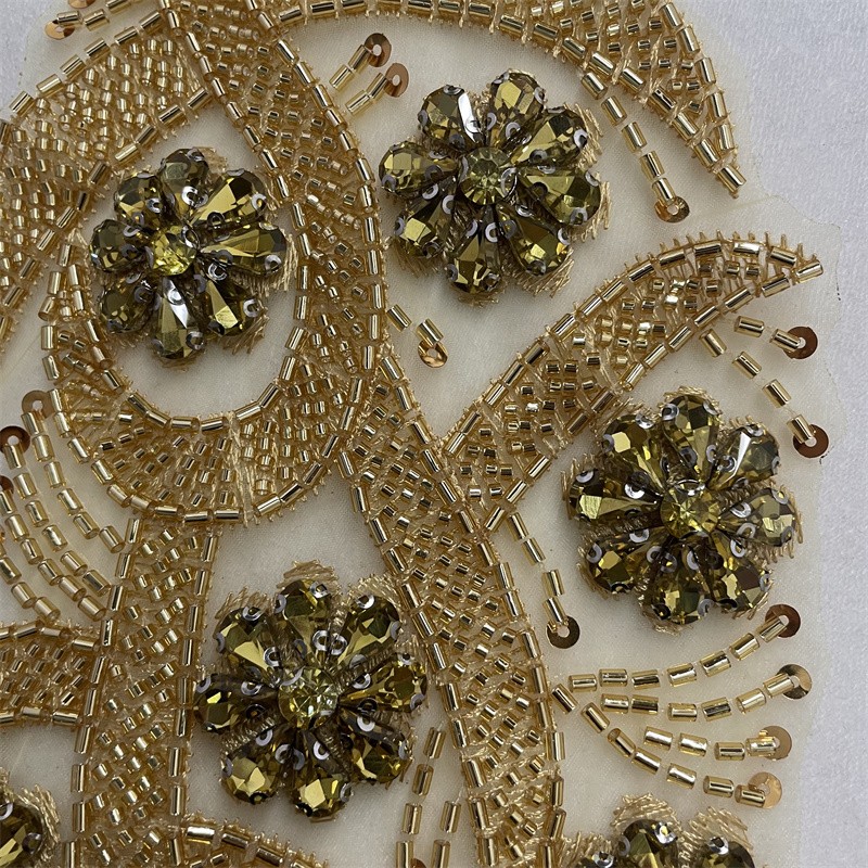 Leaf shape organza base bead tube rhinestone cloth trimming clothing accessories